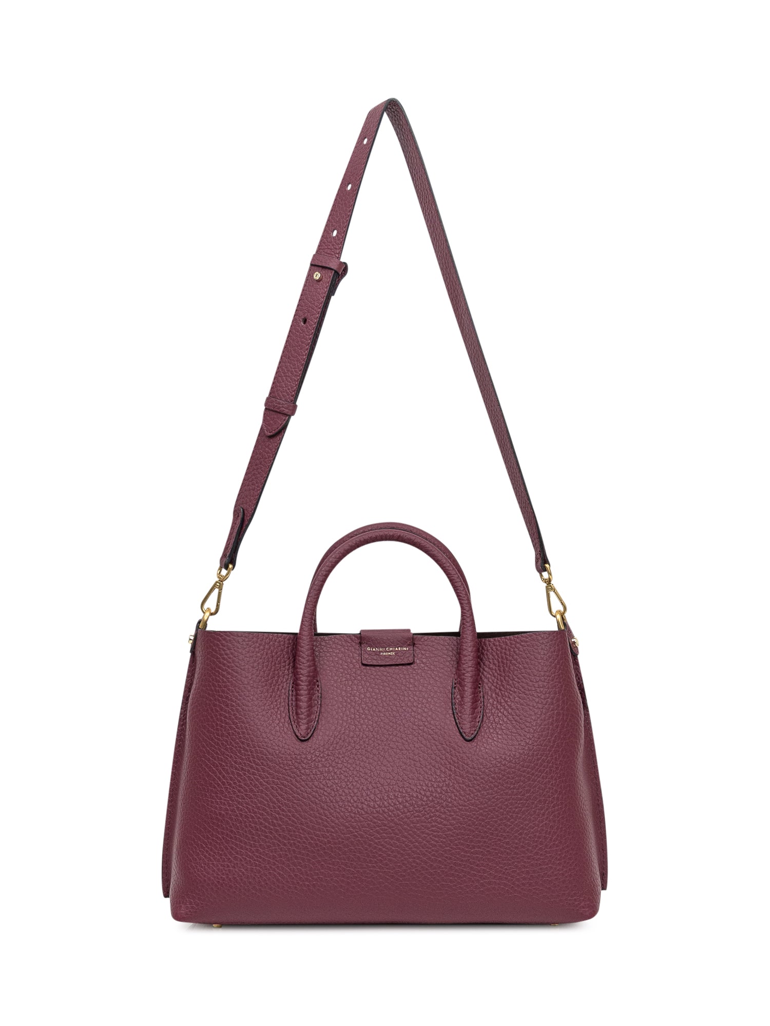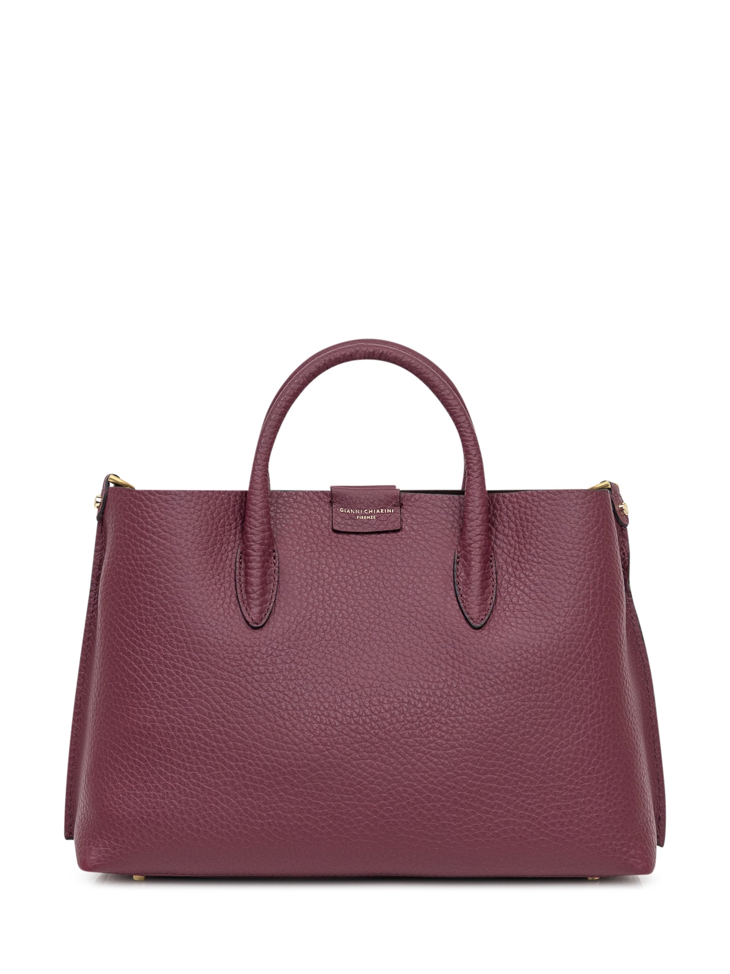 Gianni Chiarini tote bag in bordeaux grained leather with double handles and zip closure.