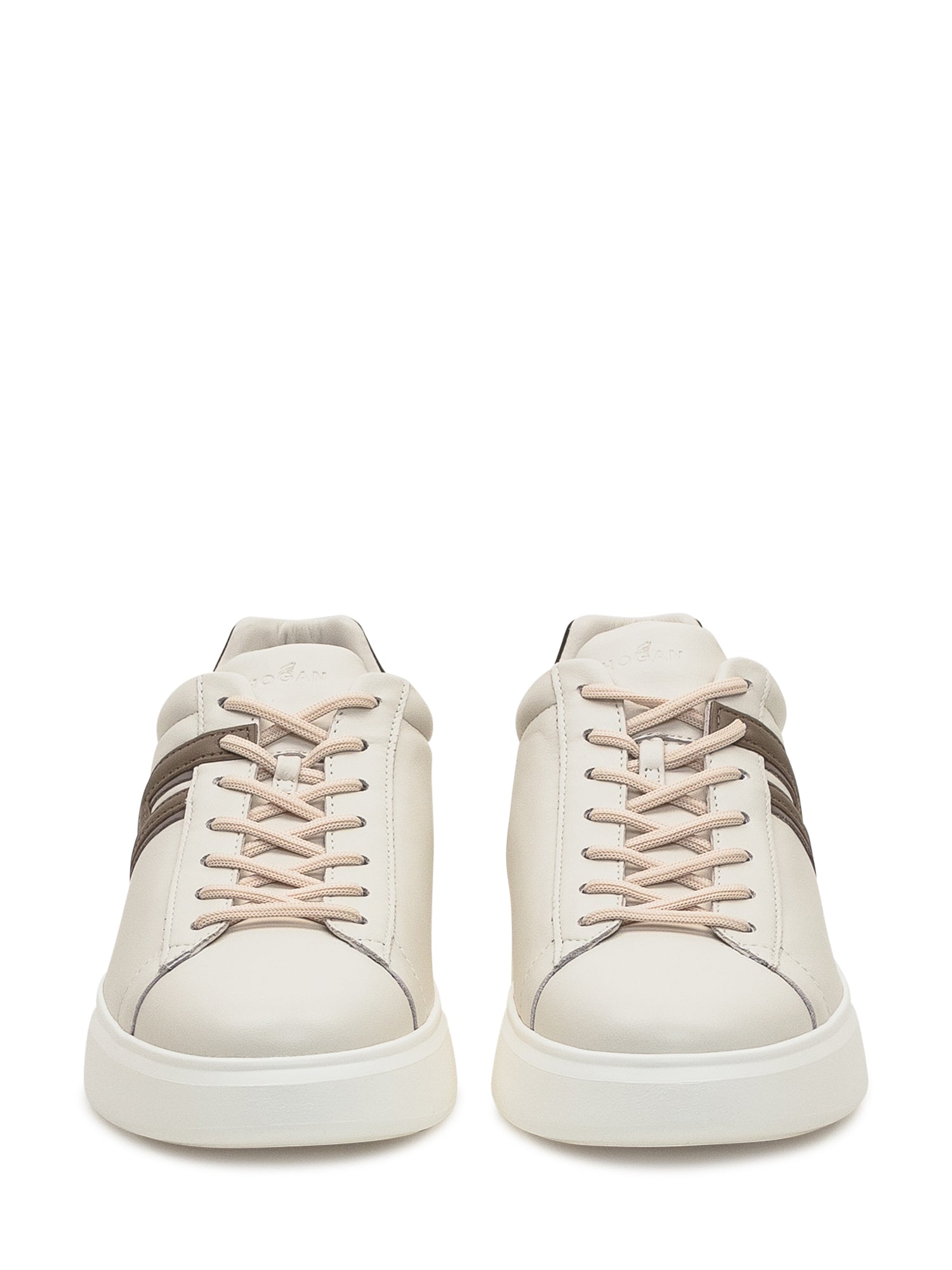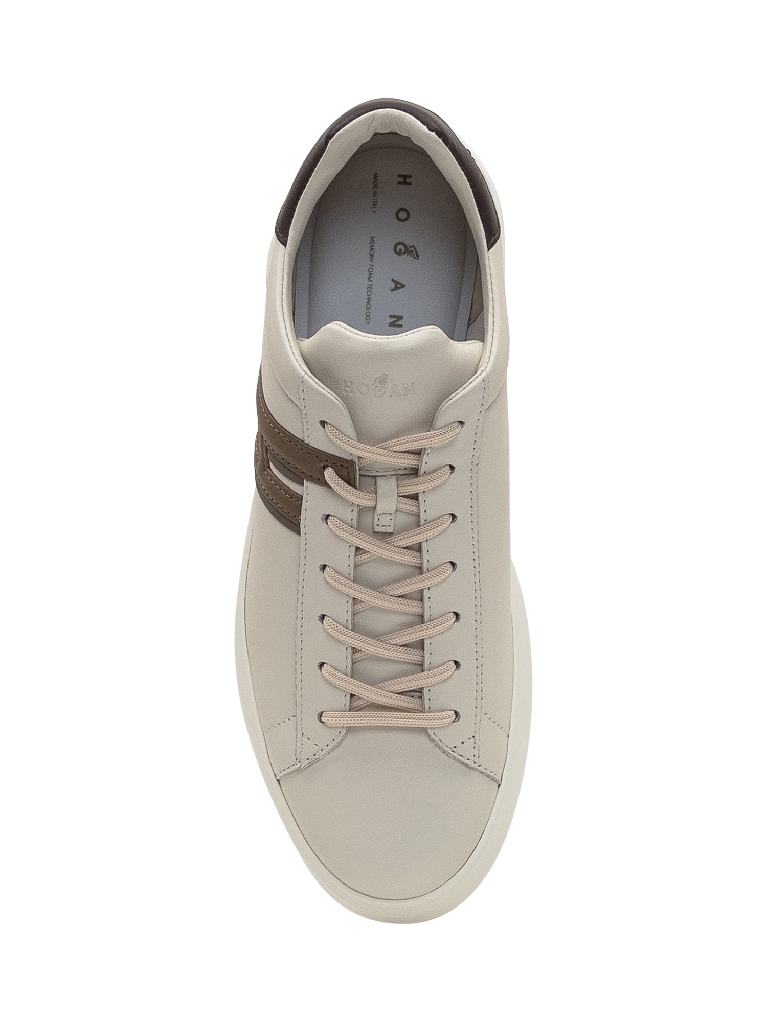 Hogan Sneakers in beige leather with brown details and signature side H.