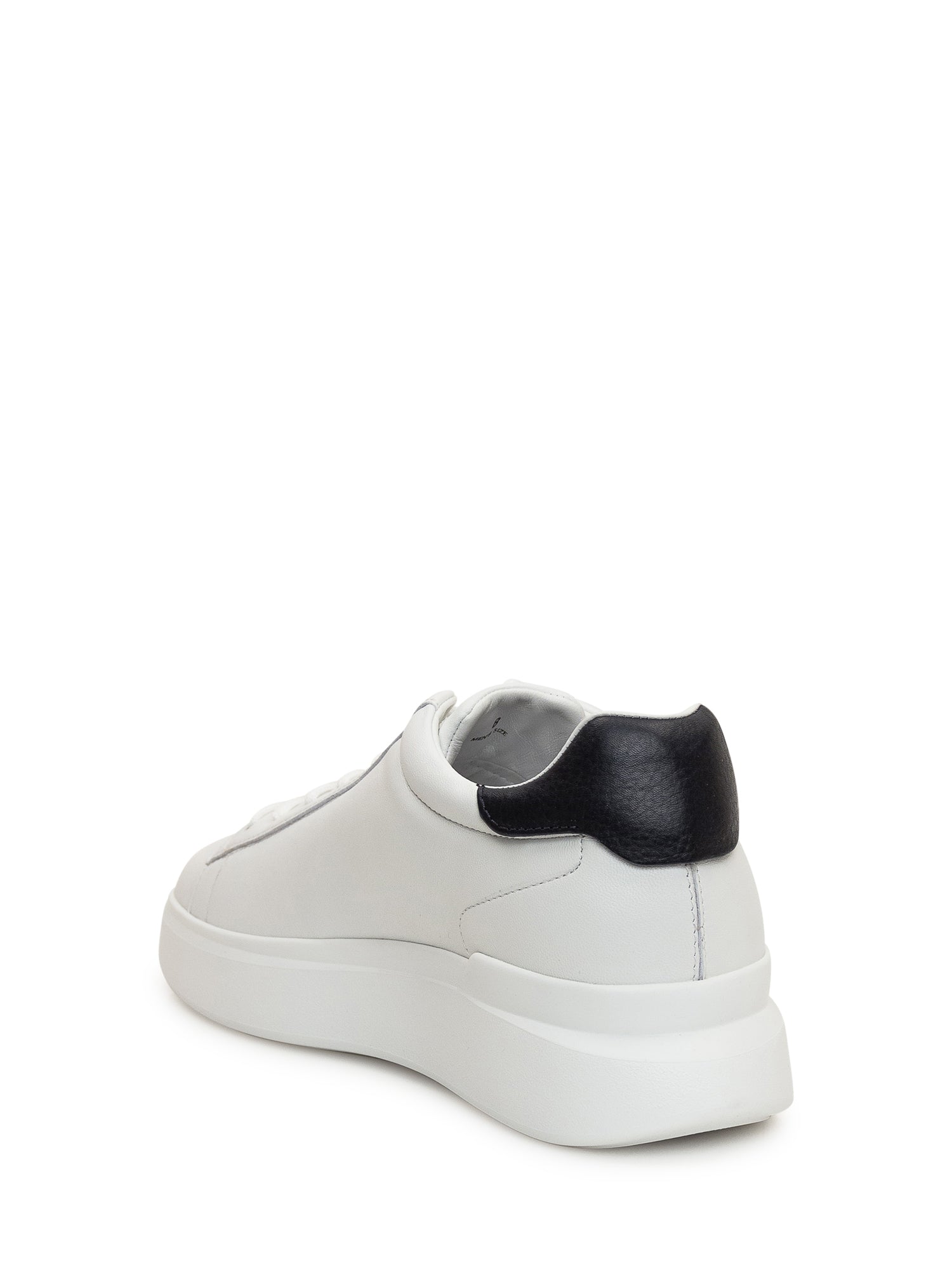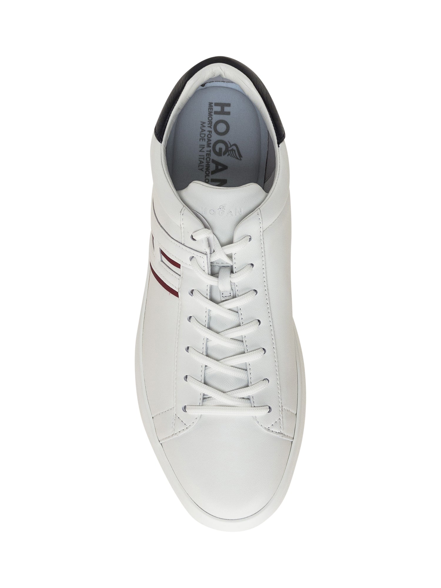 Low white sneaker. Lace-up closure. H on the side. Logo on the tongue and side.