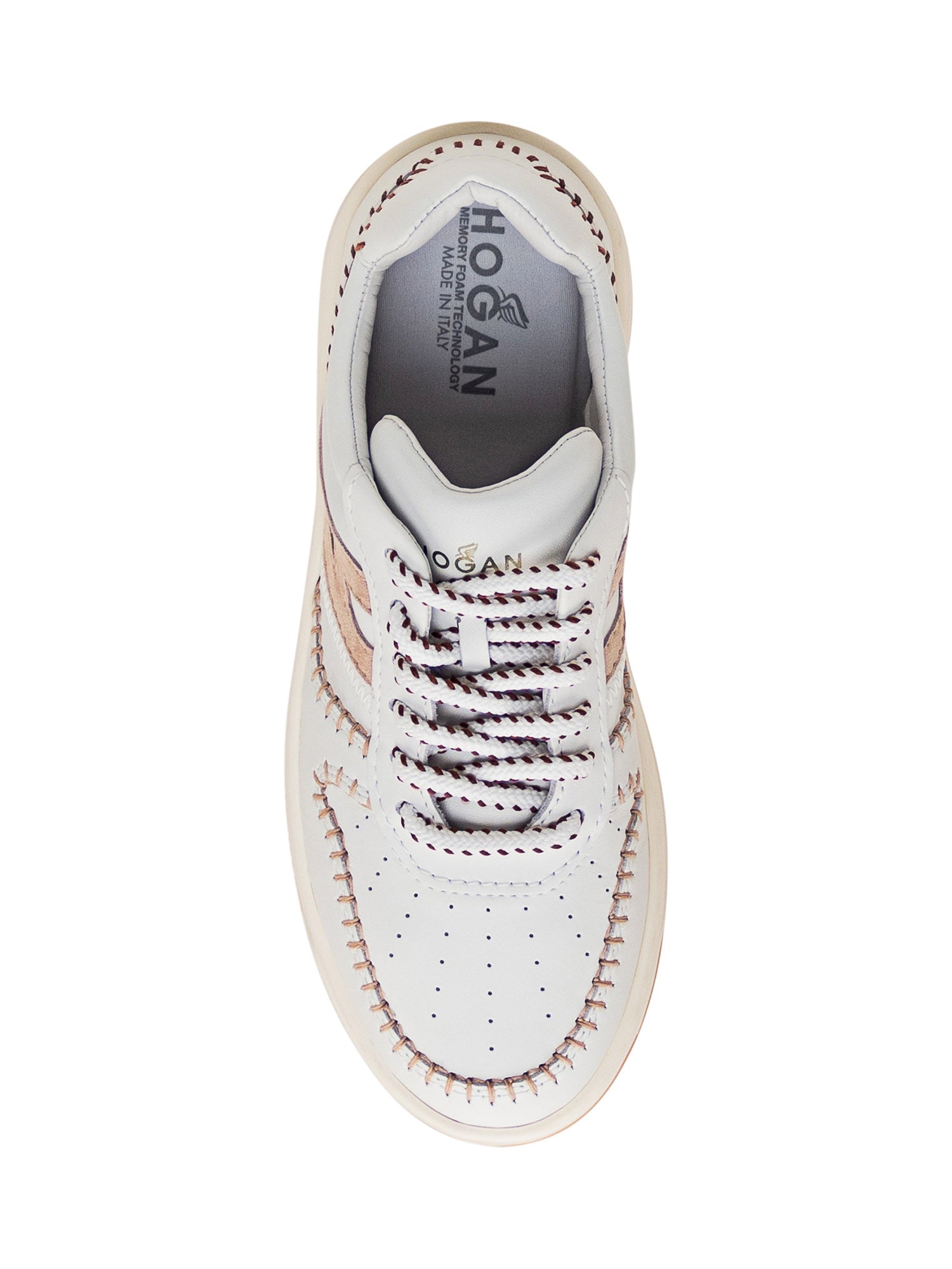 White leather sneaker with perforated toe. Closure with laces. All over threading detail. Logo printed on the tongue. Suede logo on both sides.