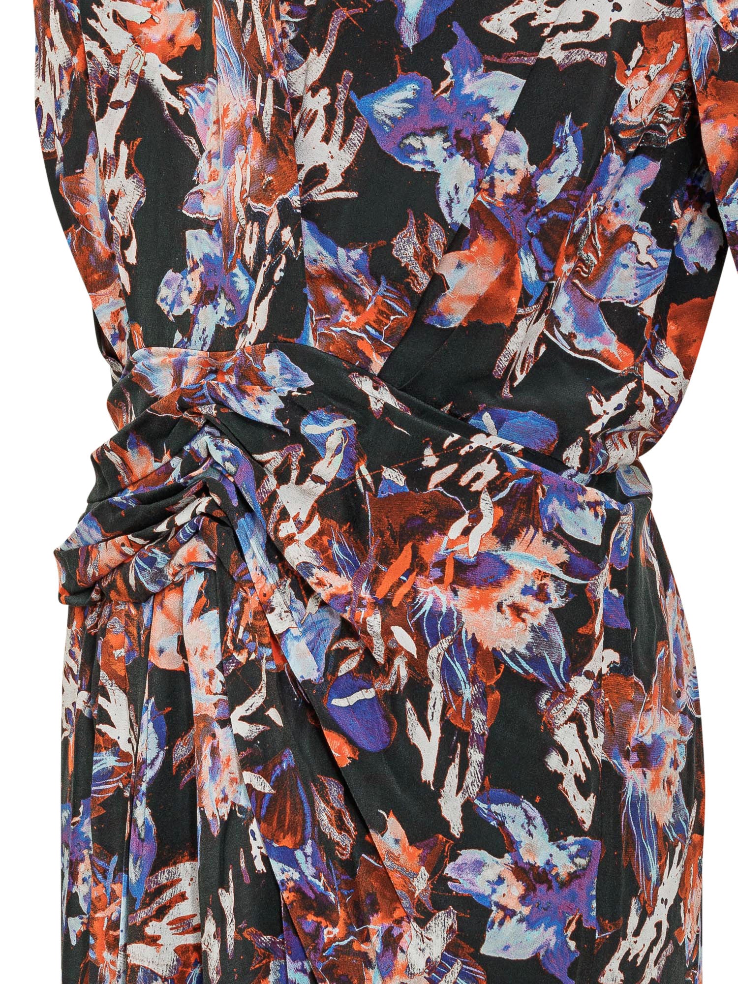 Midi dress. Stand-up collar. Zip closure on the back. Curling effect and all-over ruffles. All-over patterned print.
