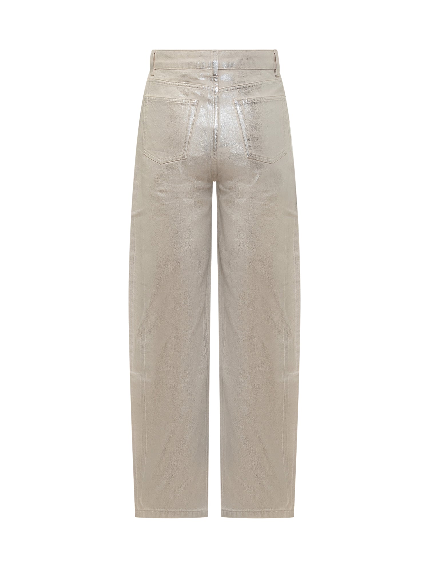 Jeans. Button and zip closure. Belt loops. Metallic effect. Five pockets.