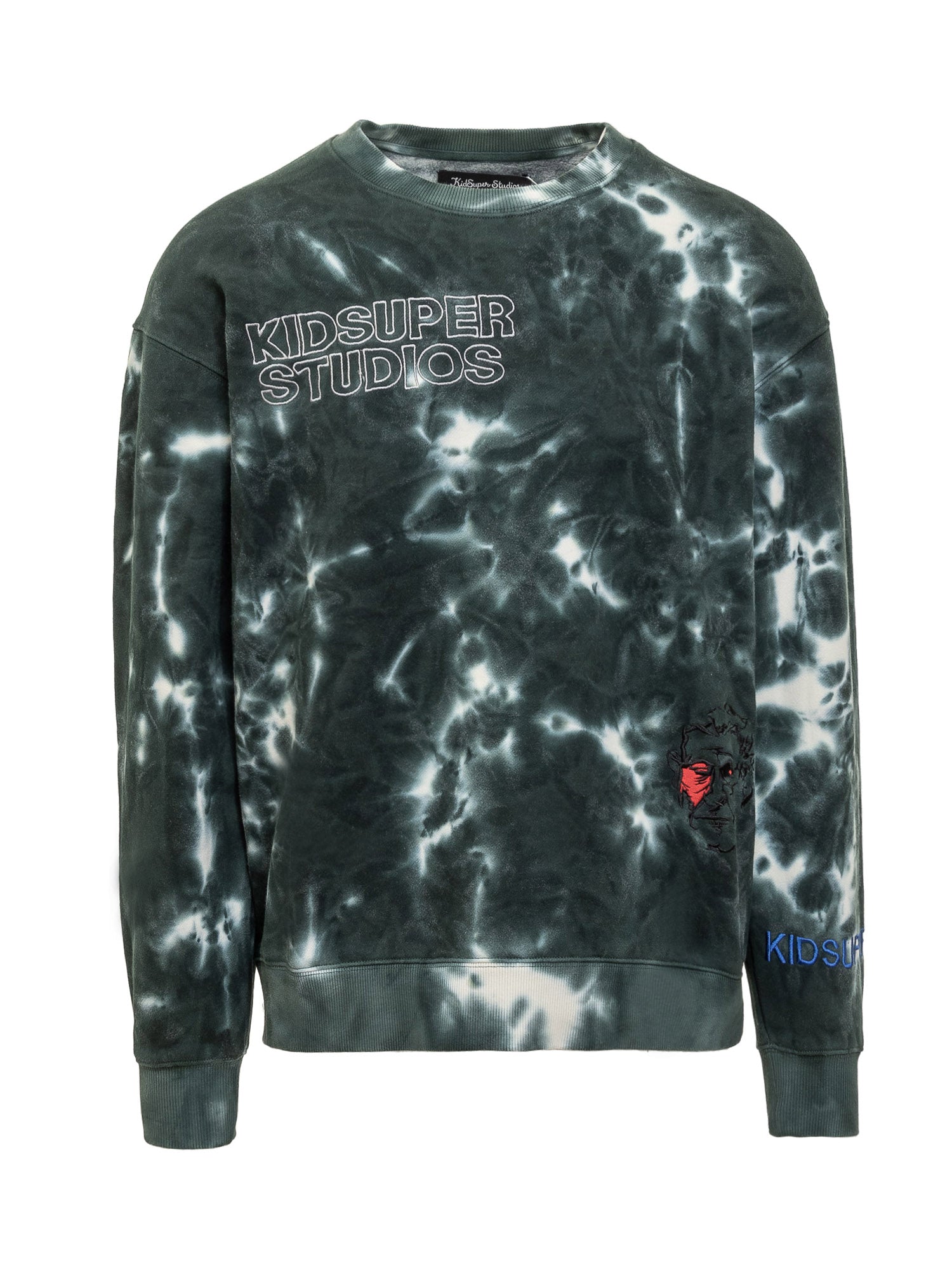 Long-sleeved sweatshirt. Crew neck. Ribbed hems. DYE all-over pattern with logo patch.