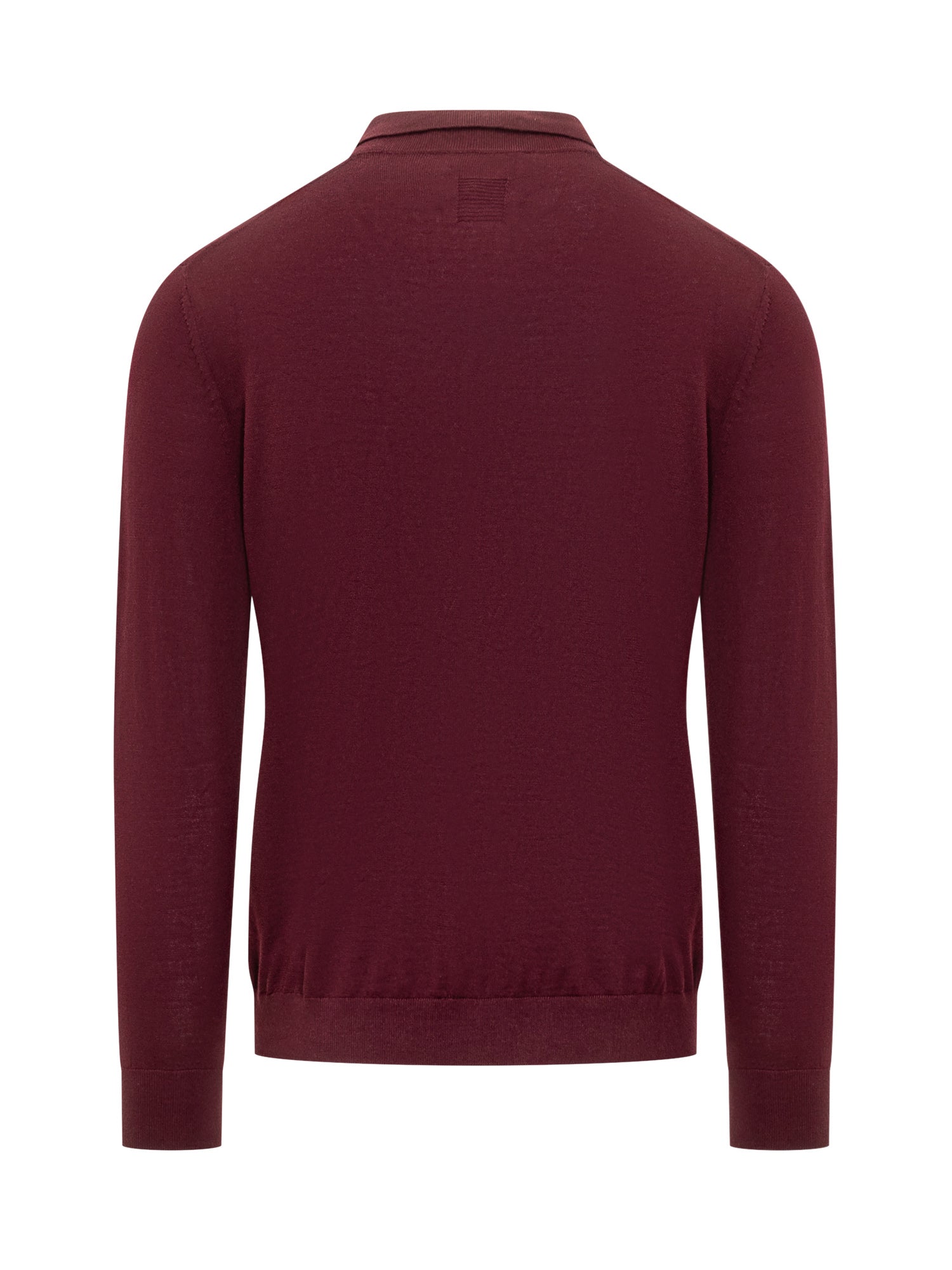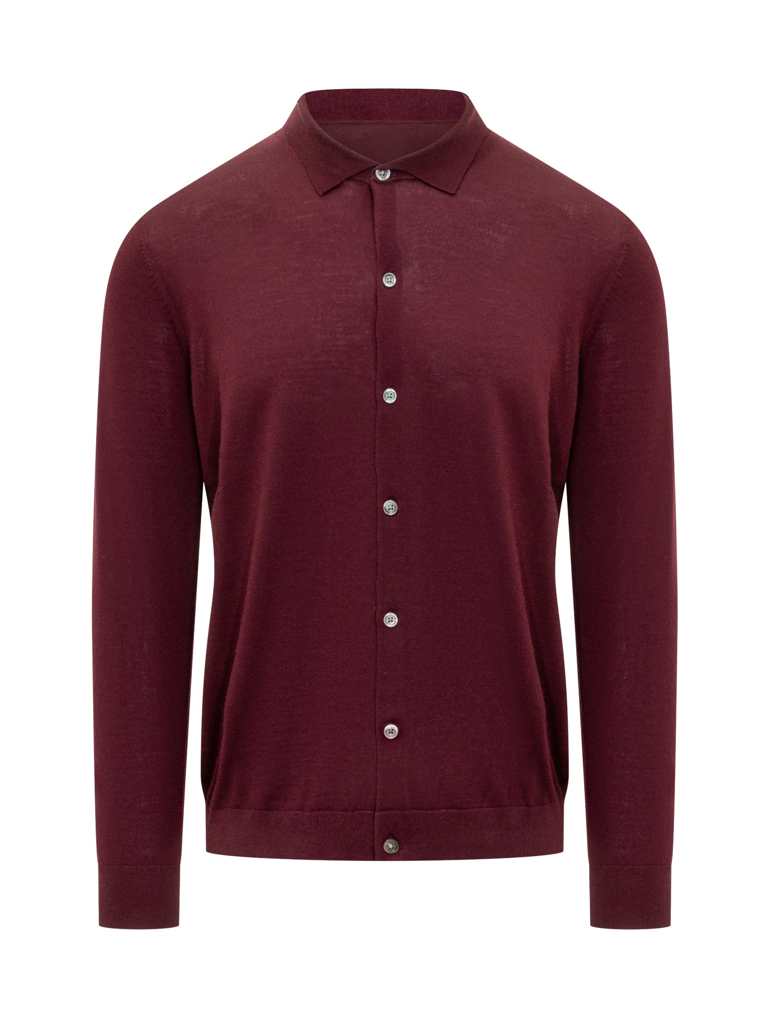 Knit De Monsieur lightweight bordeaux knit shirt with button closure and classic collar.