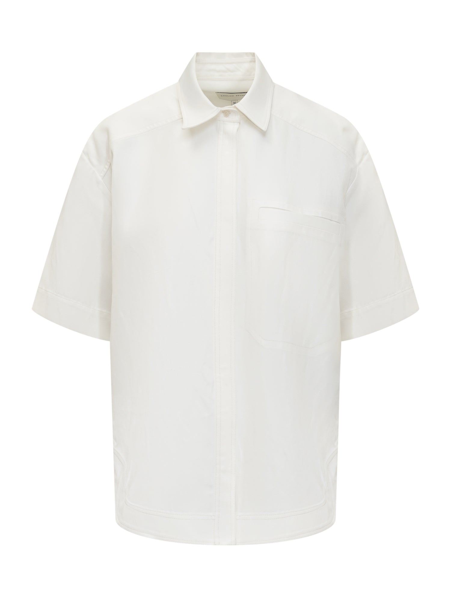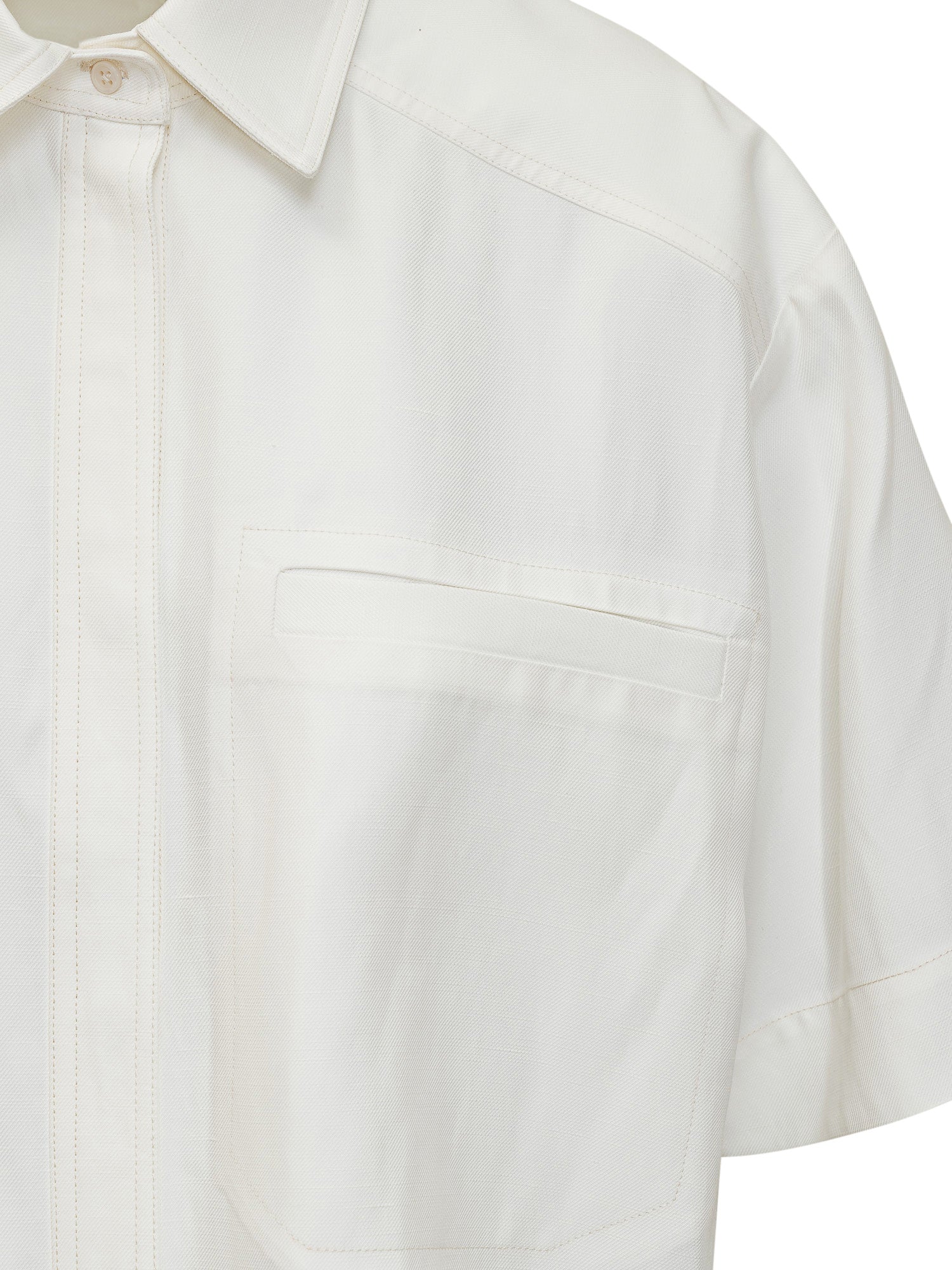 Short sleeves. Point collar. Button closure.
