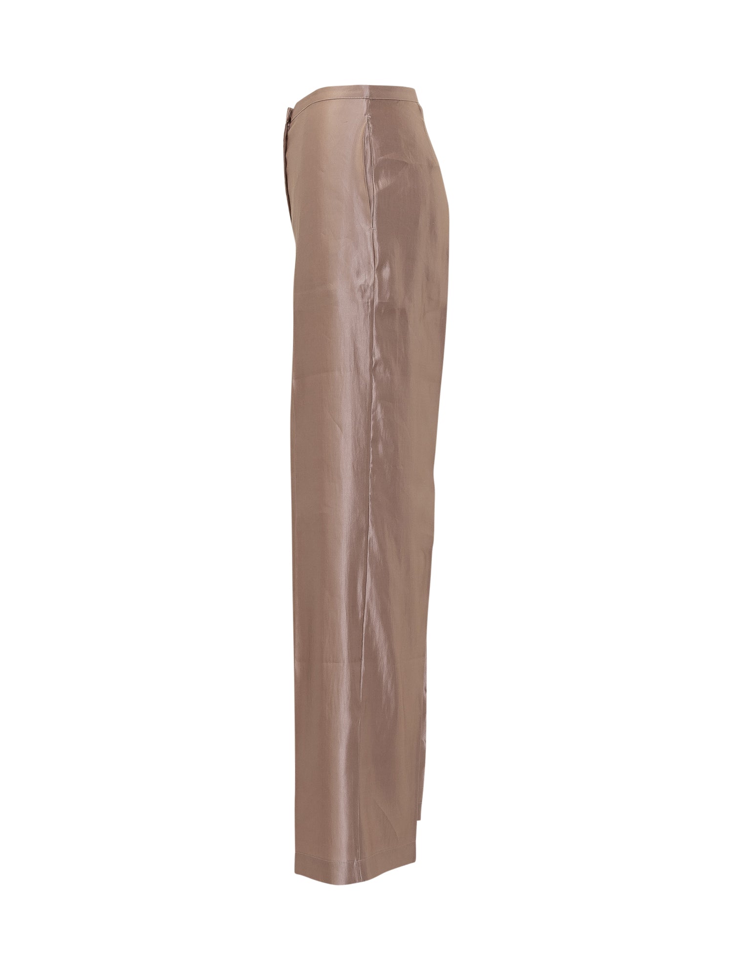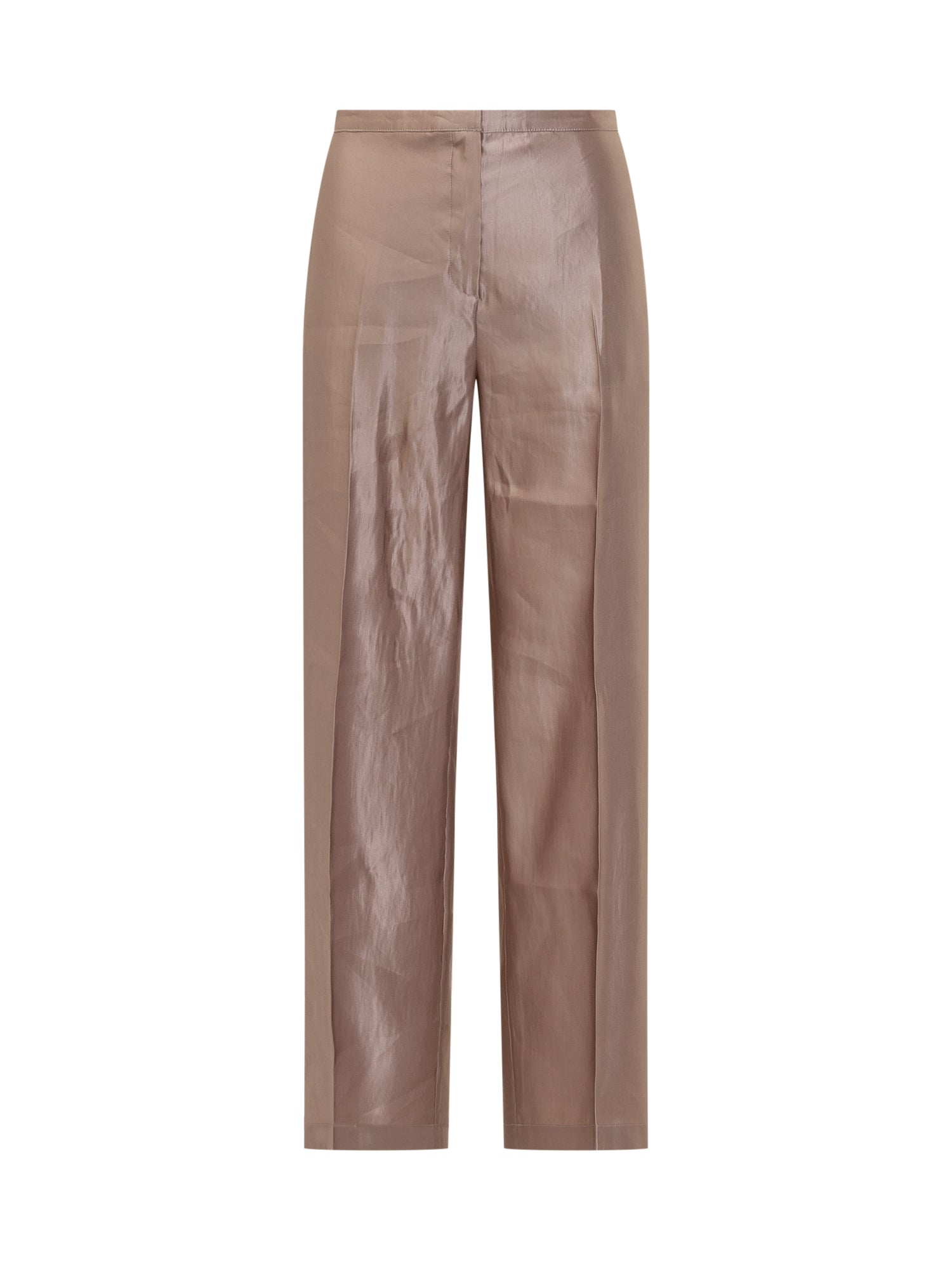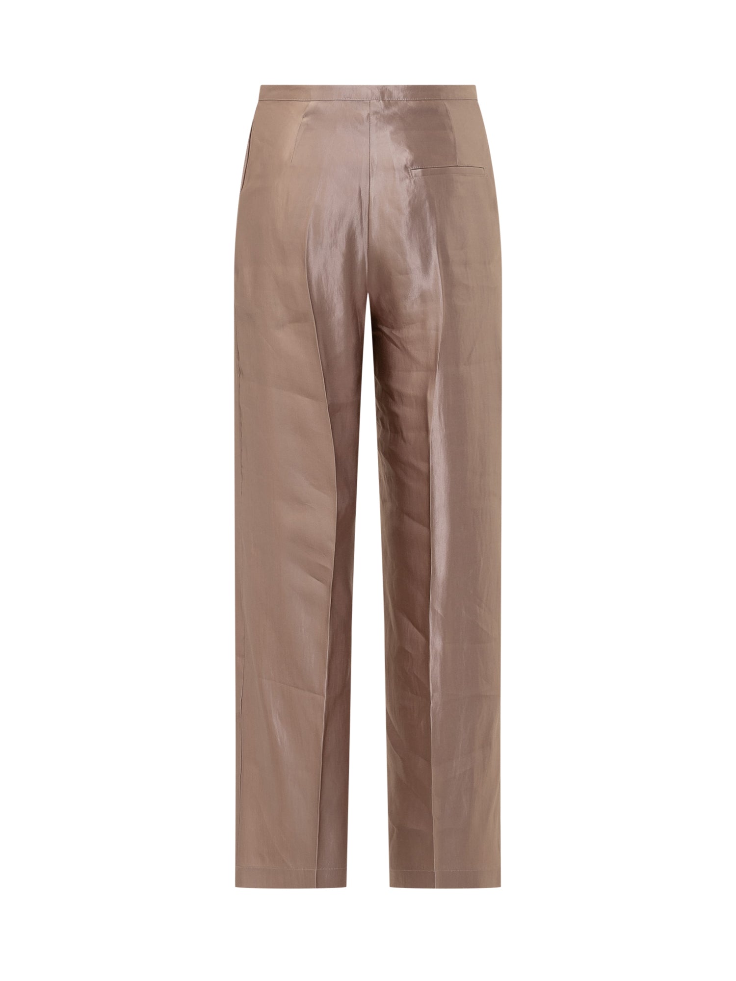Pink trousers in silk and linen. Pockets. Closure with zip and hook.