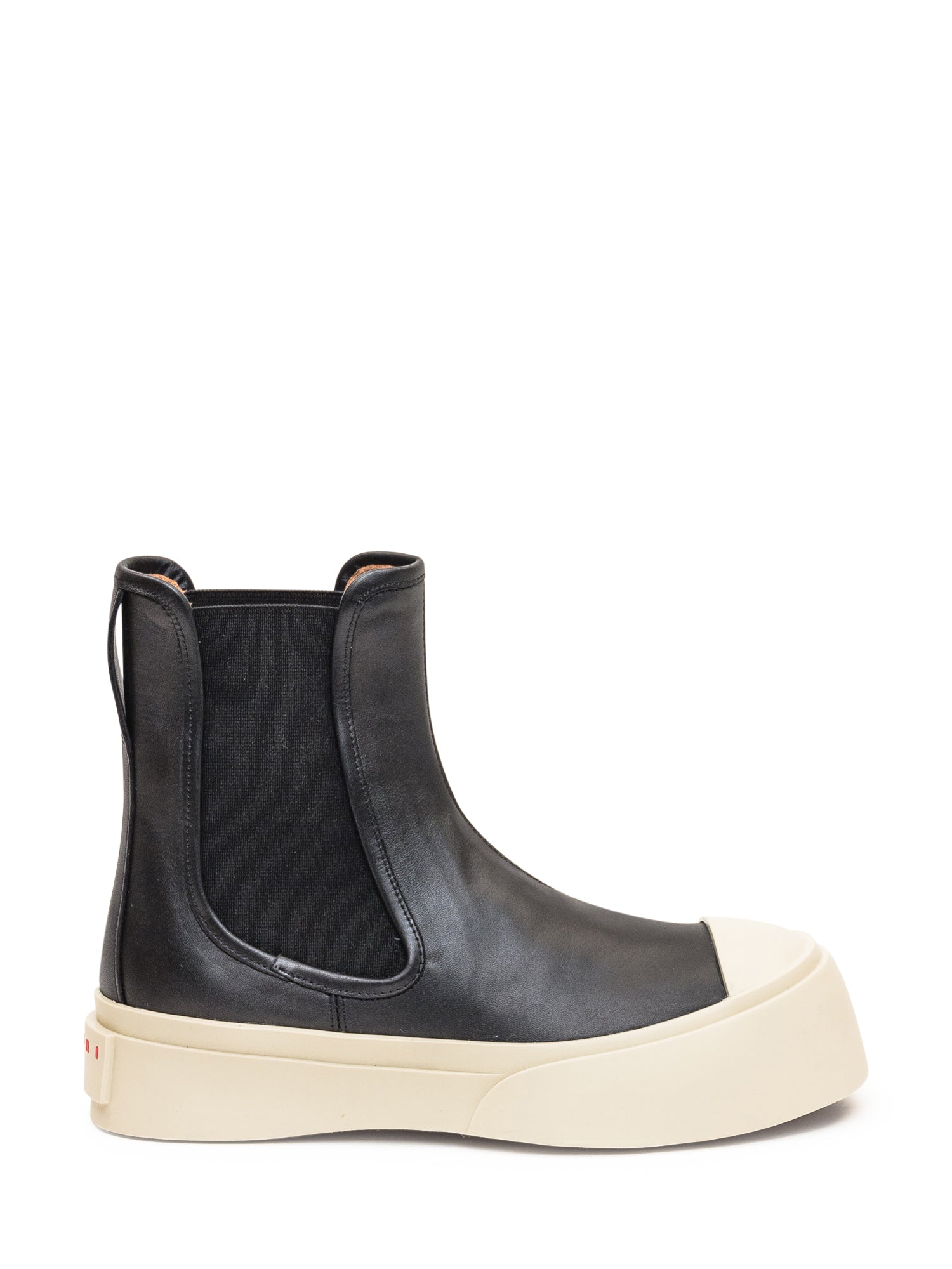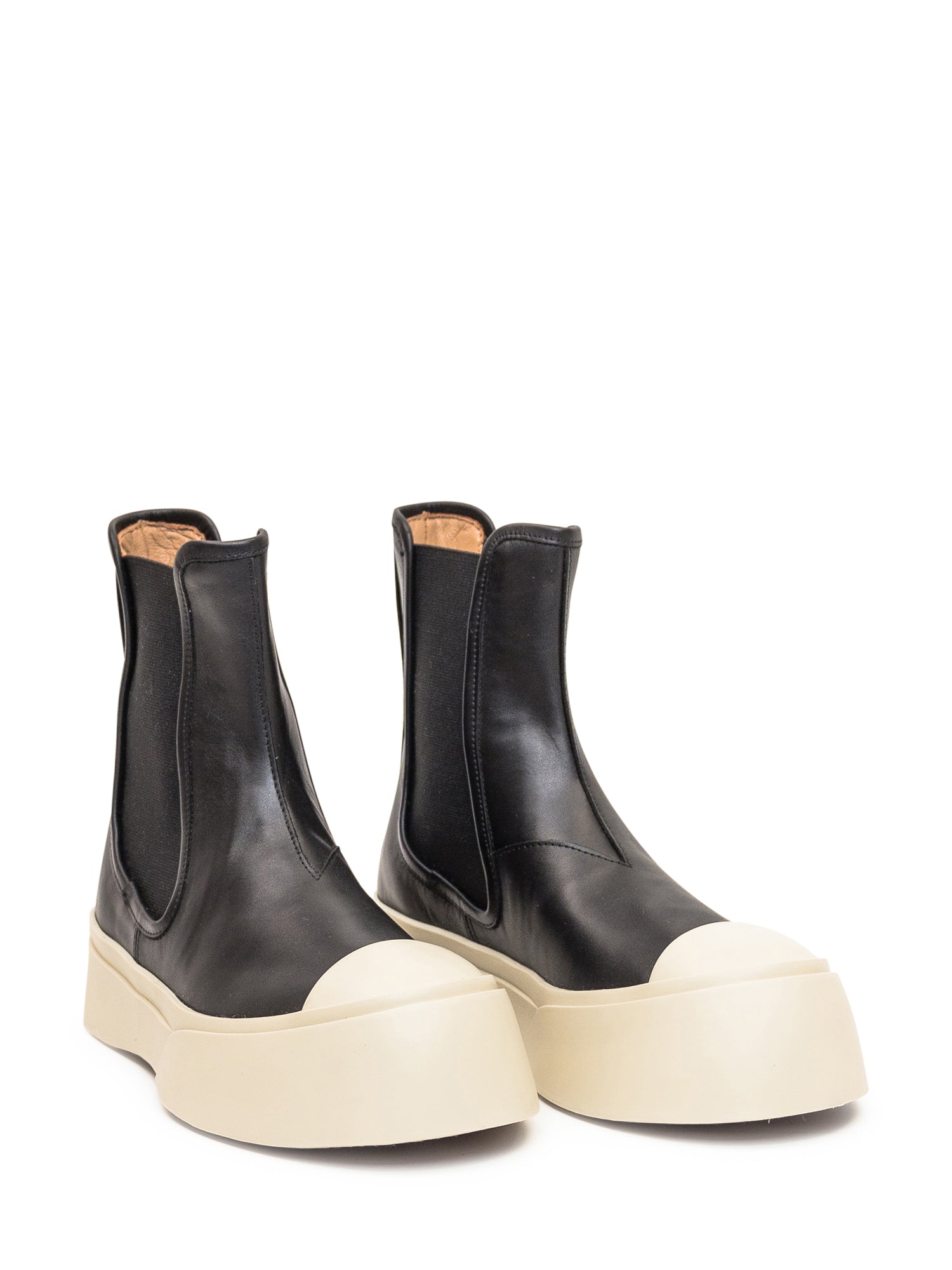 Black nappa boots. Leather lining. Soft leather insole. Thick rubber sole with Marni logo on the back.