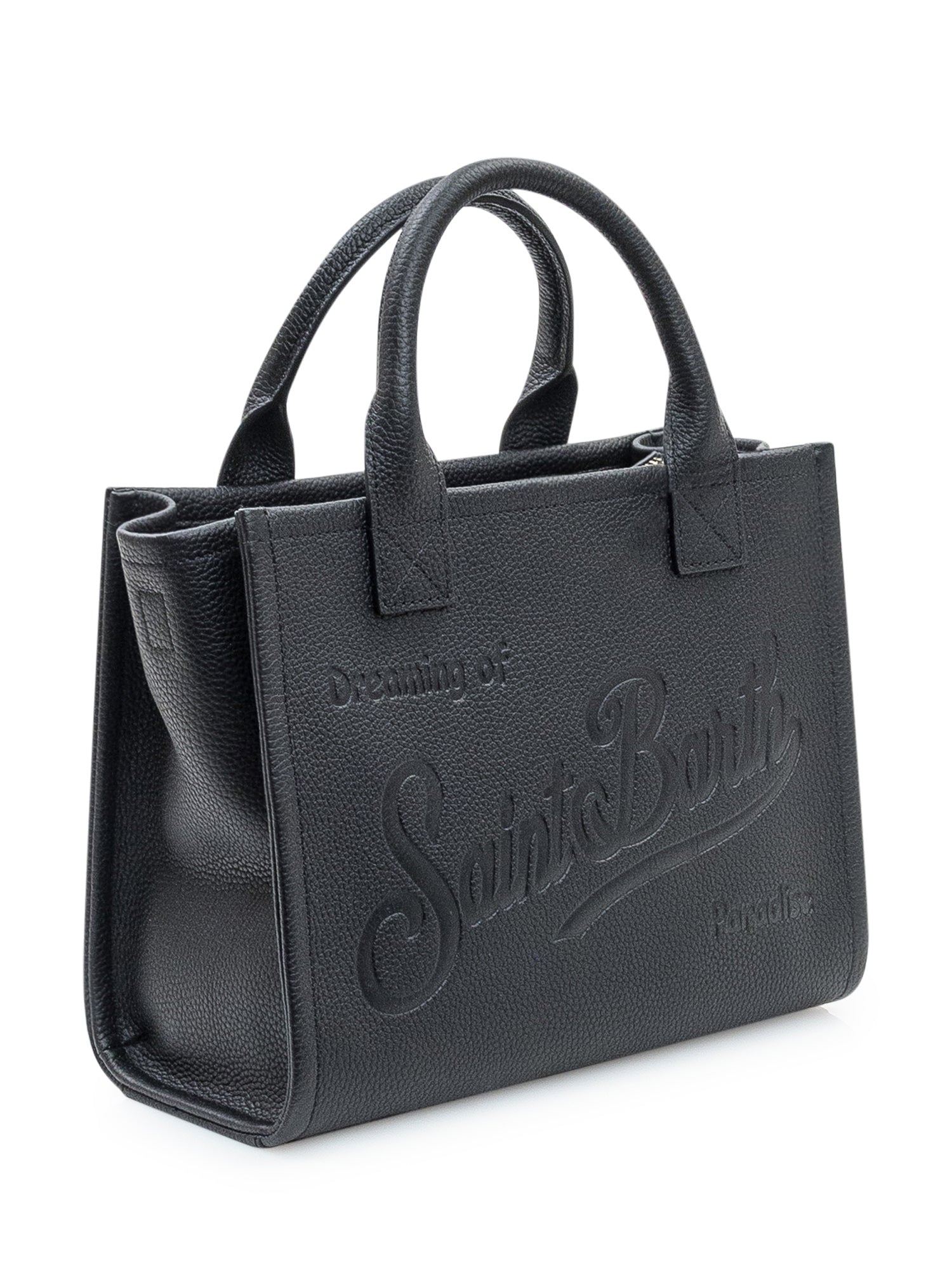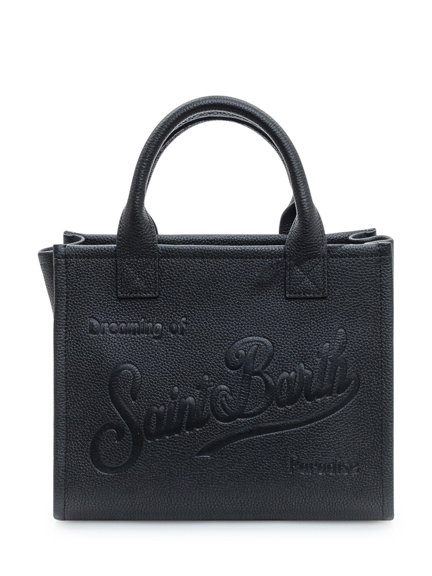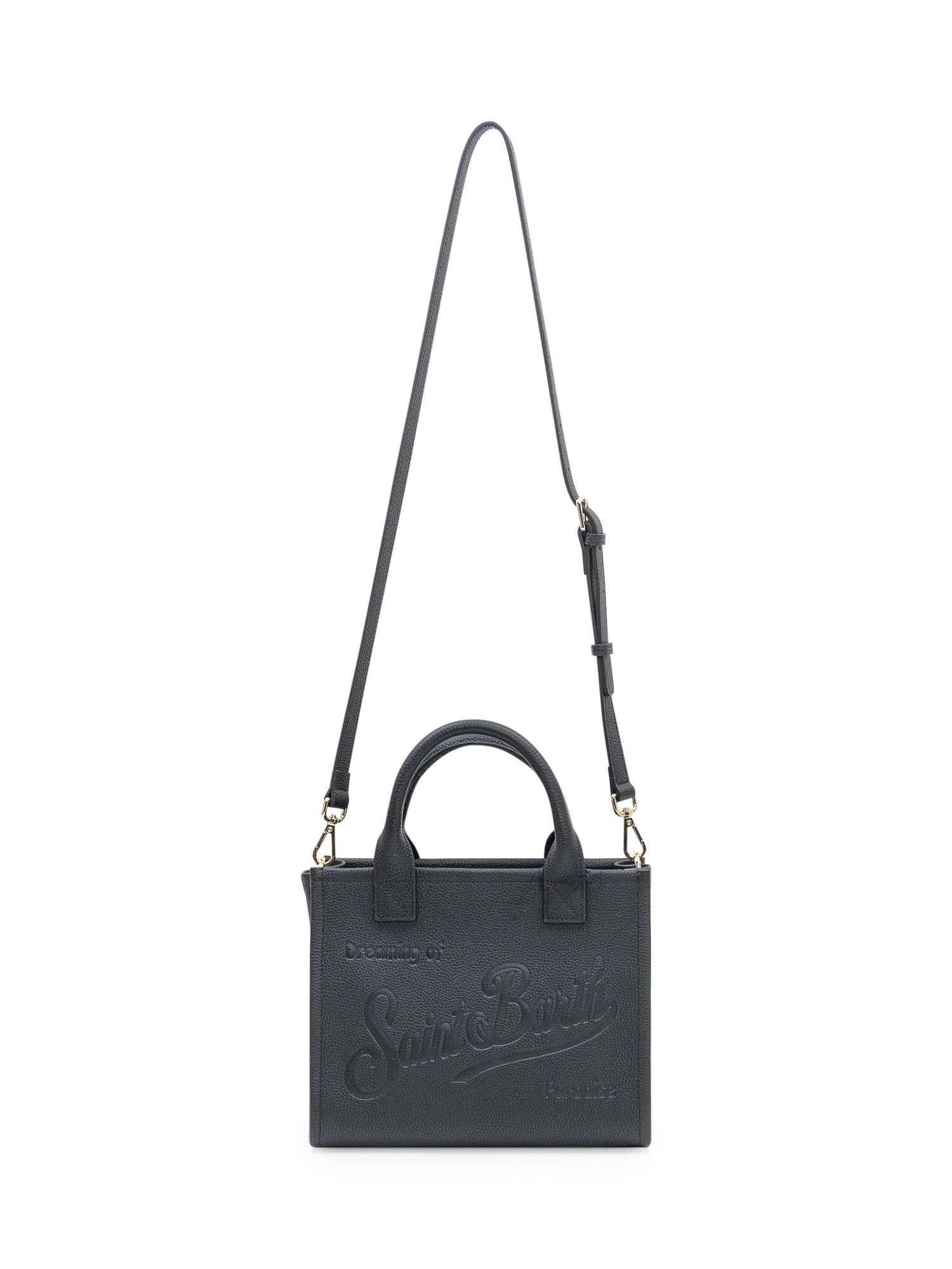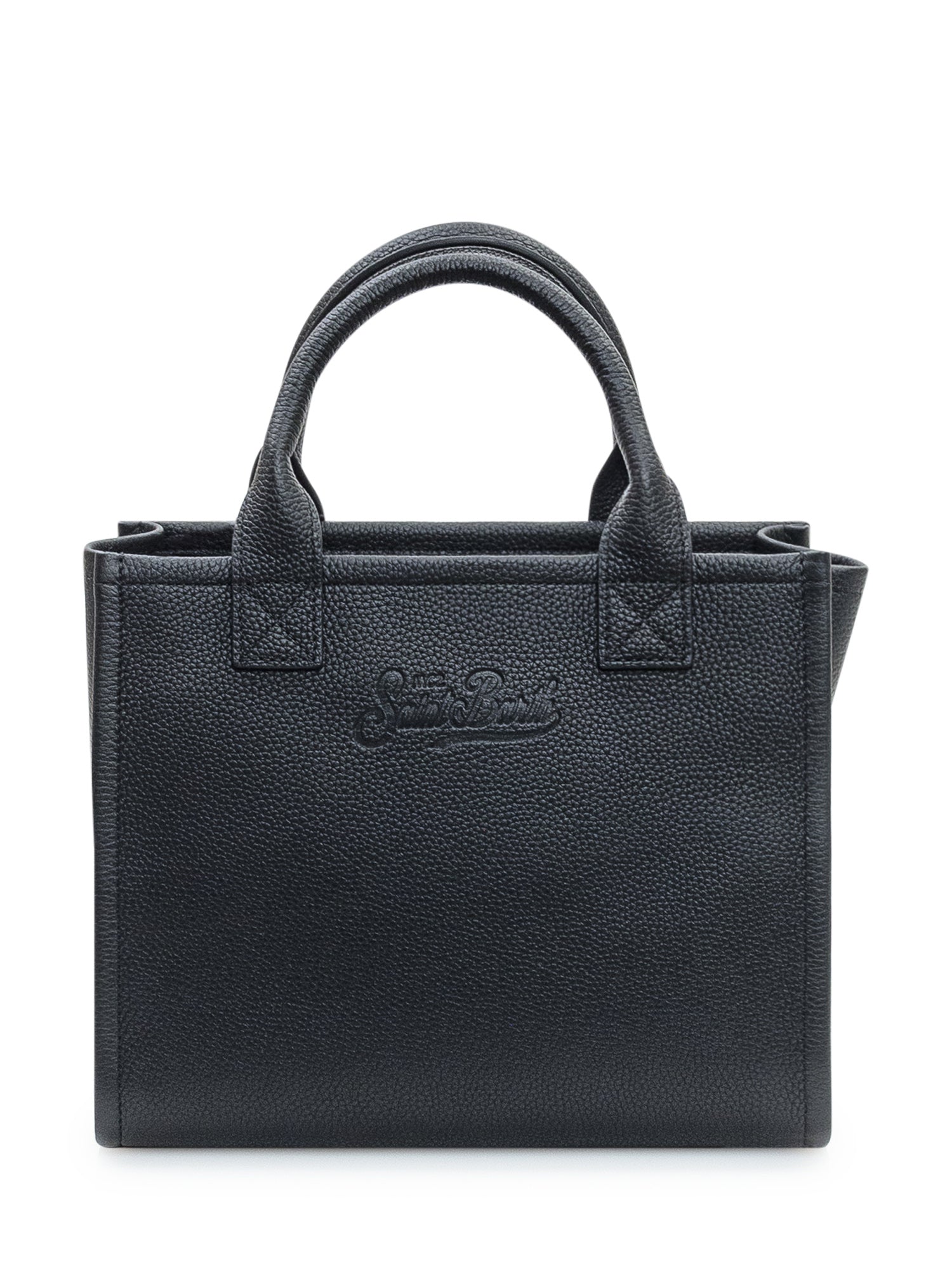 MC2 Saint Barth Vanity Bag Midi in textured black leather with embossed logo.