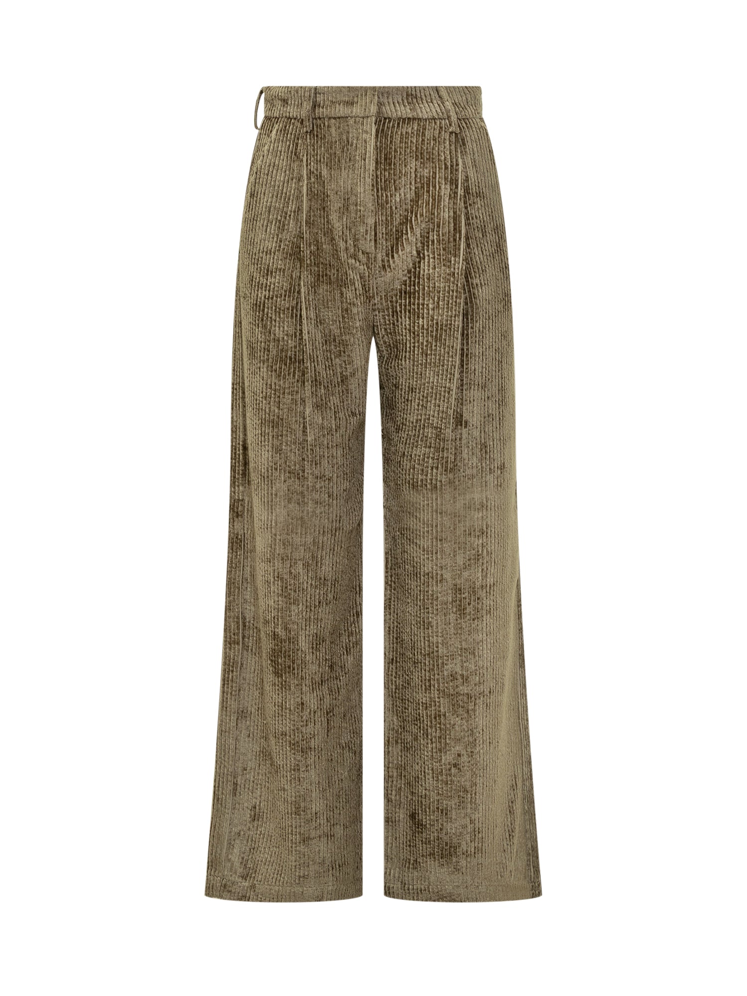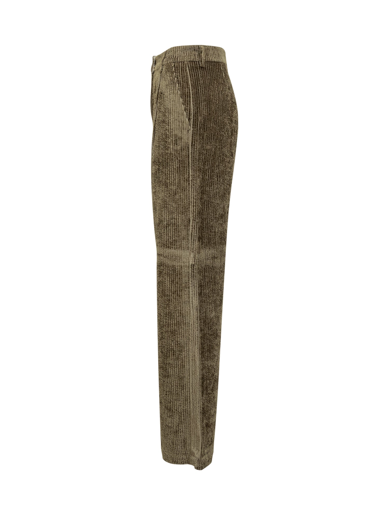 Monomì trousers in green corduroy velvet with a wide, relaxed fit.