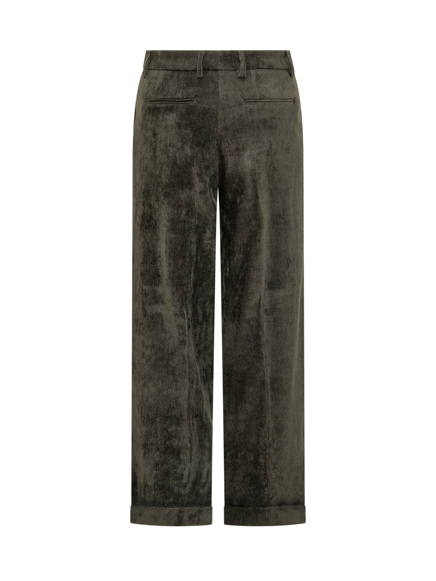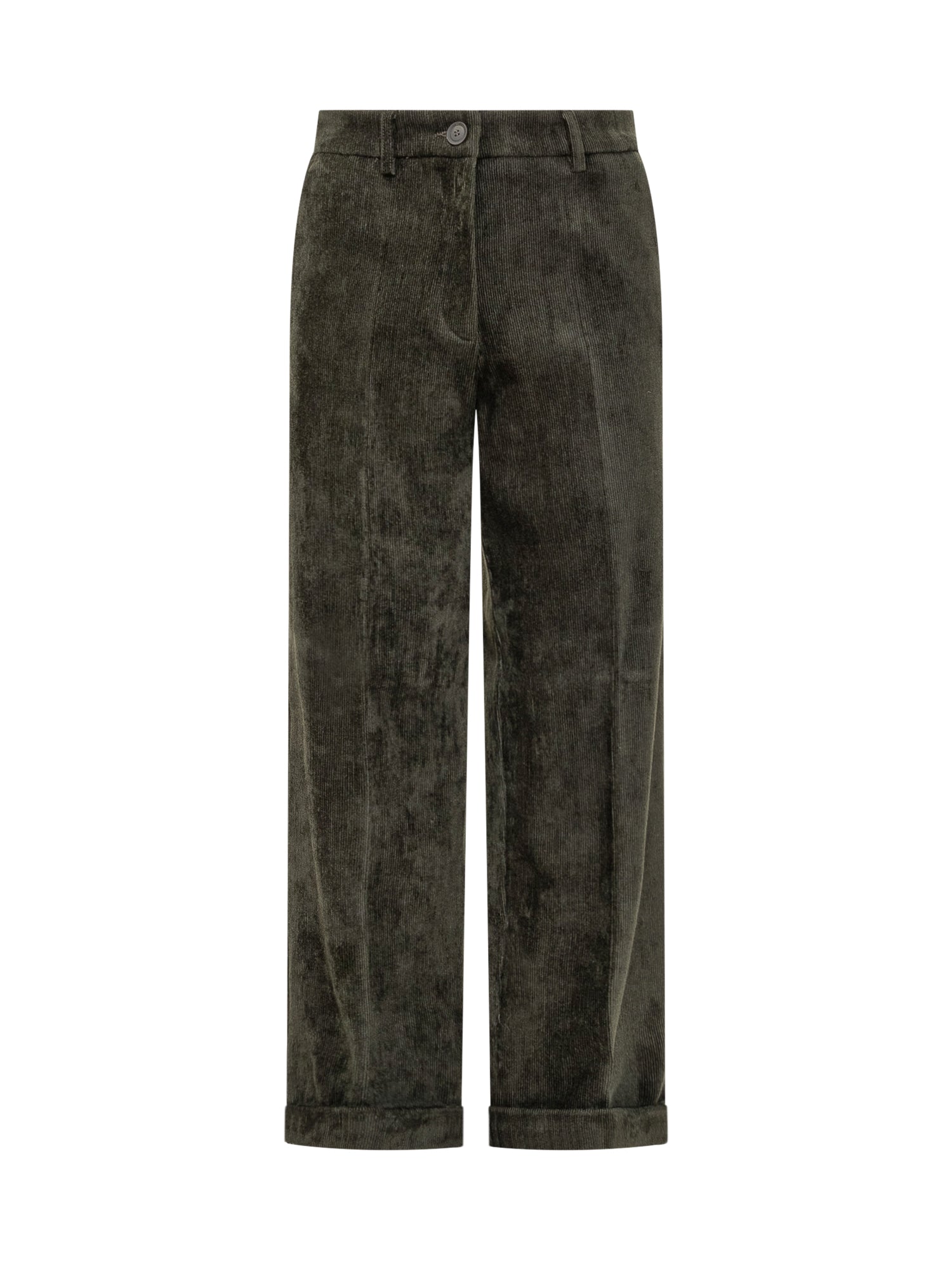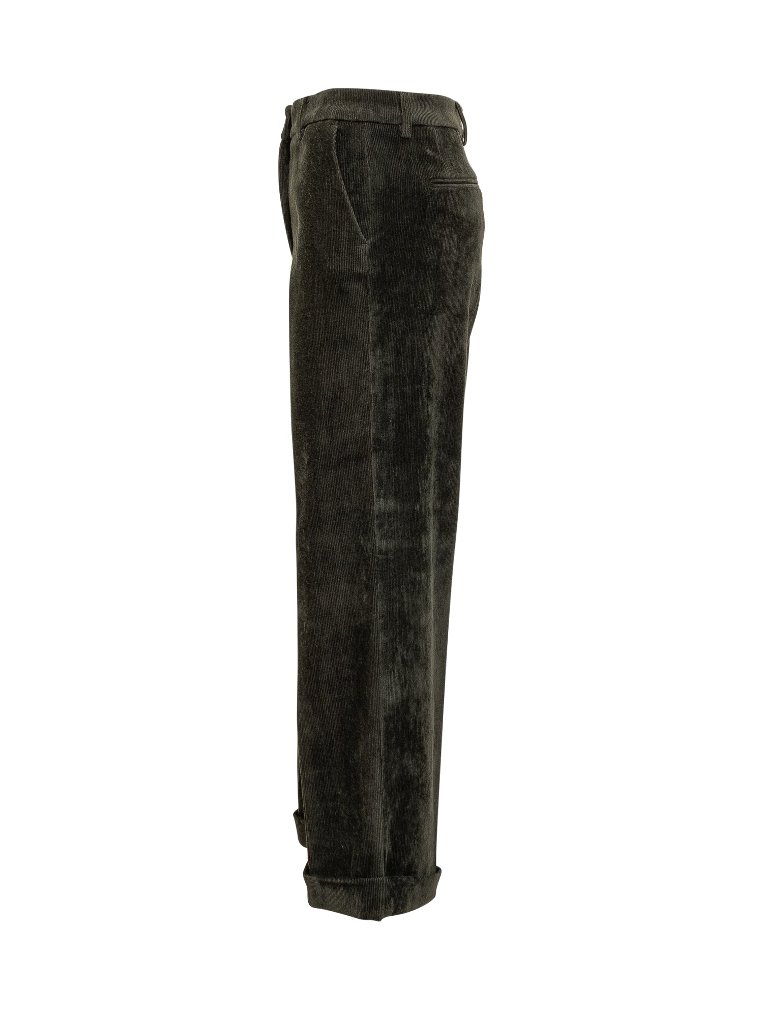 Monomì trousers in dark green corduroy velvet with straight cut and cuffed hem.