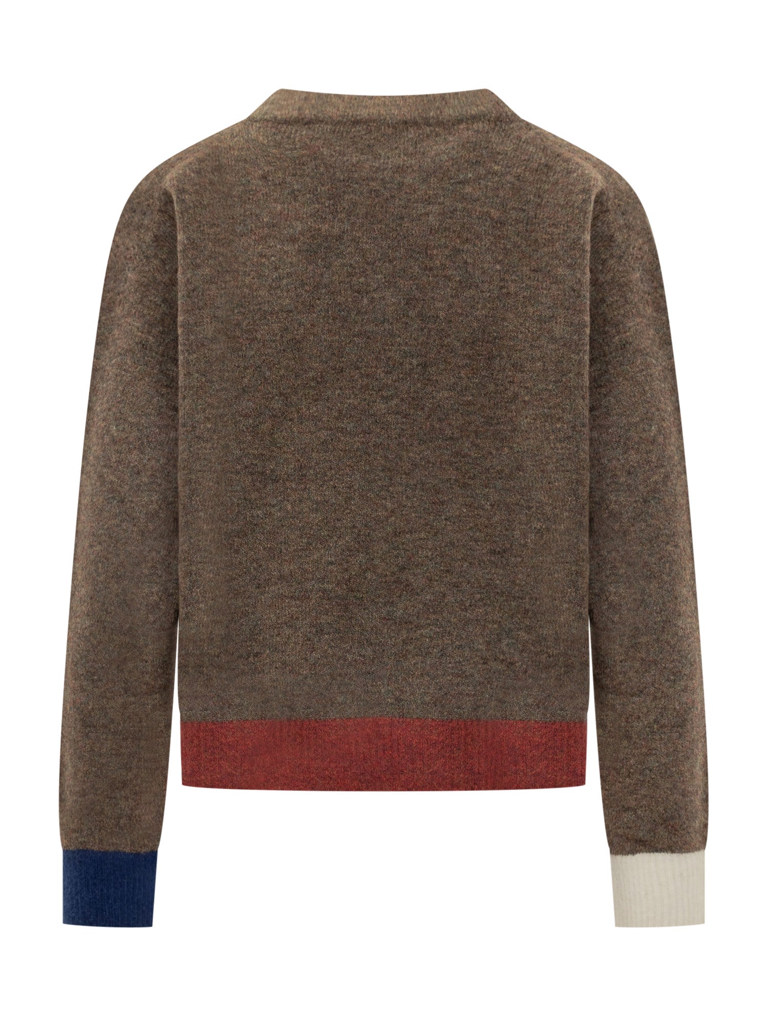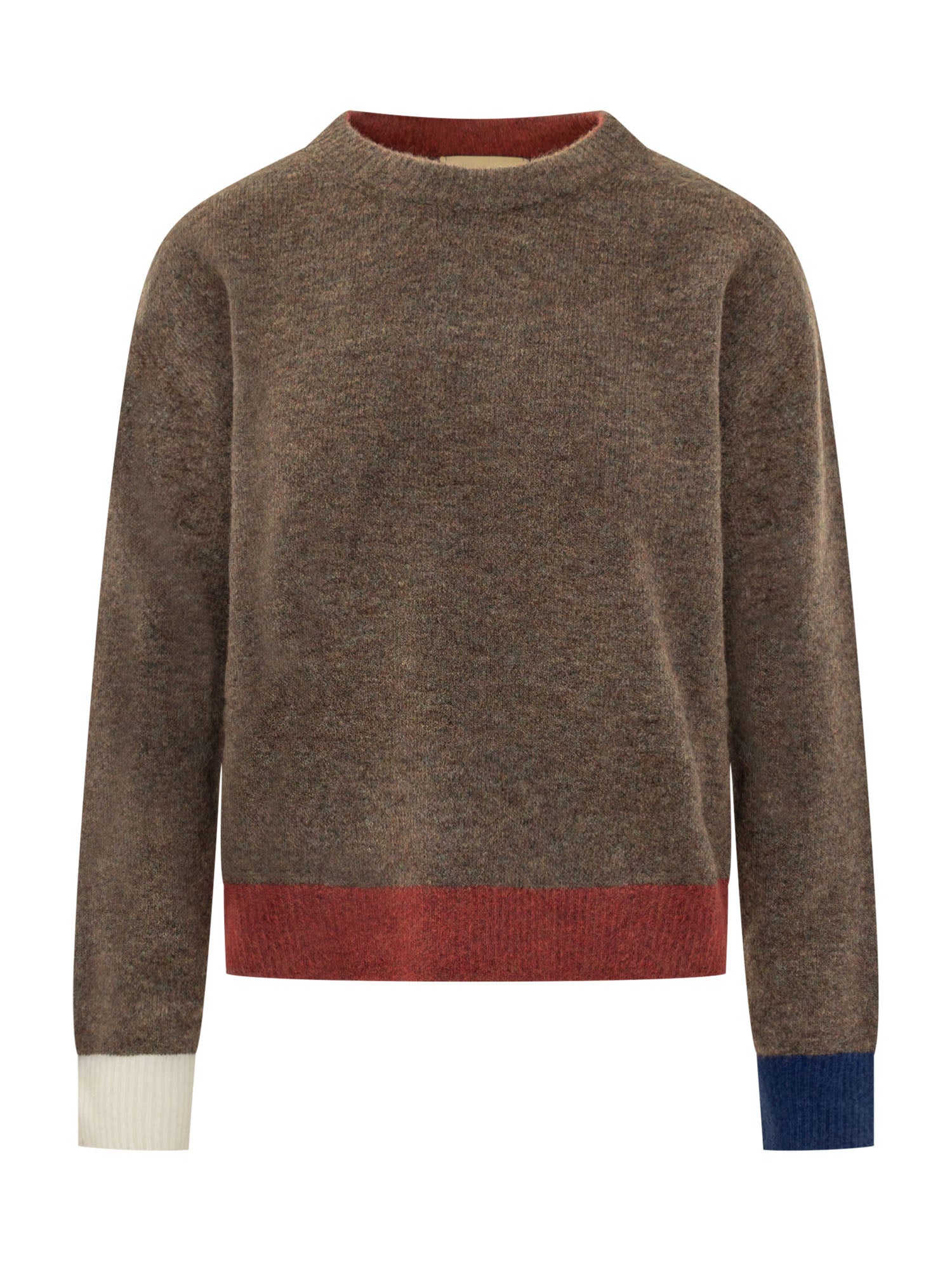 Monom\u00EC wool sweater in brown with contrasting details on hem and cuffs.