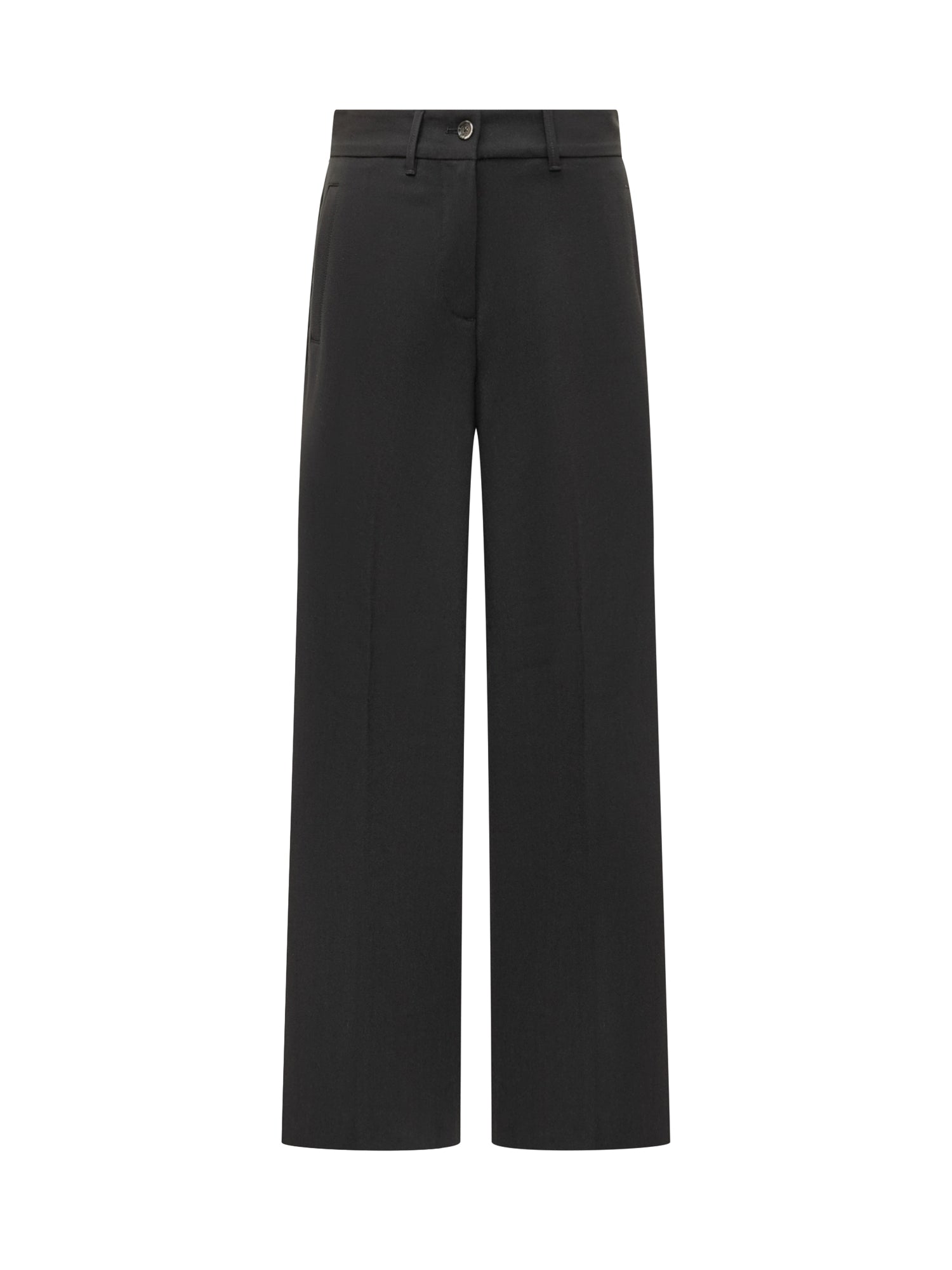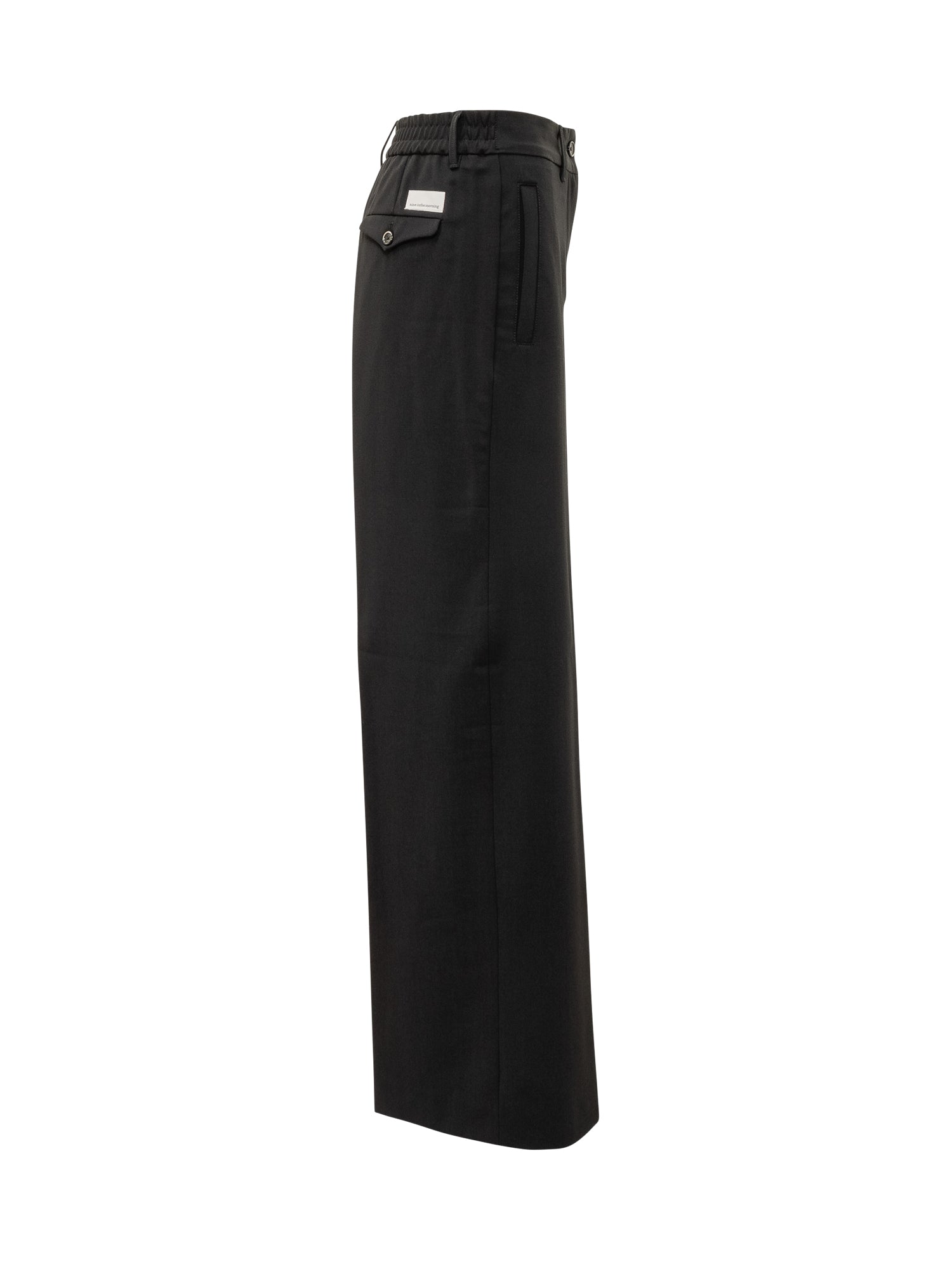 Nine The Morning trousers in black fabric with wide-leg cut and regular waist with belt loops.