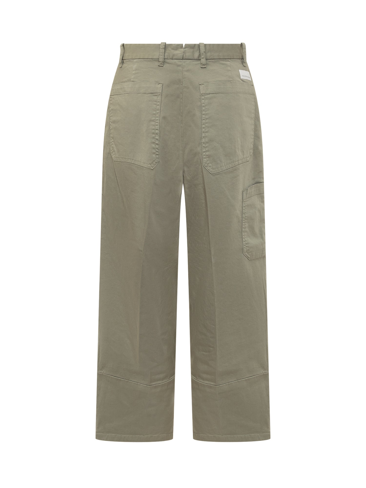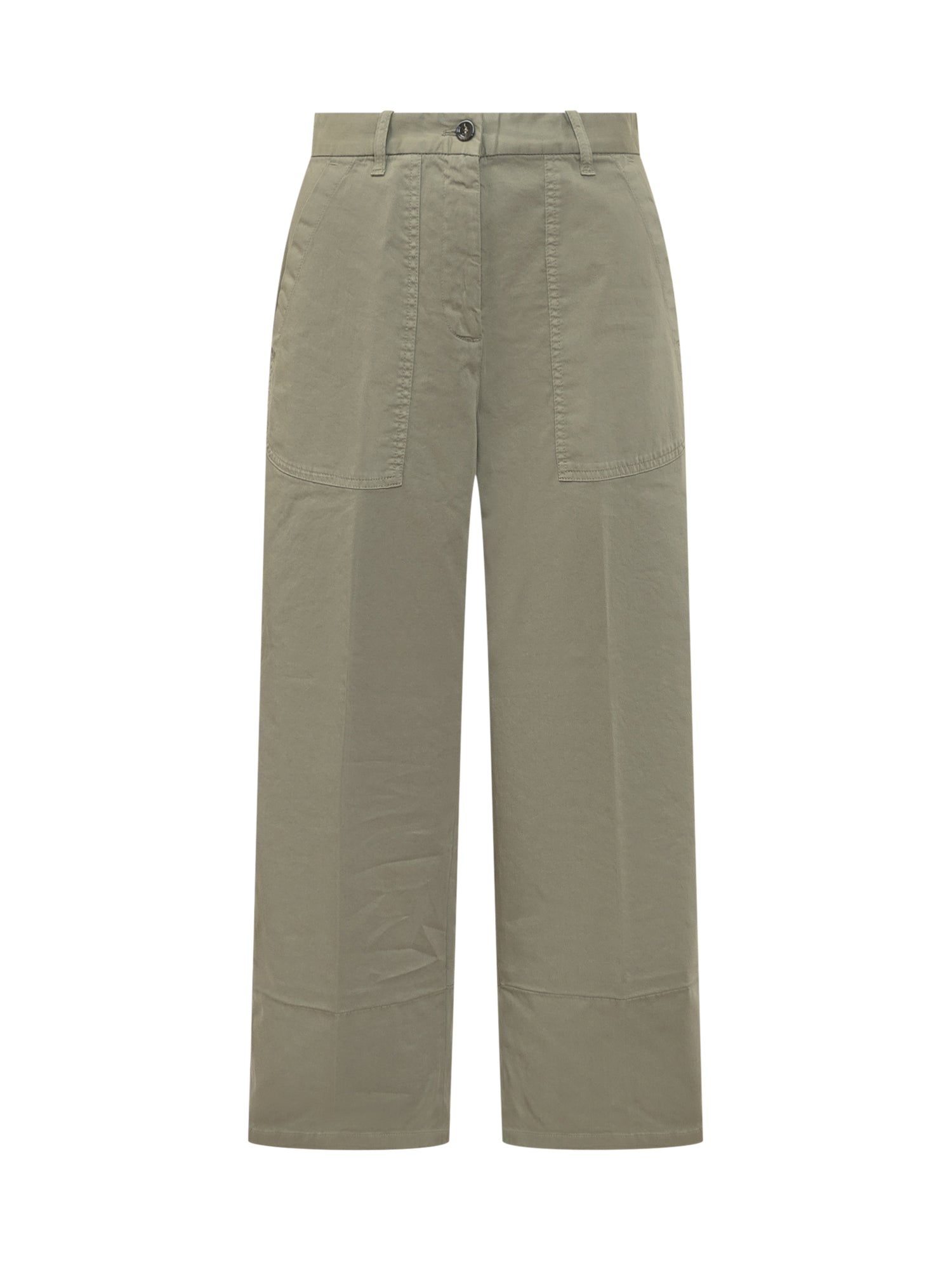 Button and zip closure. Wide leg. Patch pockets. Belt loops.