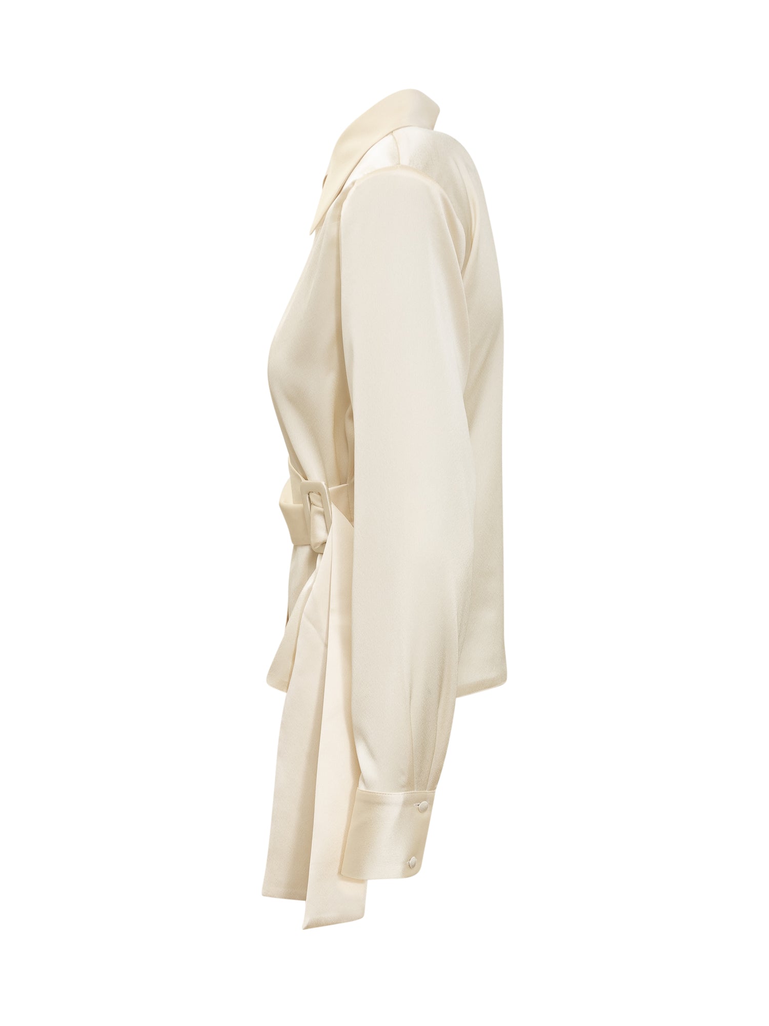 Long-sleeved shirt. Classic collar. Button closure and maxi waistband. Cut-out on the front. Cuffs with buttons.
