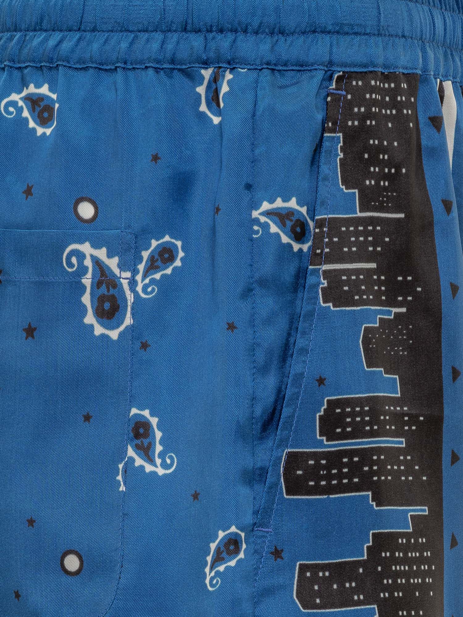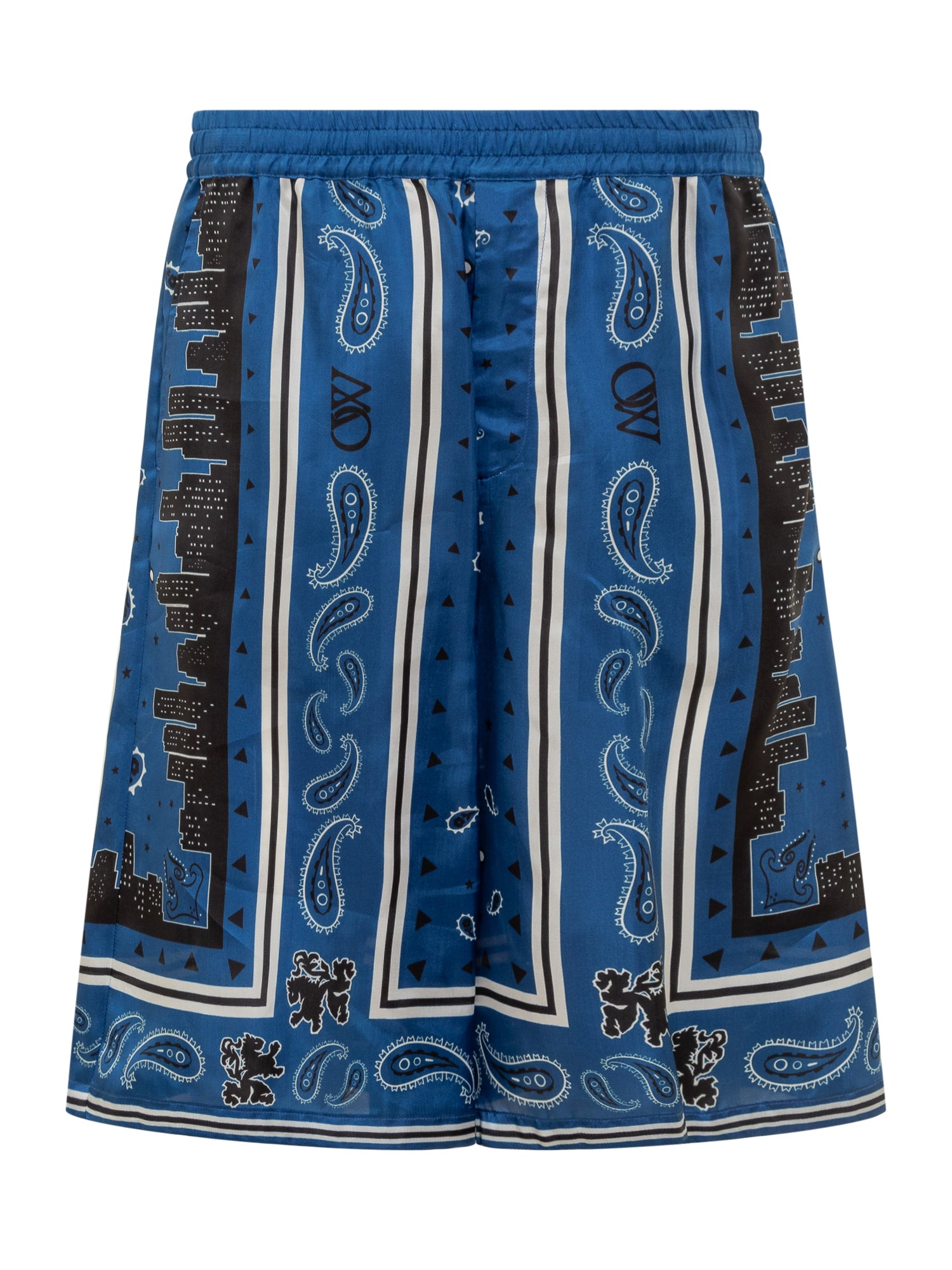 Viscose shorts. Elasticized waistband. Two side pockets and two back pockets. Skyline and all-over bandana motif decoration.