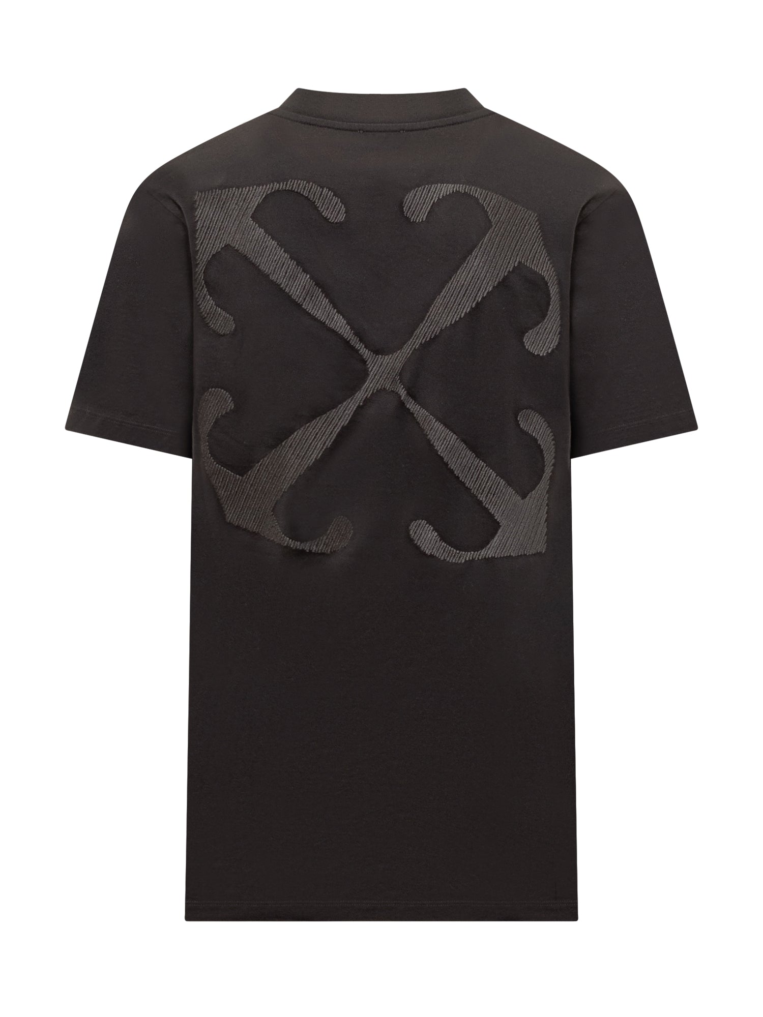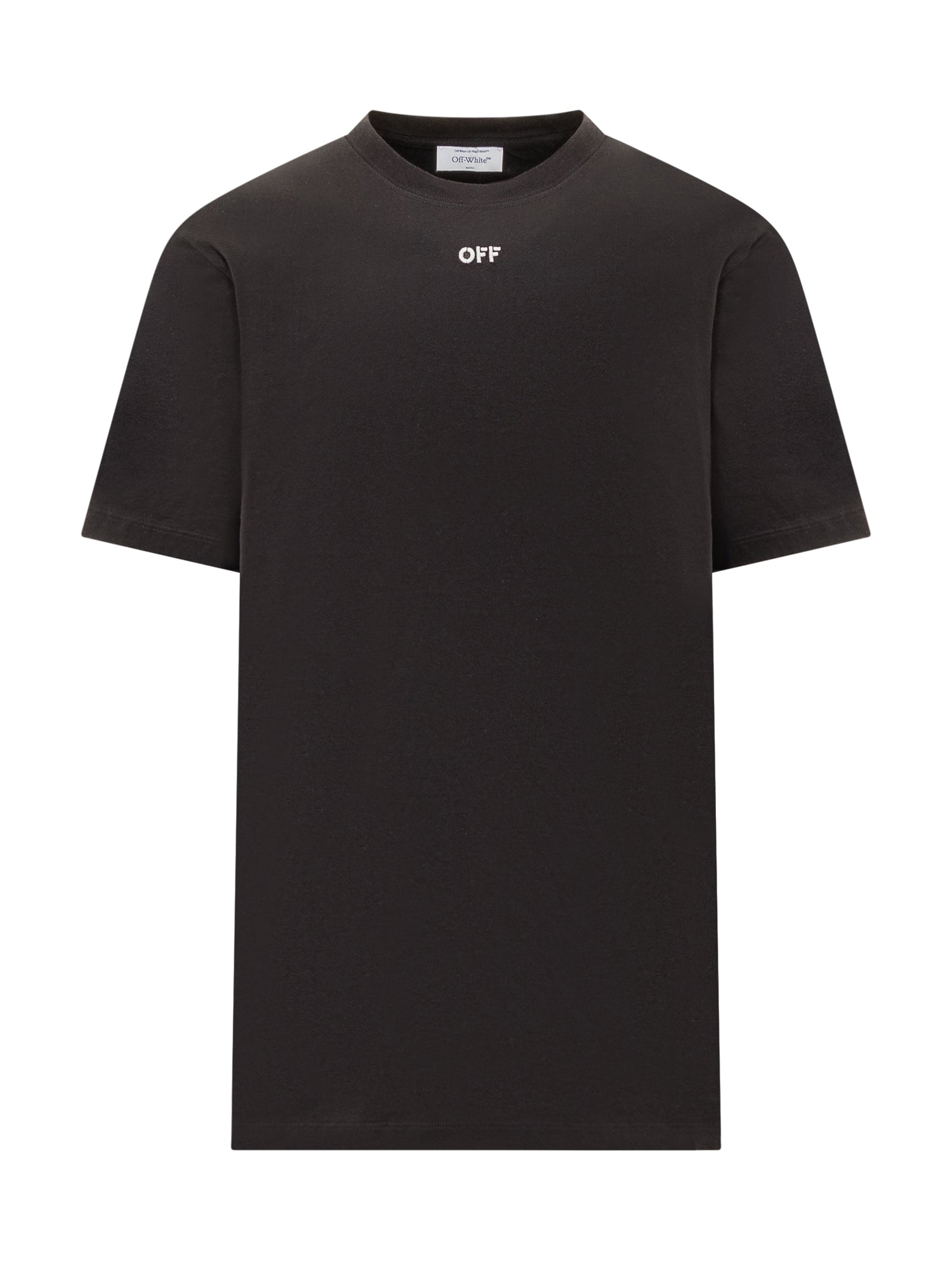 Short-sleeved cotton T-shirt. Crew neck. Ribbed hems. Off logo embroidered on front. Arrow Off-White logo embroidered on the back.
