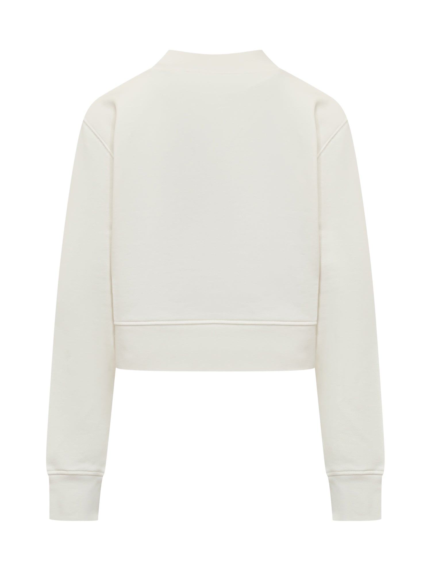 Long-sleeved cotton cropped sweatshirt. Crew neck. Ribbed hem. Bear in mind patch and embossed logo on the front.