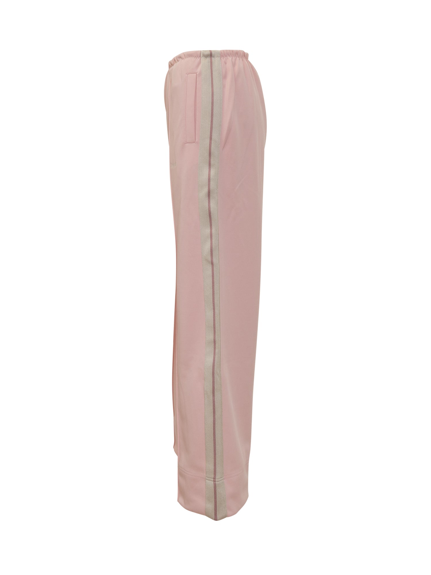 Palm Angels pink technical pants featuring contrasting side stripes. Elastic waistband and embroidered logo.