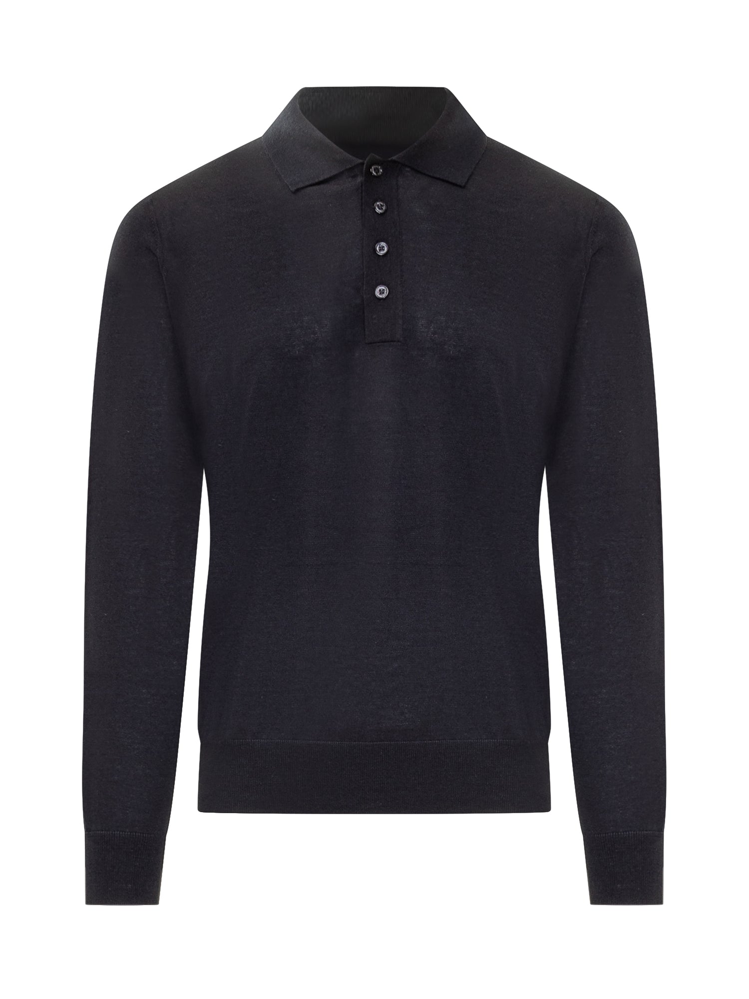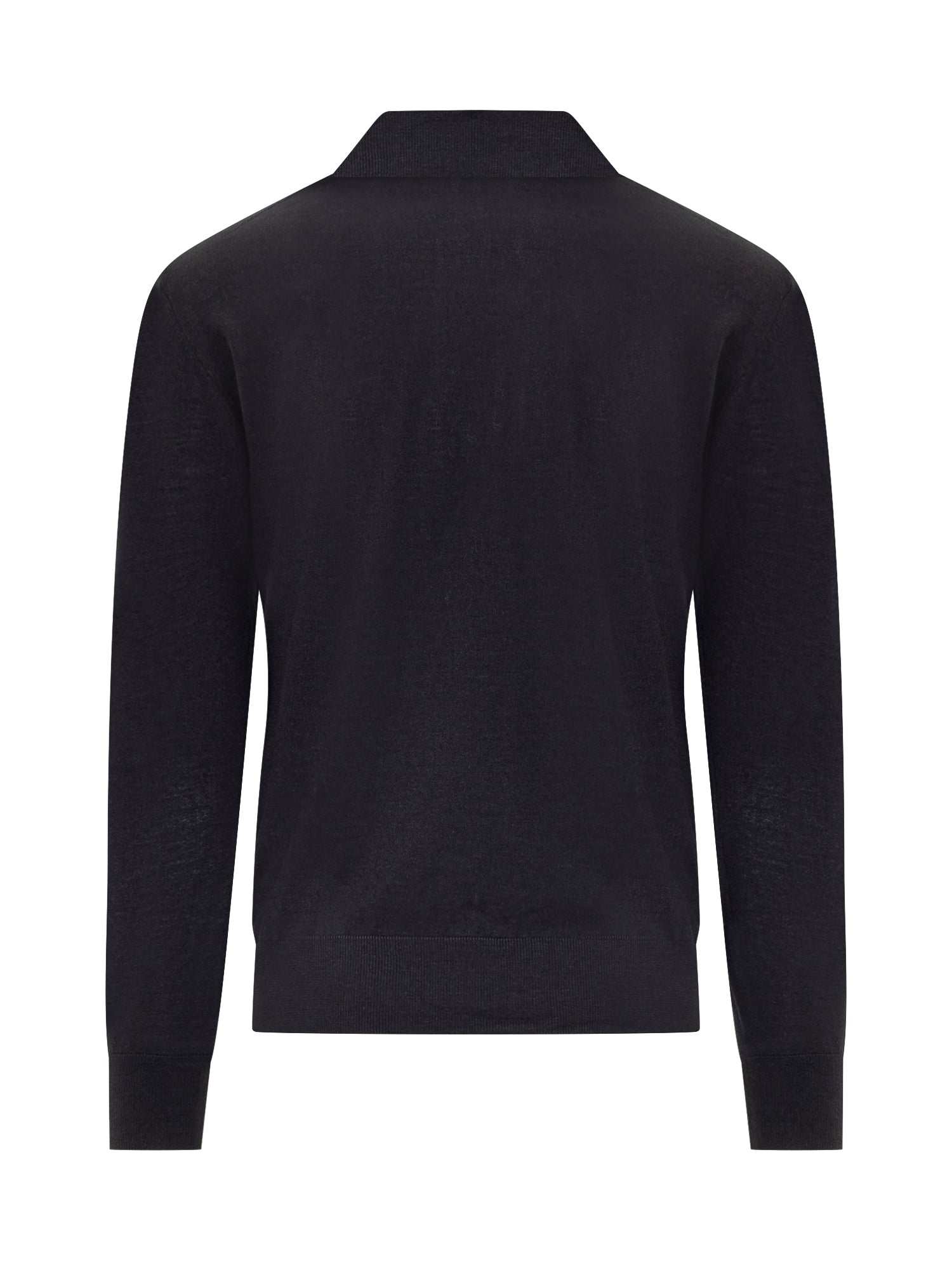 Paolo Pecora long-sleeved knit polo in extra-fine navy blue wool. Featuring a classic collar and four-button placket.
