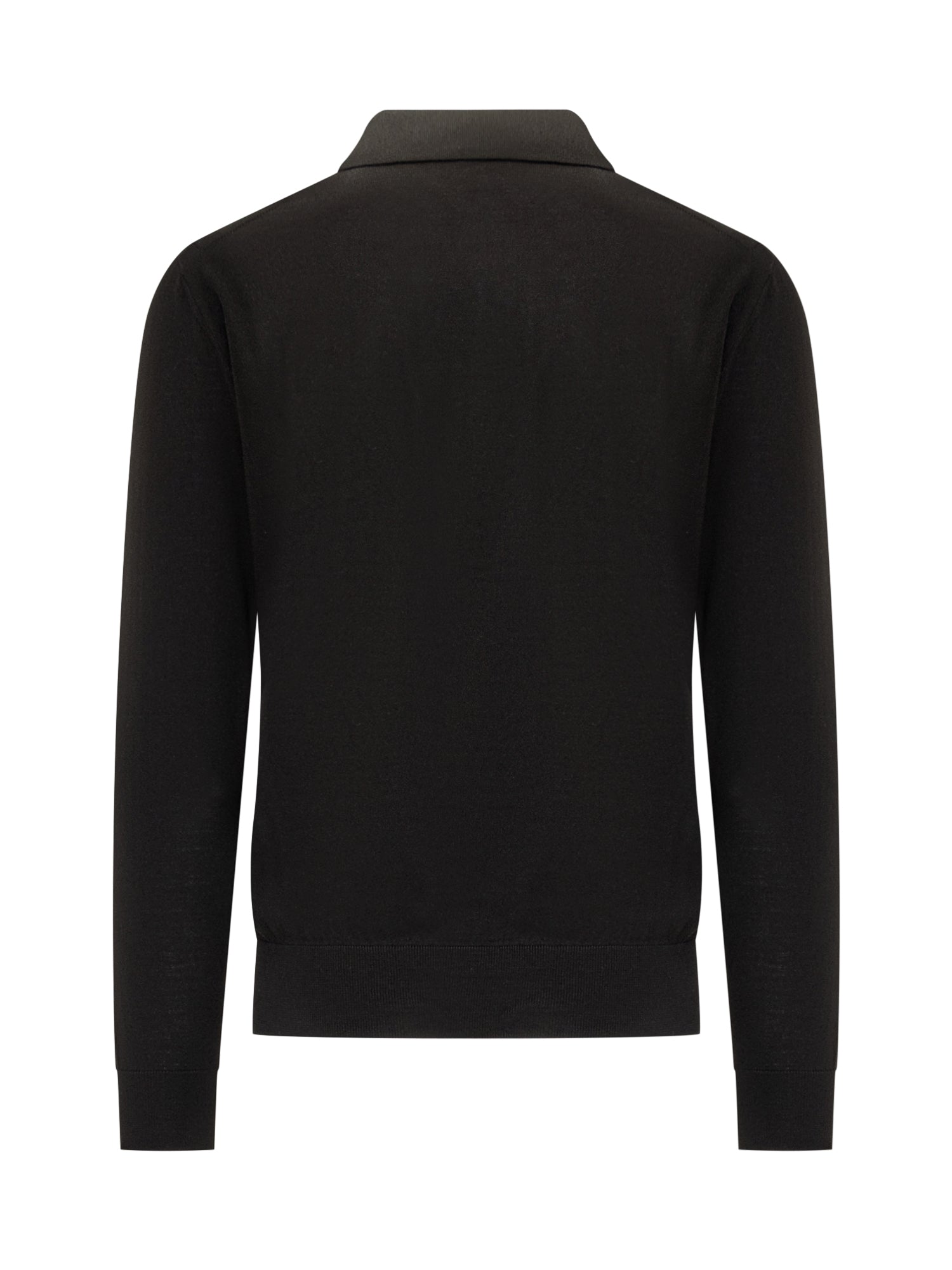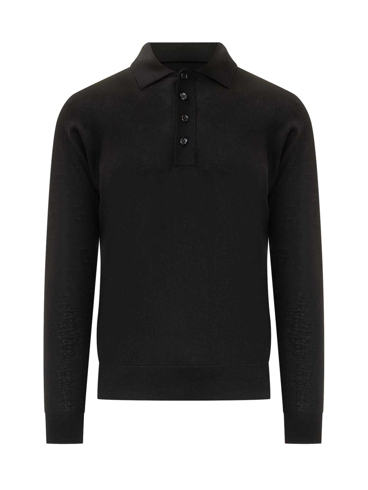 Paolo Pecora long-sleeved knit polo in extra-fine black wool.