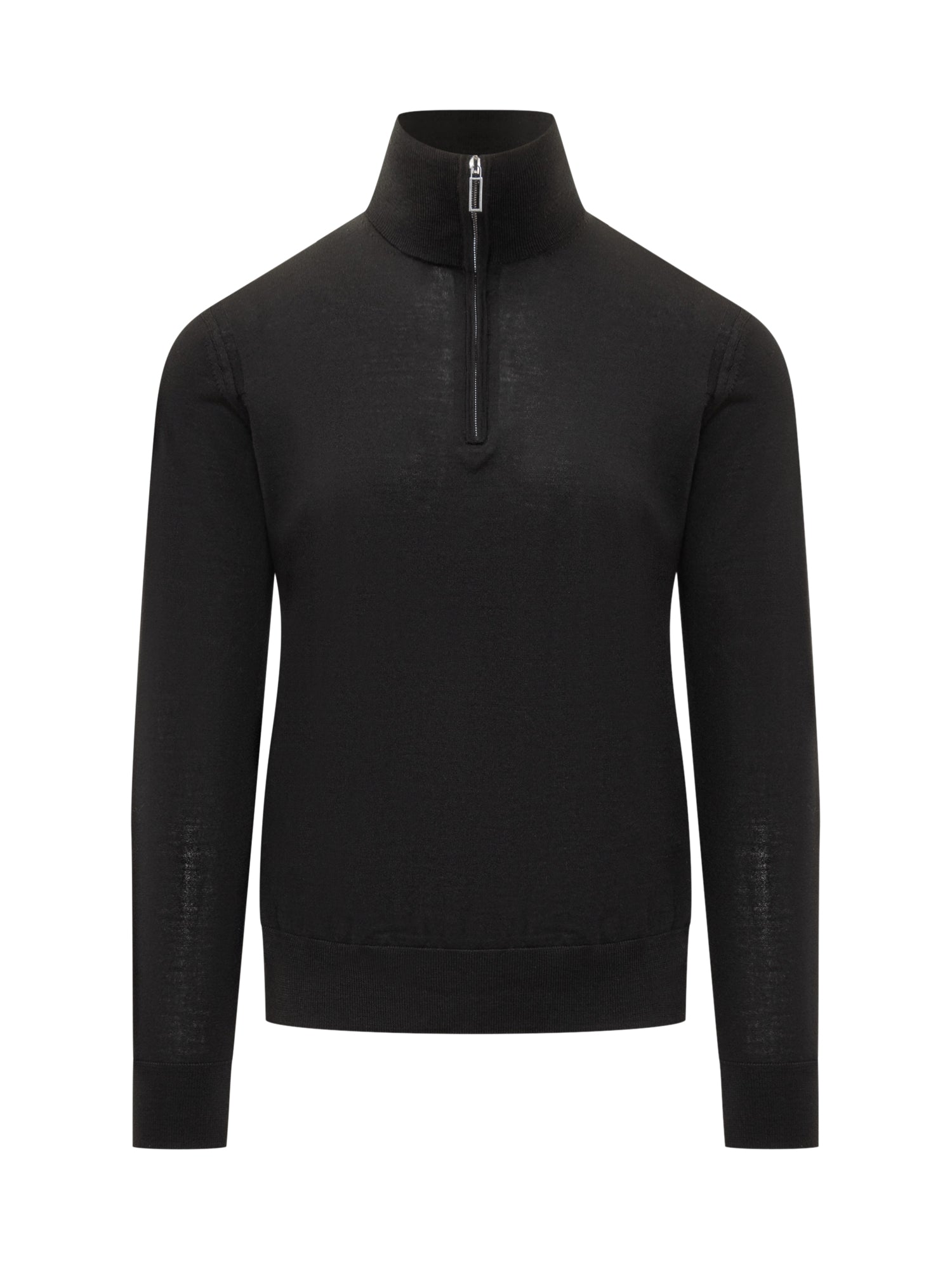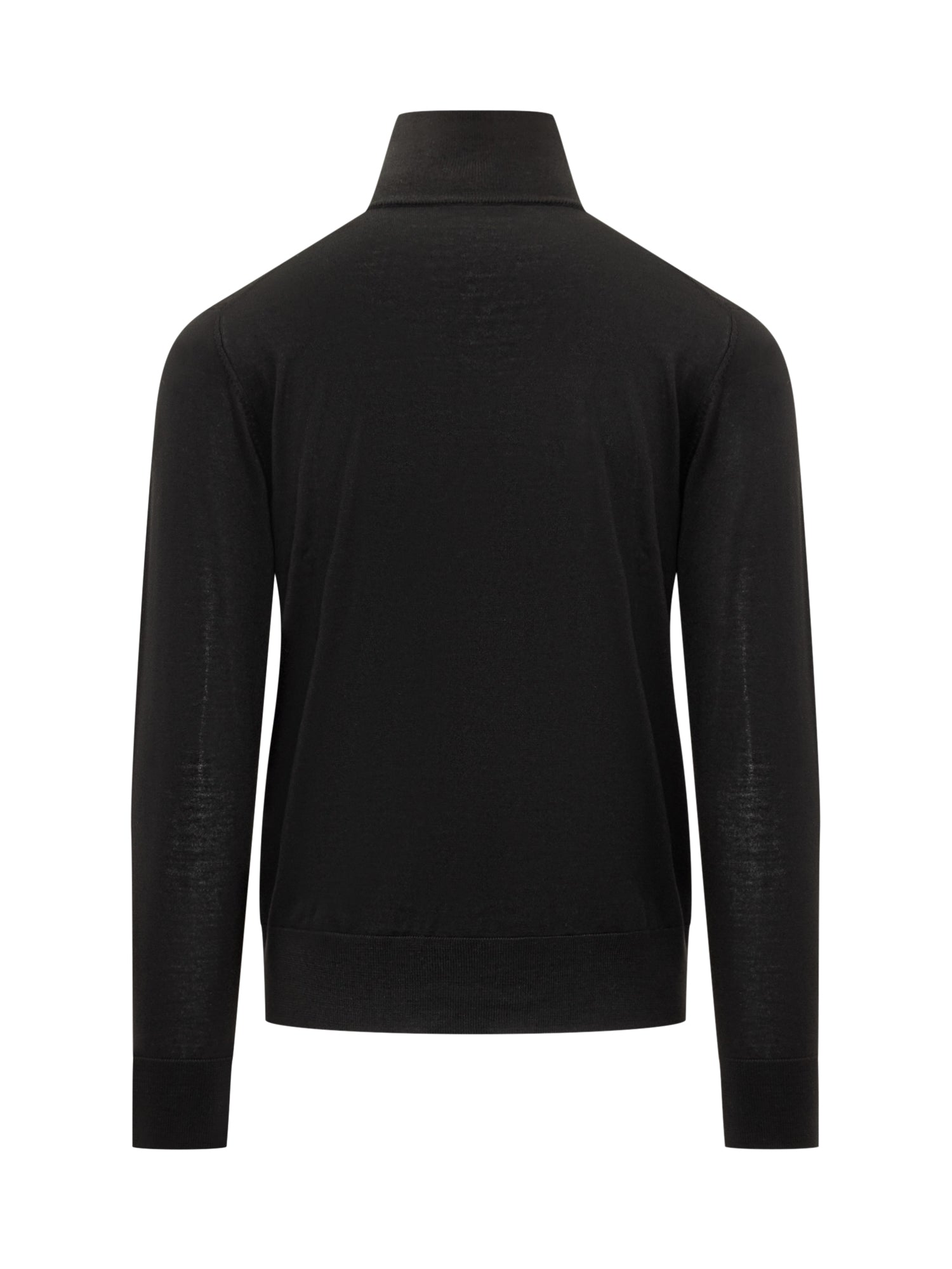 Paolo Pecora black wool sweater with high collar and half-zip closure.