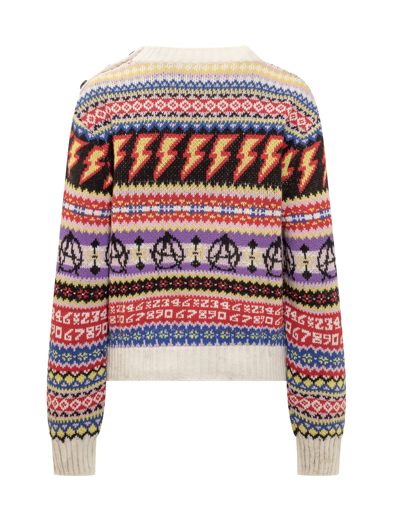 Long-sleeved sweater. Crew neck. Ribbed collar, hem and cuffs. Multicolored jacquard pattern.