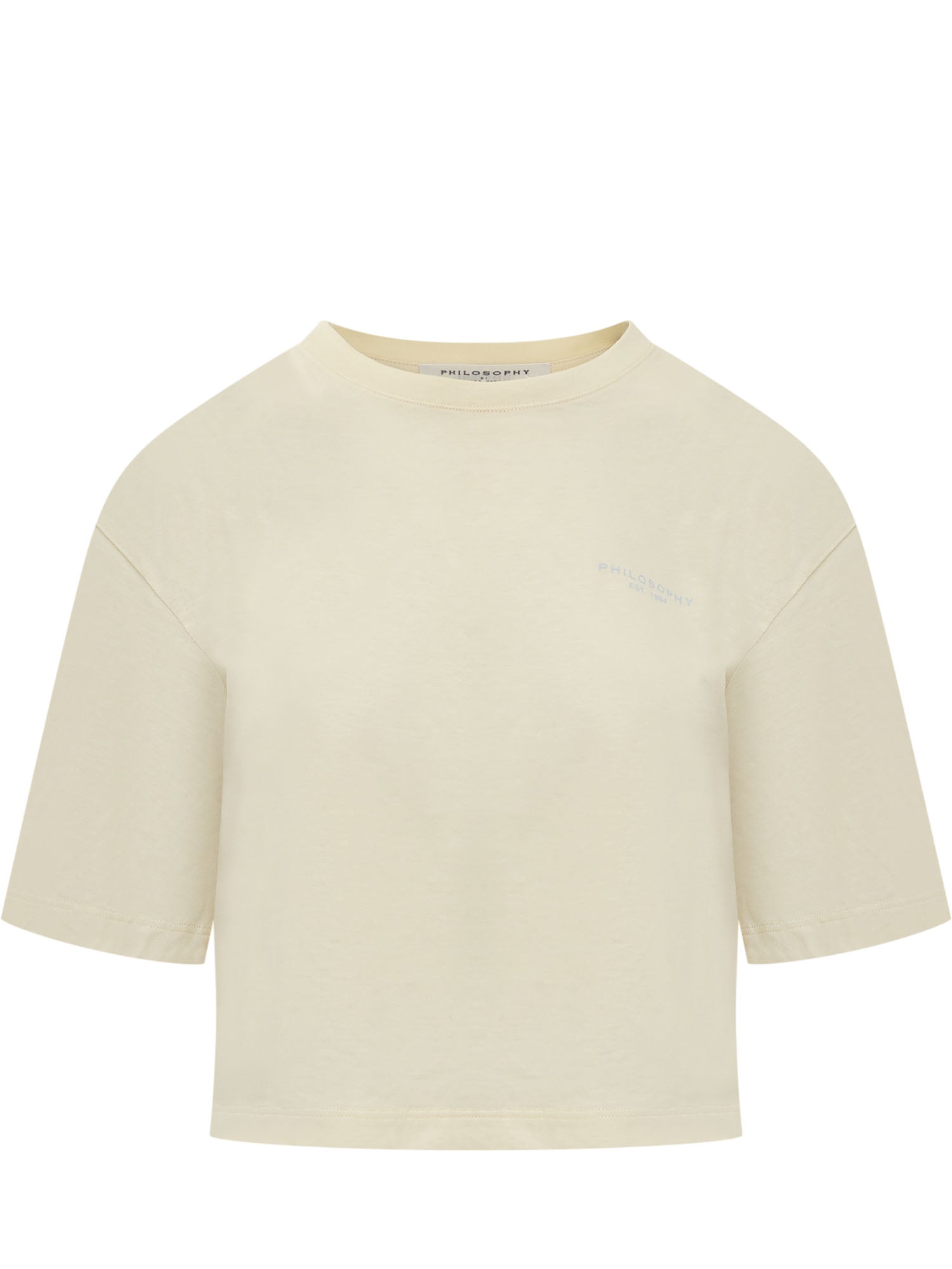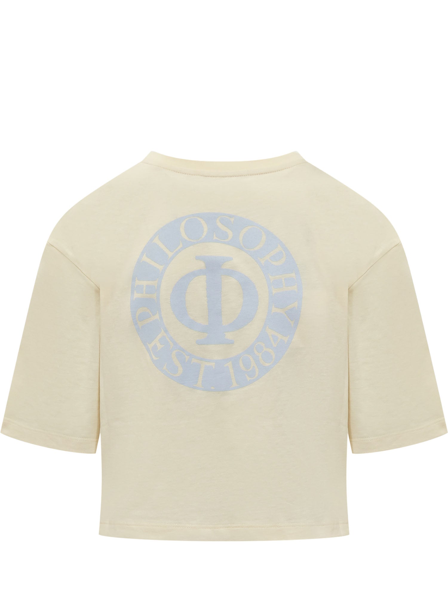 Short-sleeved cropped t-shirt. Crew neck. Ribbed hems. Logo printed on the front. Logo printed on the back.