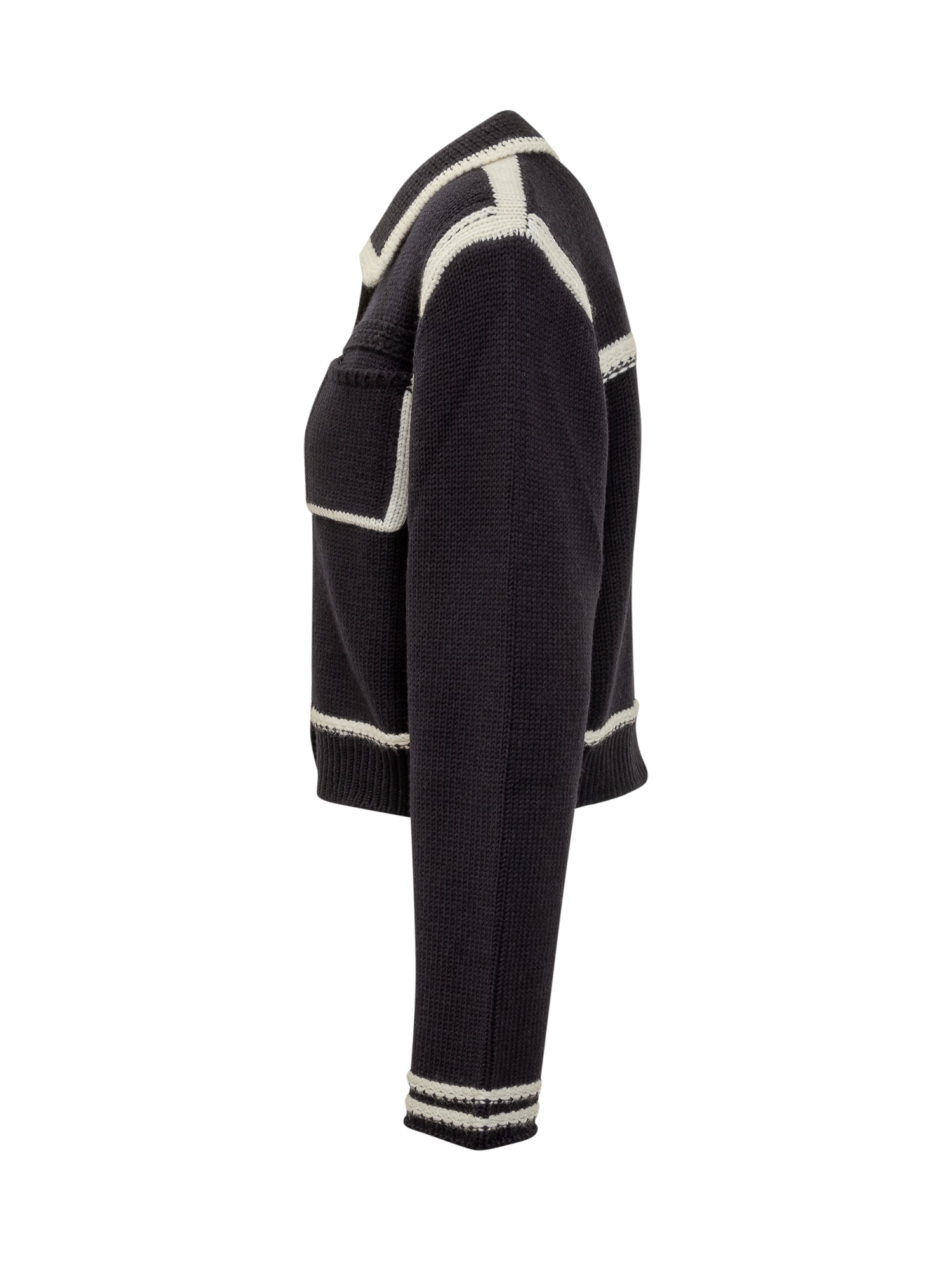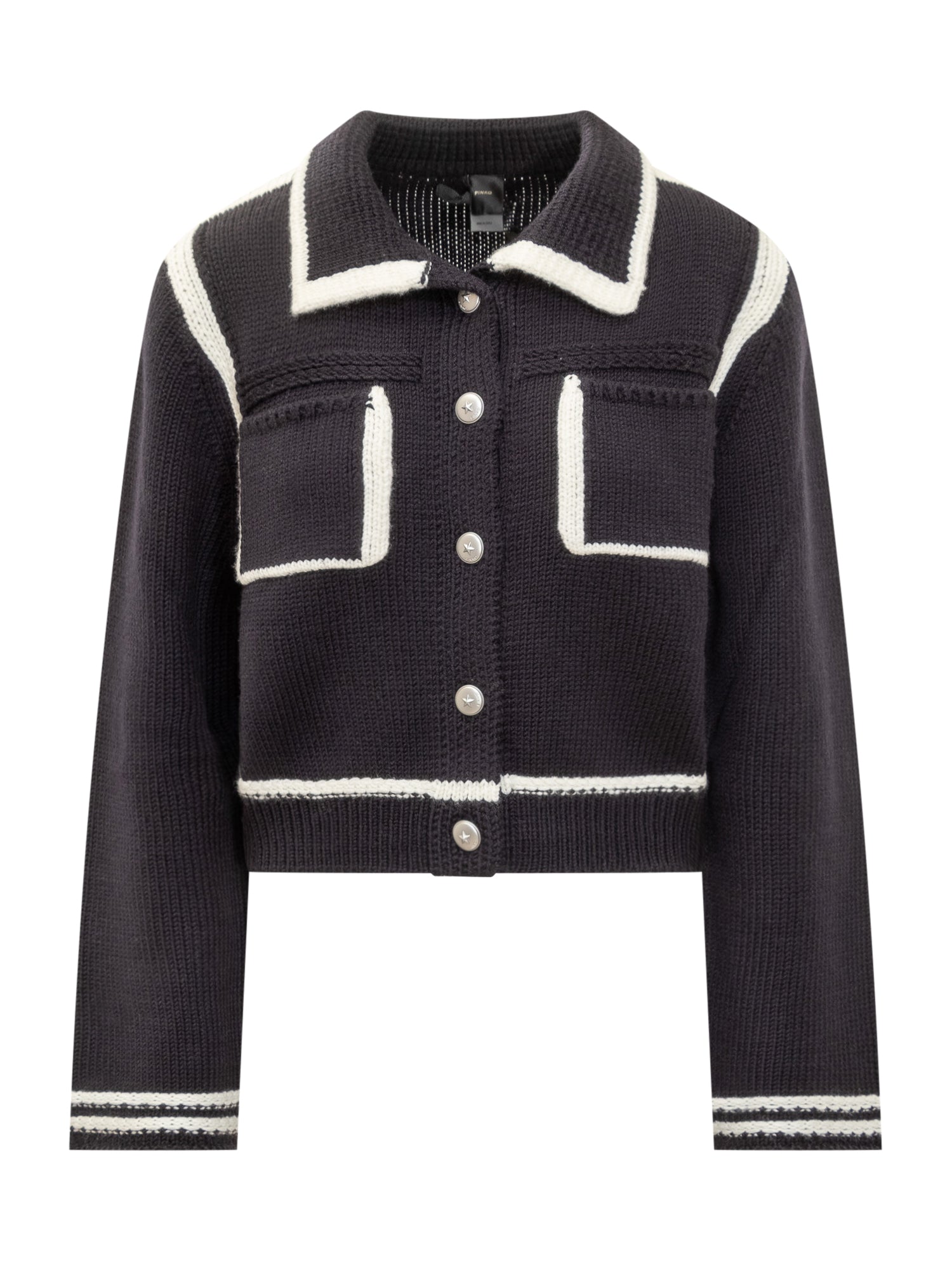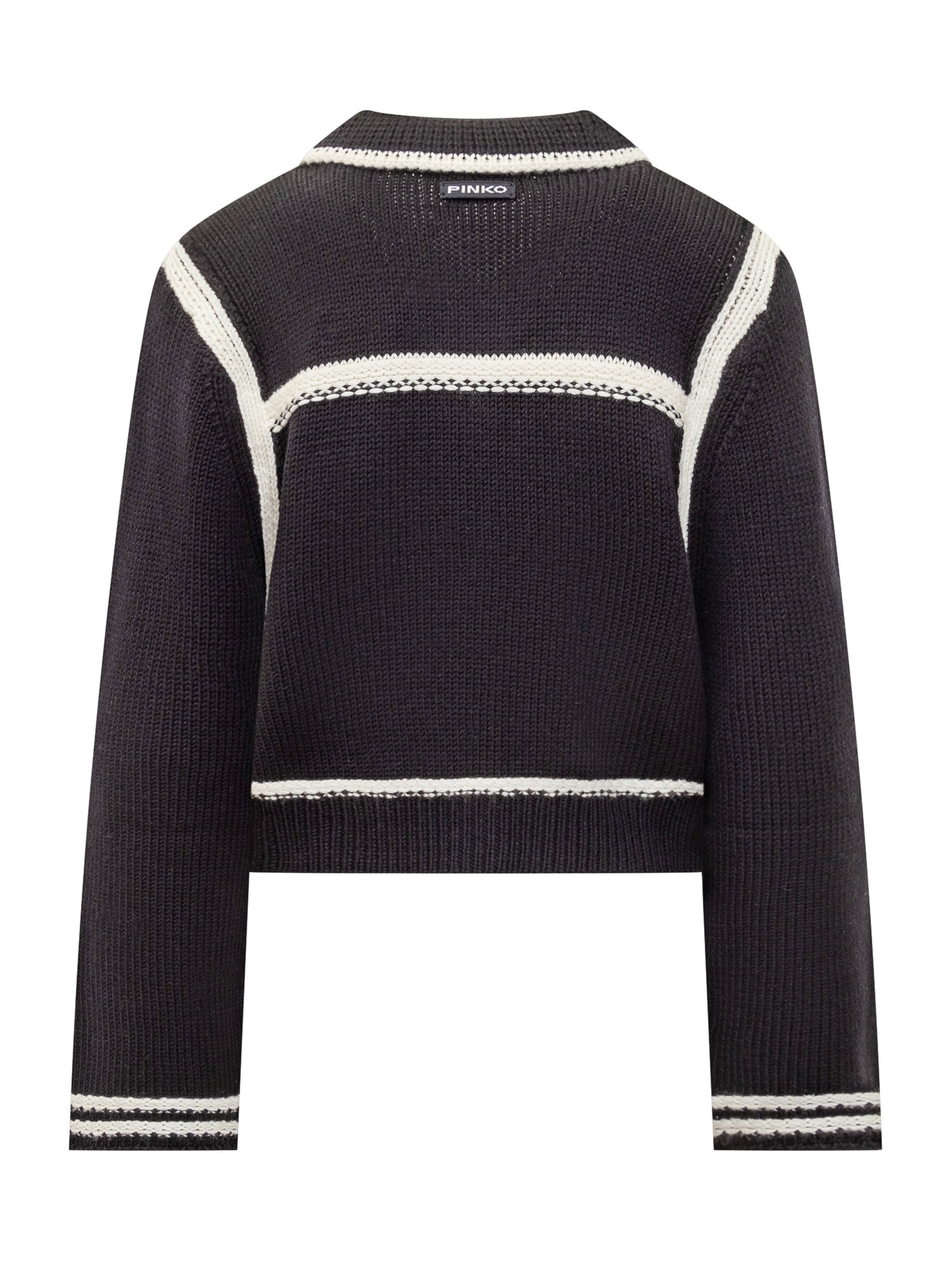 Pinko Sulcis cardigan in black knit with white contrast trims.