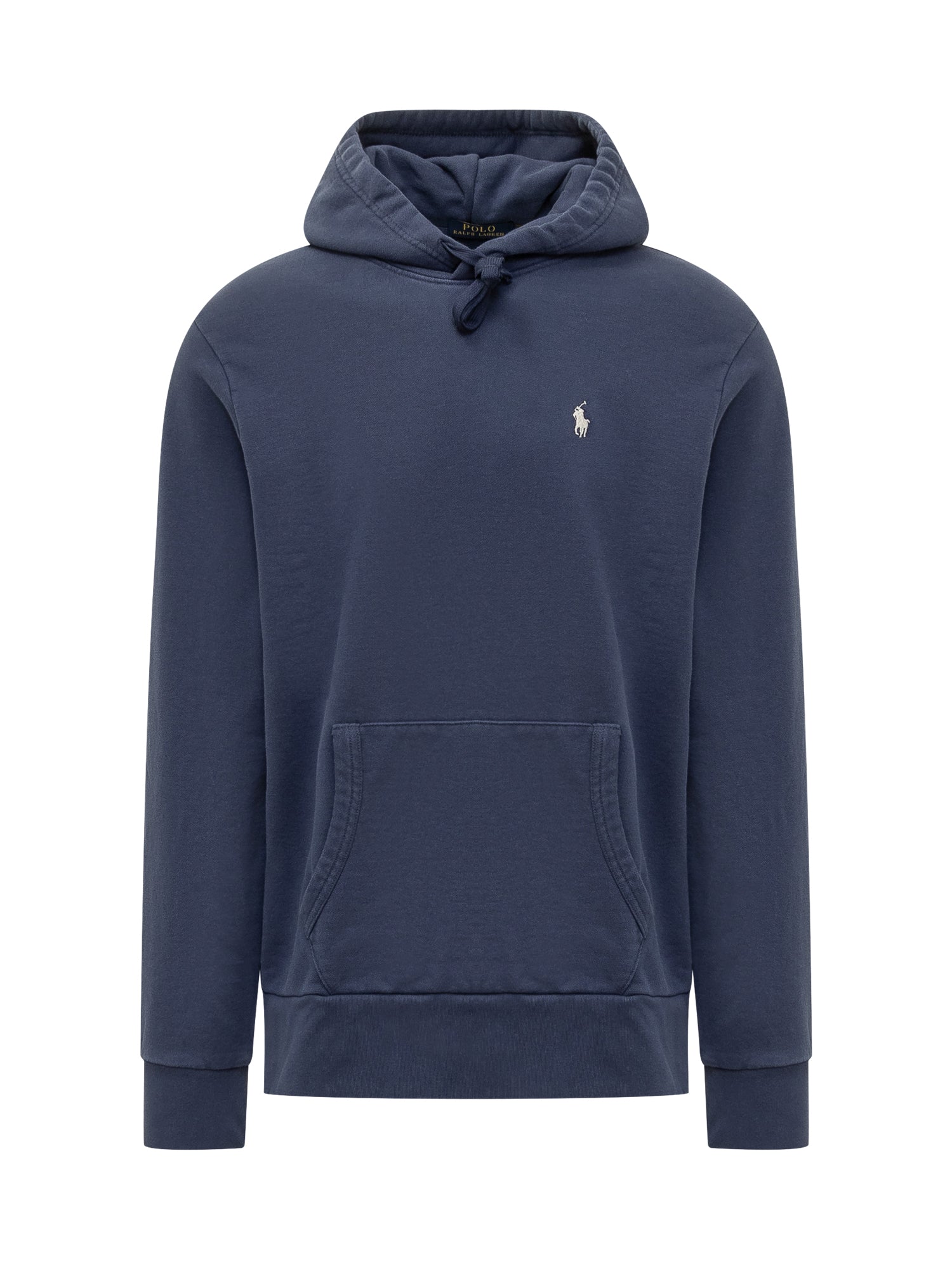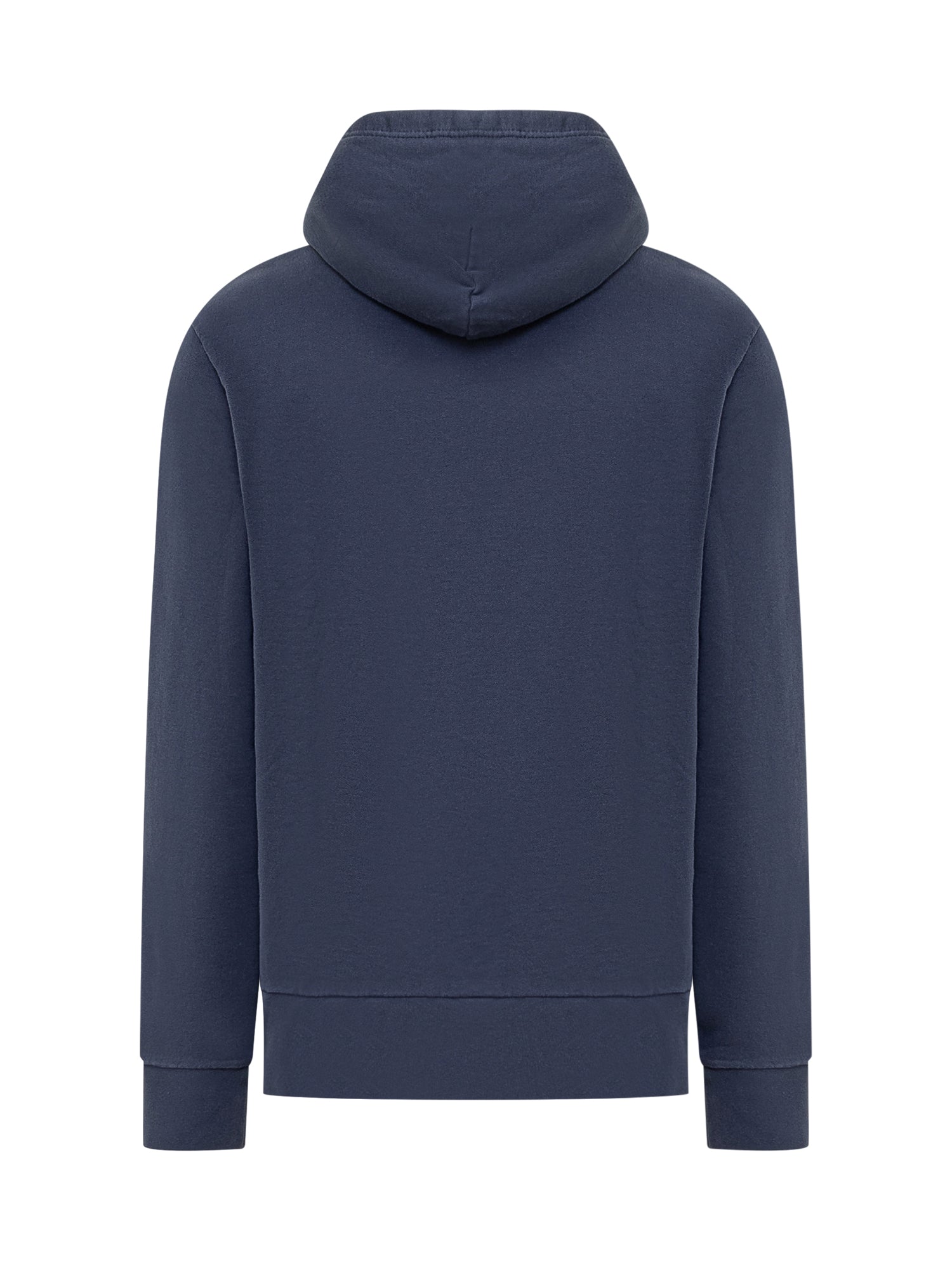 Blue cotton sweatshirt. Drawstring hood. Maxi front pocket. Embroidered logo.