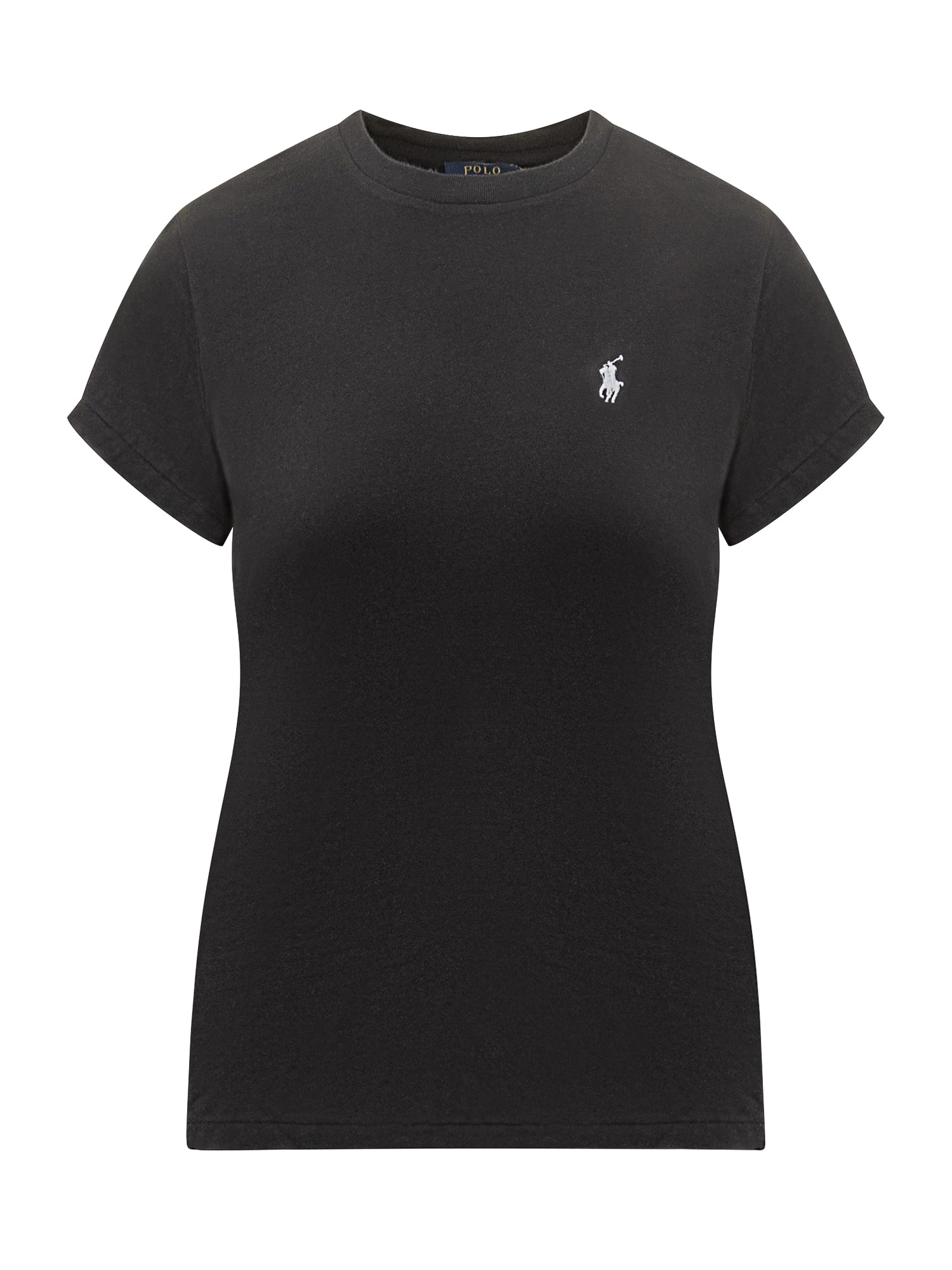 Women's black cotton T-shirt by Polo Ralph Lauren, featuring a crew neck and white embroidered logo on the chest.