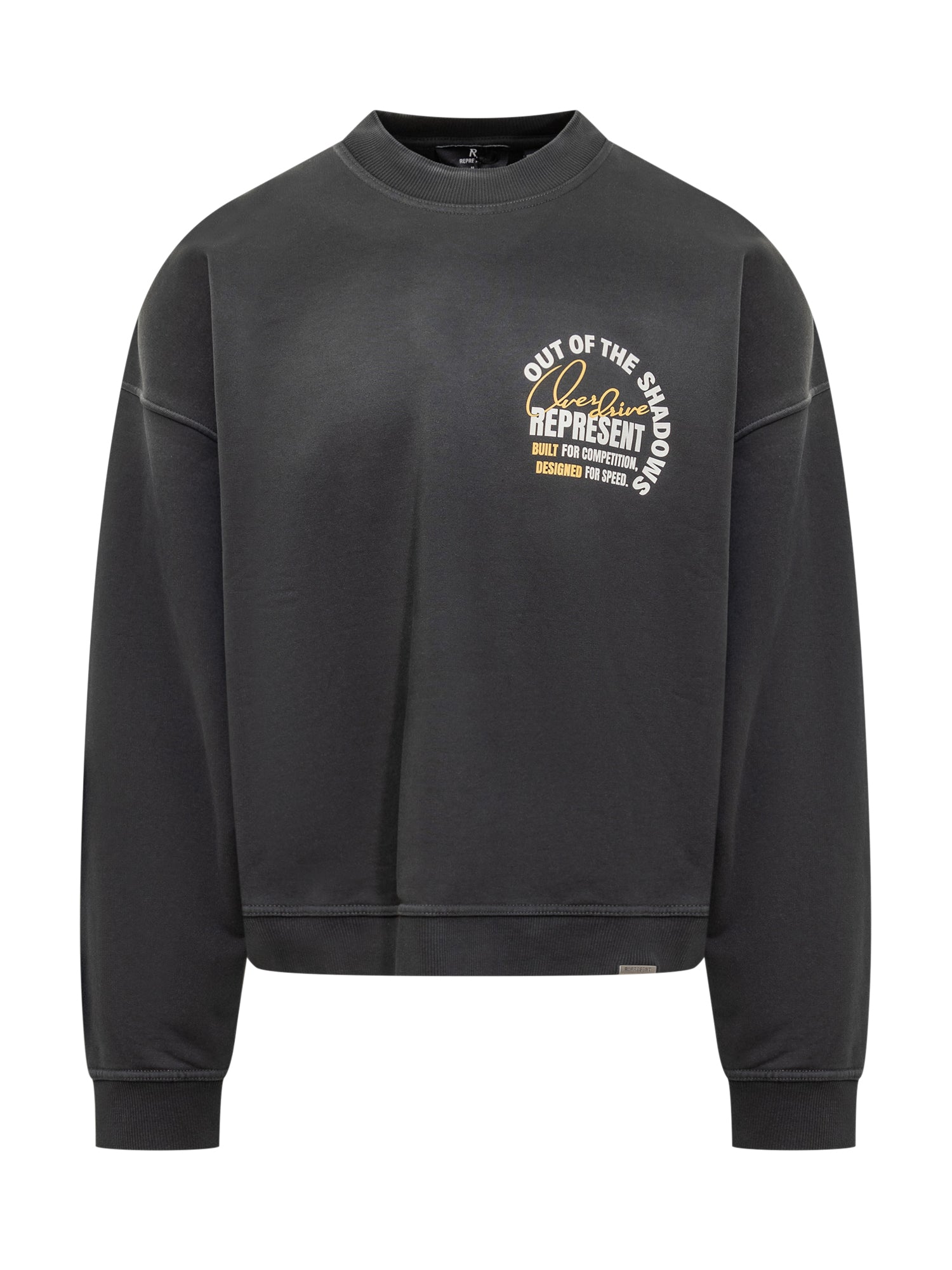 Black cotton sweatshirt. Crew neck. Front and back print.