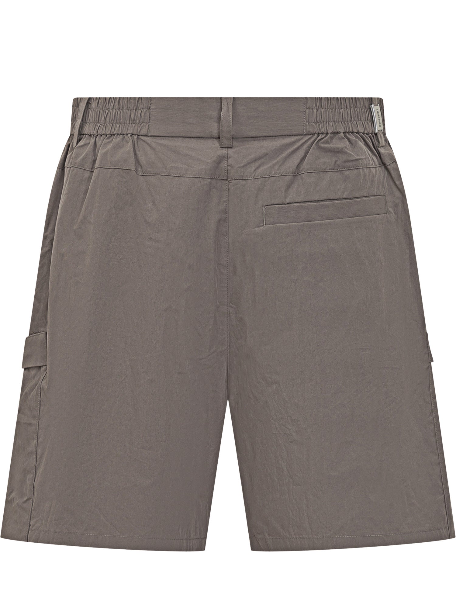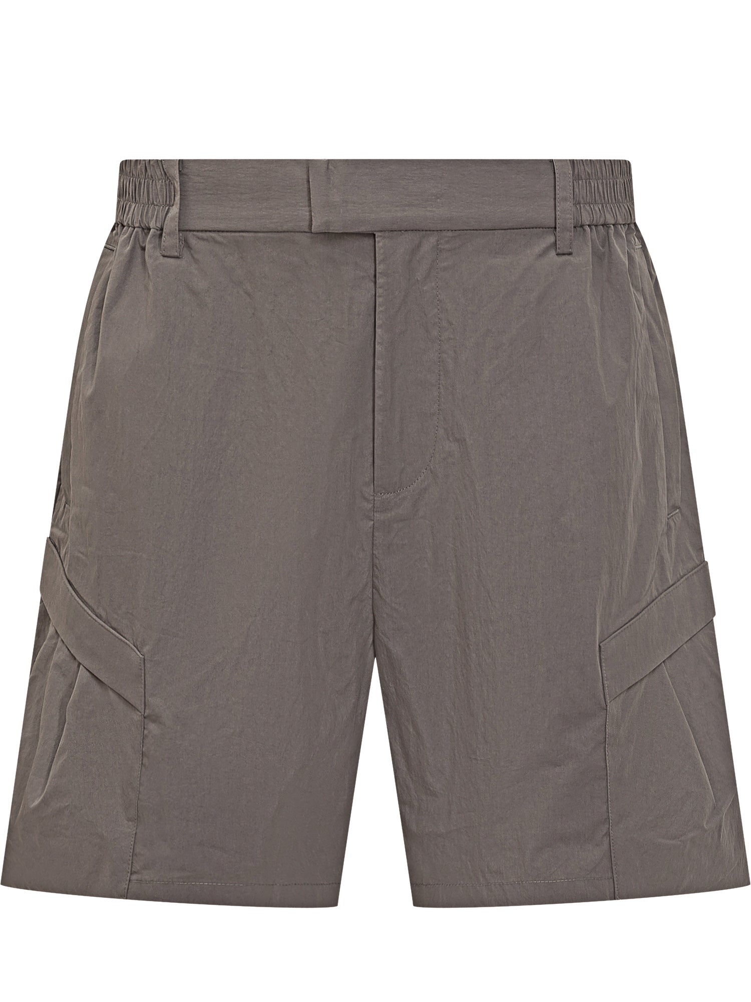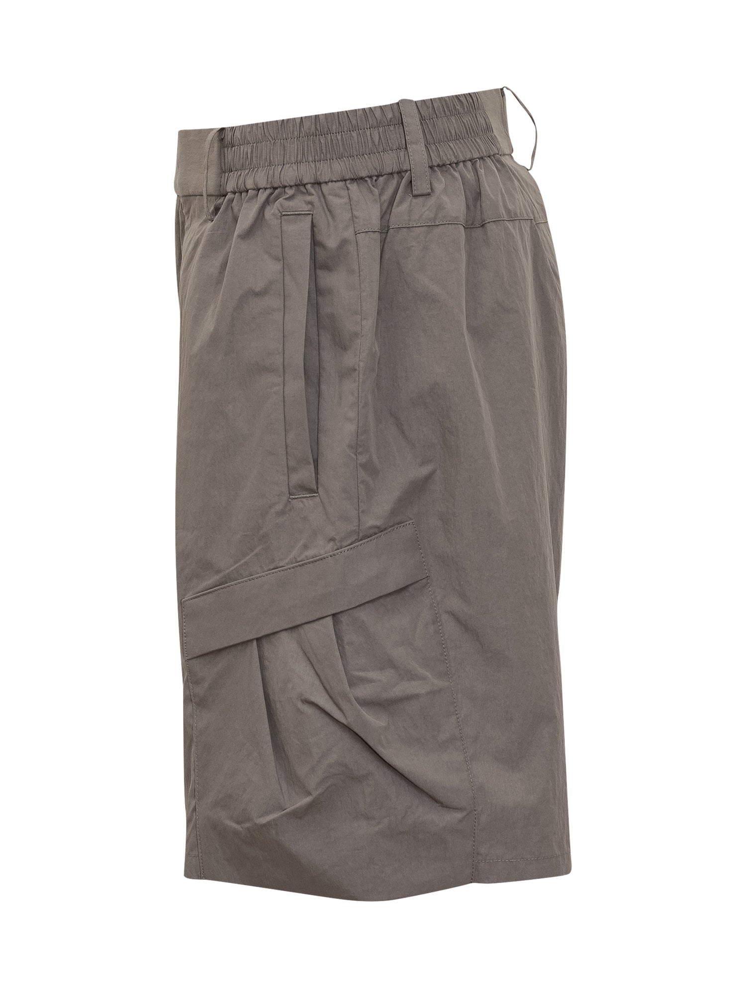 Elastic waistband. Closure with hooks, zip and button. Flush pockets on the sides and back. Cargo pockets on the hips.