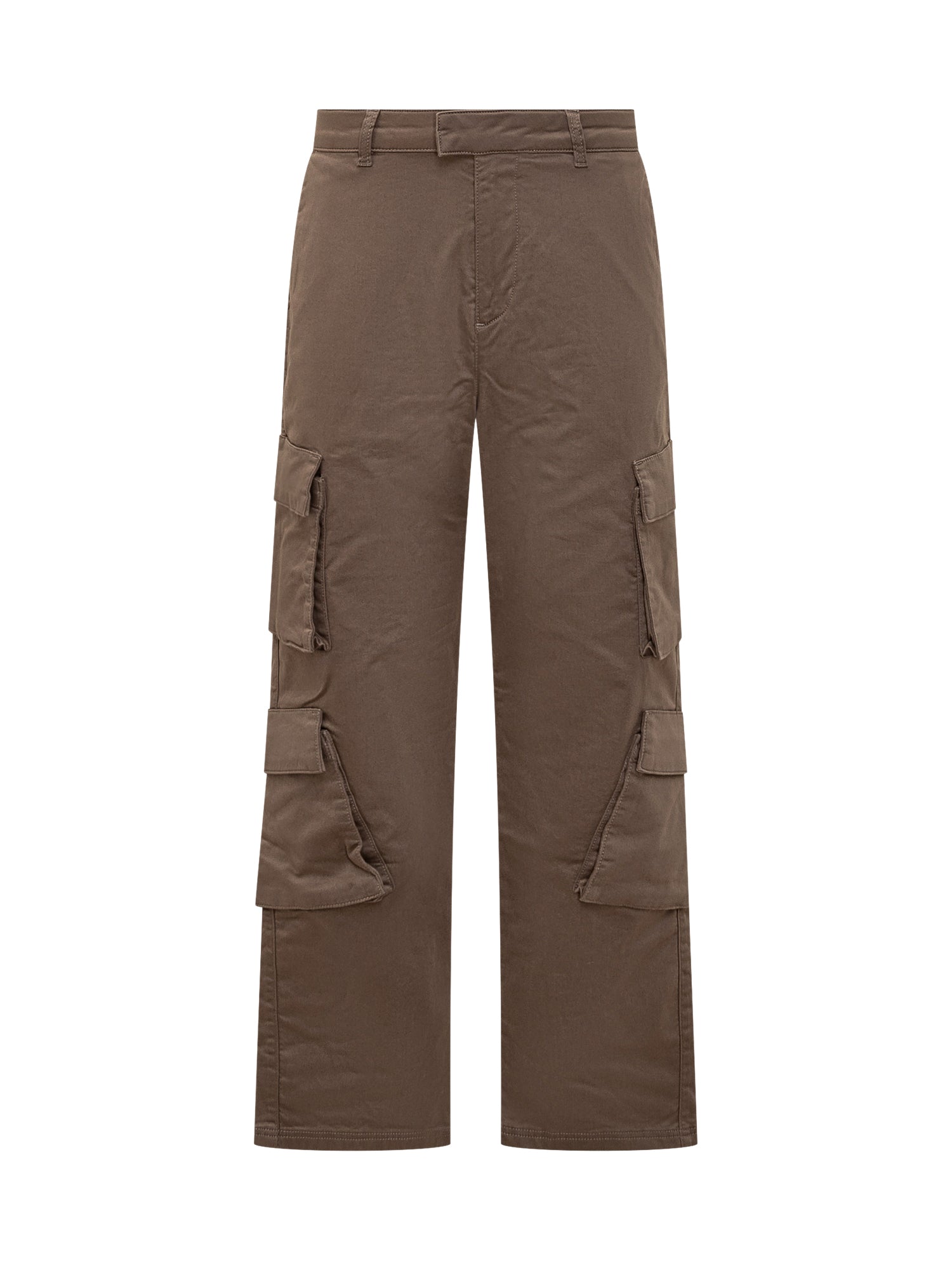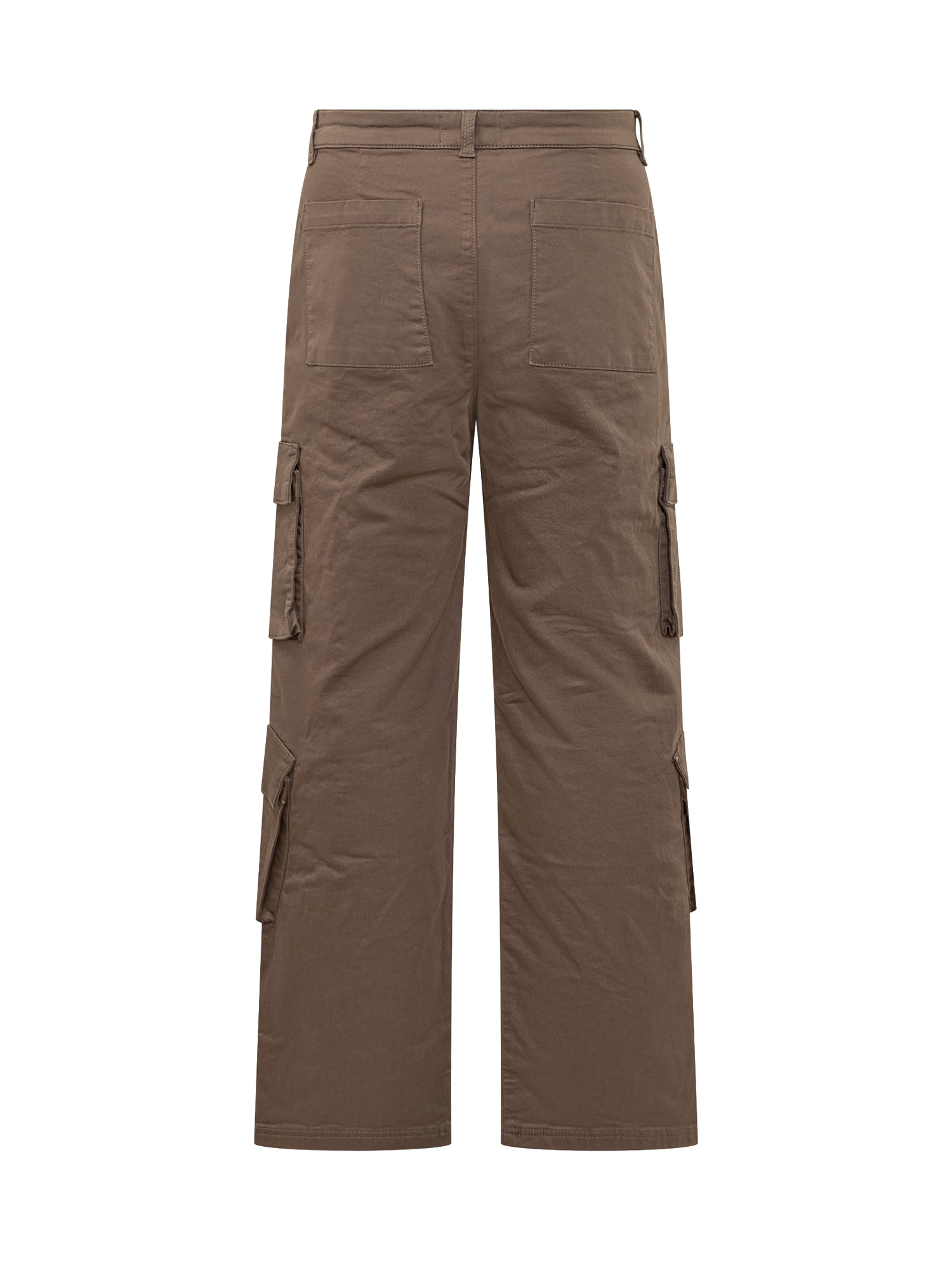Brown cargo pants by Represent with straight fit and multiple patch pockets.