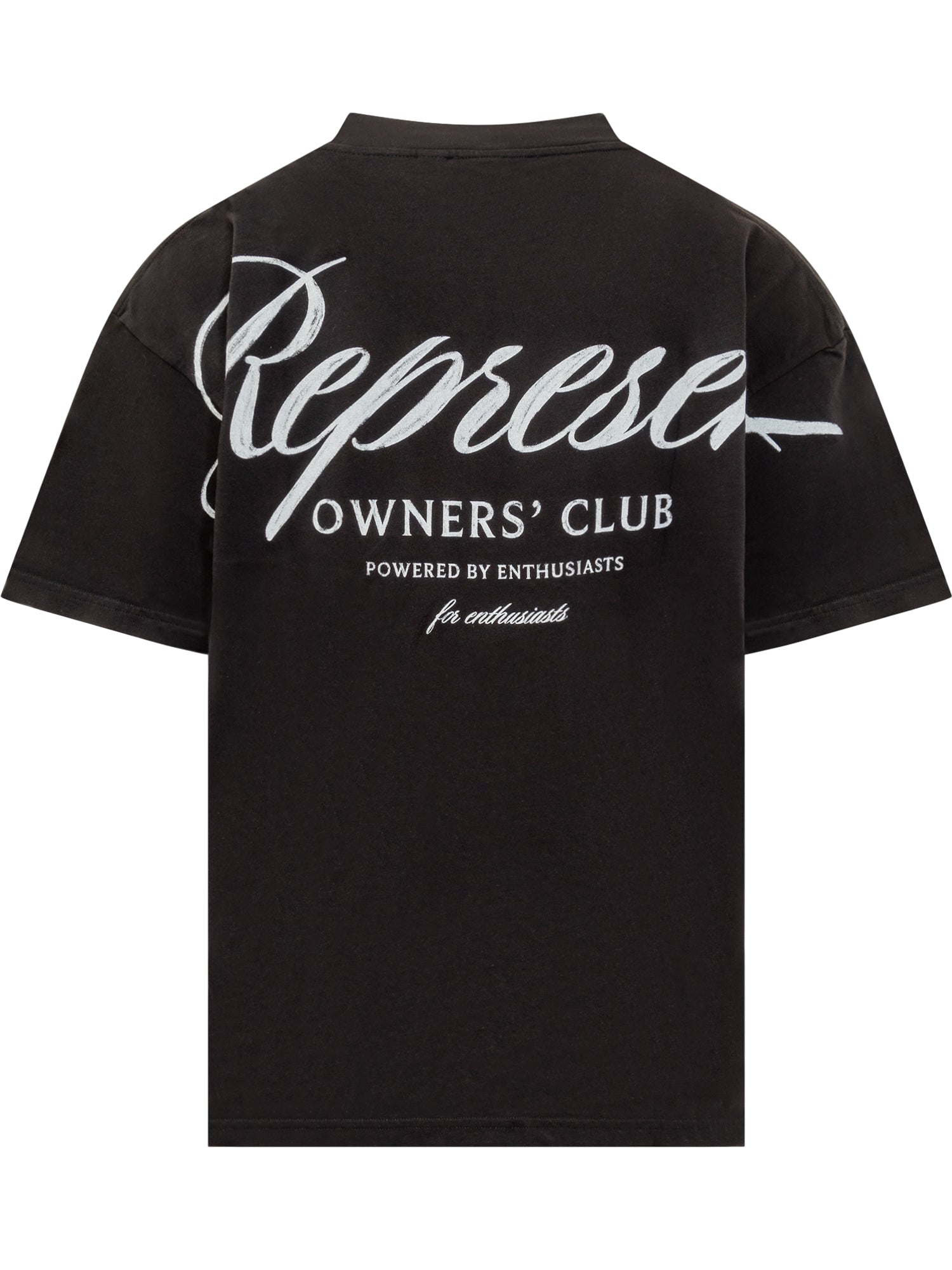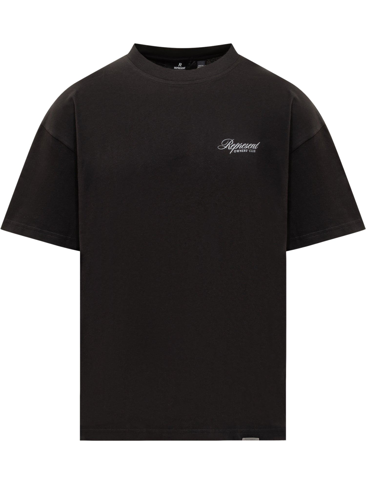 Represent black cotton T-shirt with relaxed fit and embroidered chest logo.