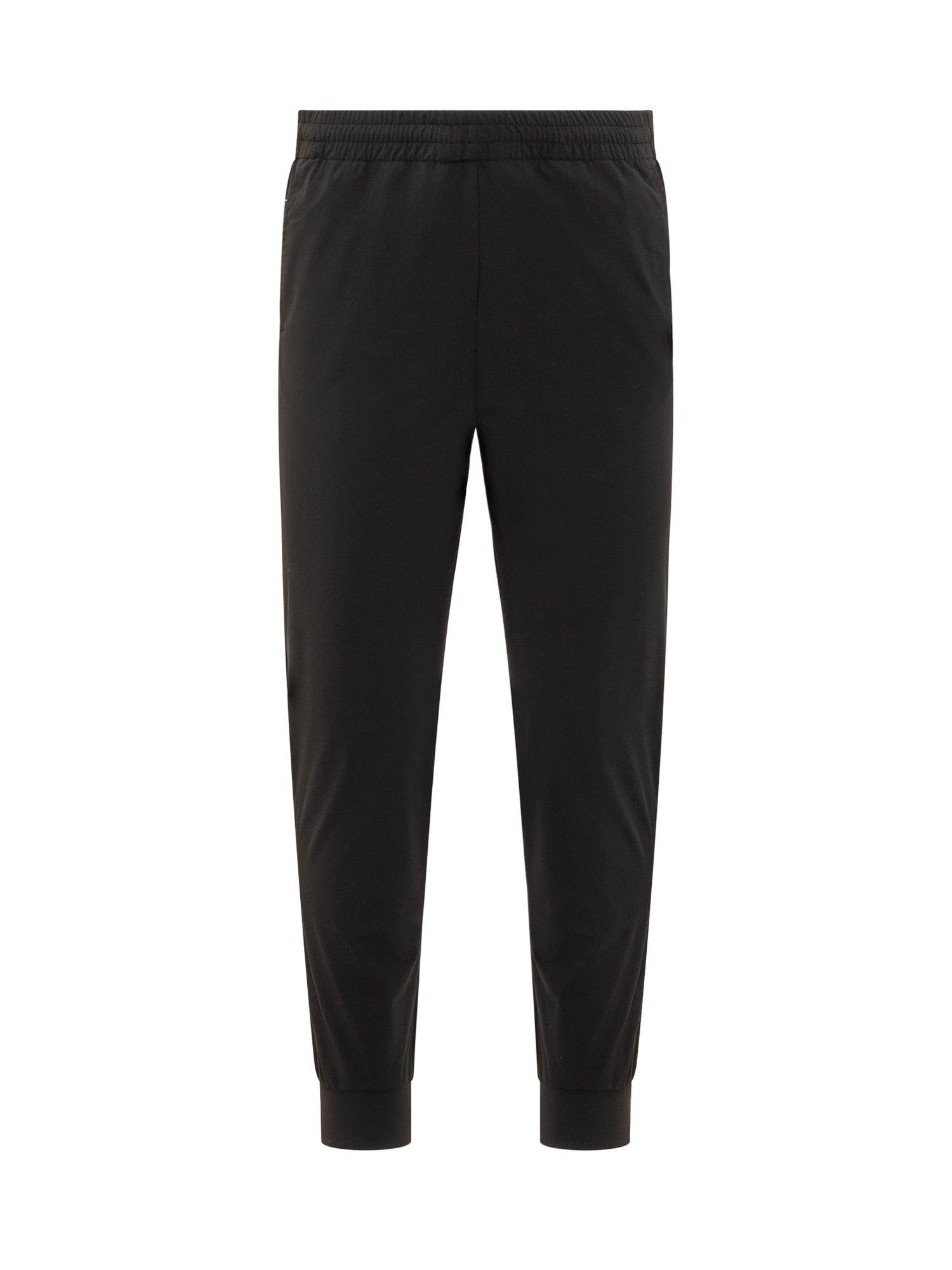 Jogger pants. Elasticated waistband with drawstring. Elasticized band bottom. Pockets on the sides. Flush pocket on the back. Black nero.