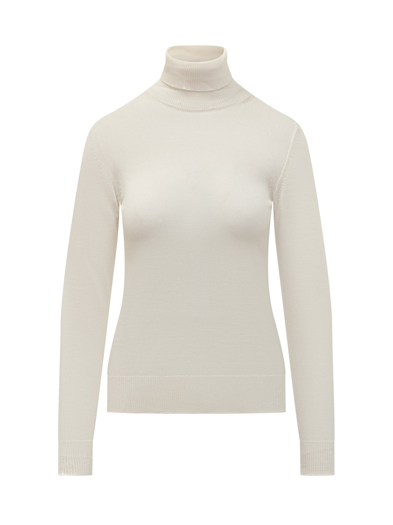 Simona Corsellini fine-knit ivory turtleneck with a slim, refined fit.