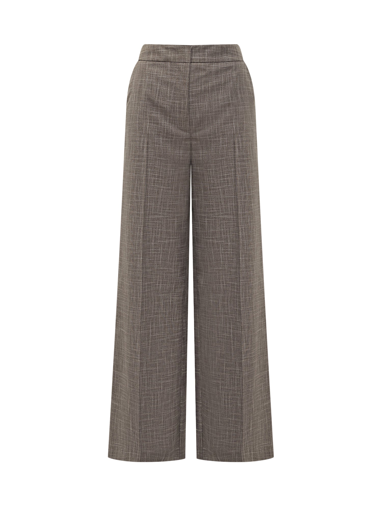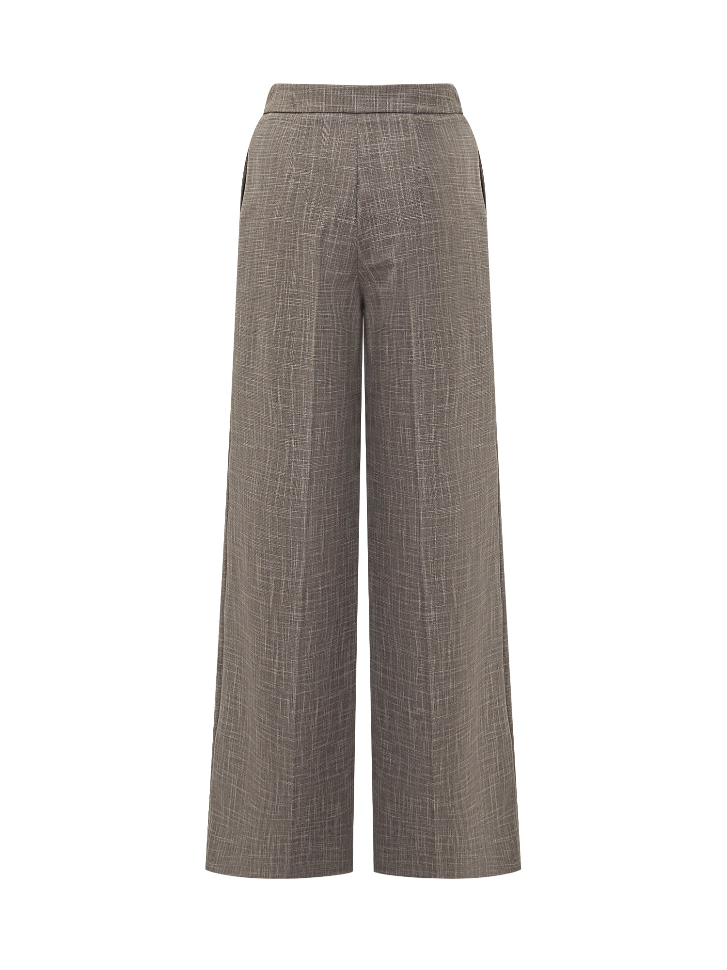 Wide-leg trousers with beige pinstripe pattern, high waist and refined cut.