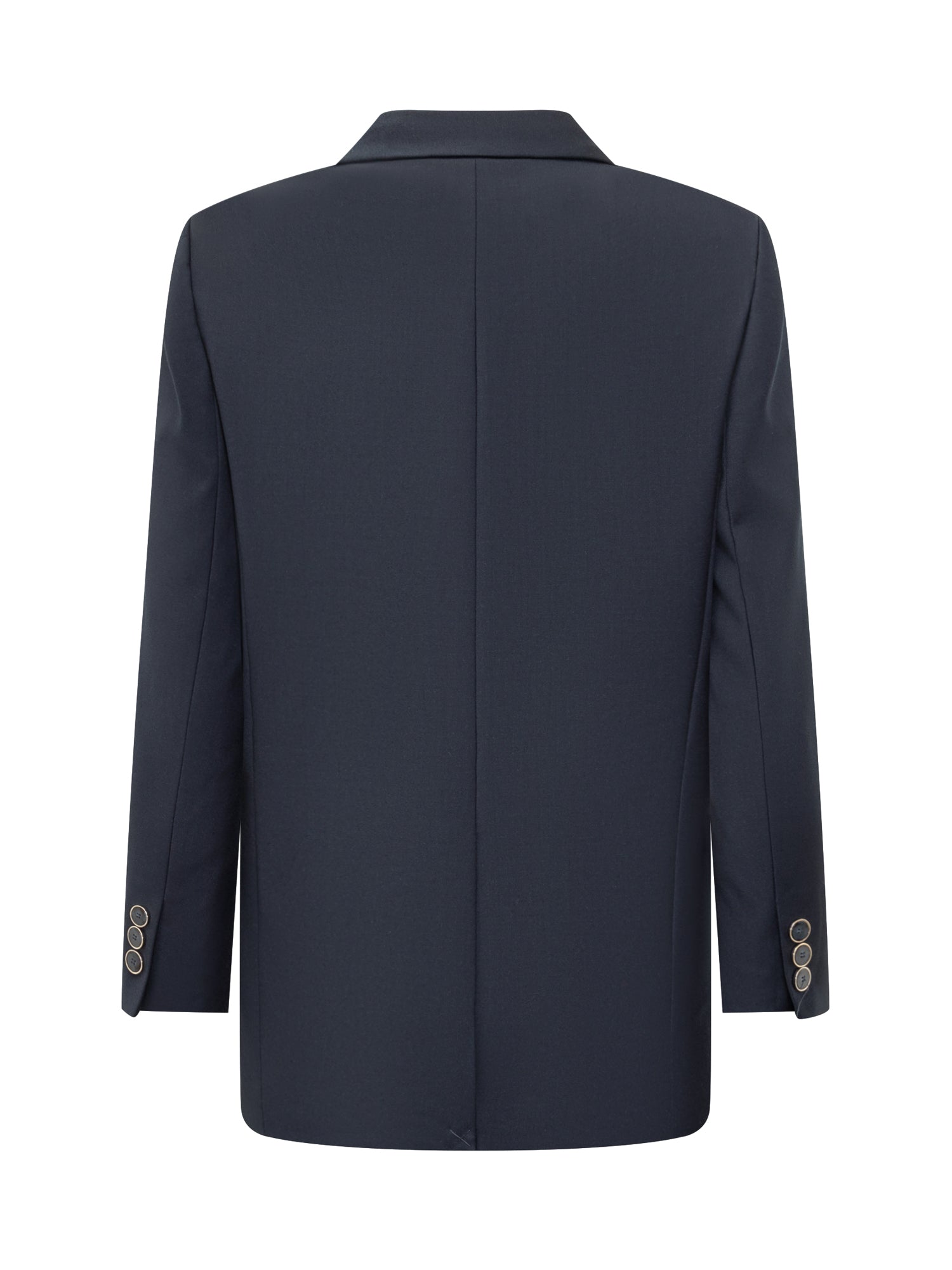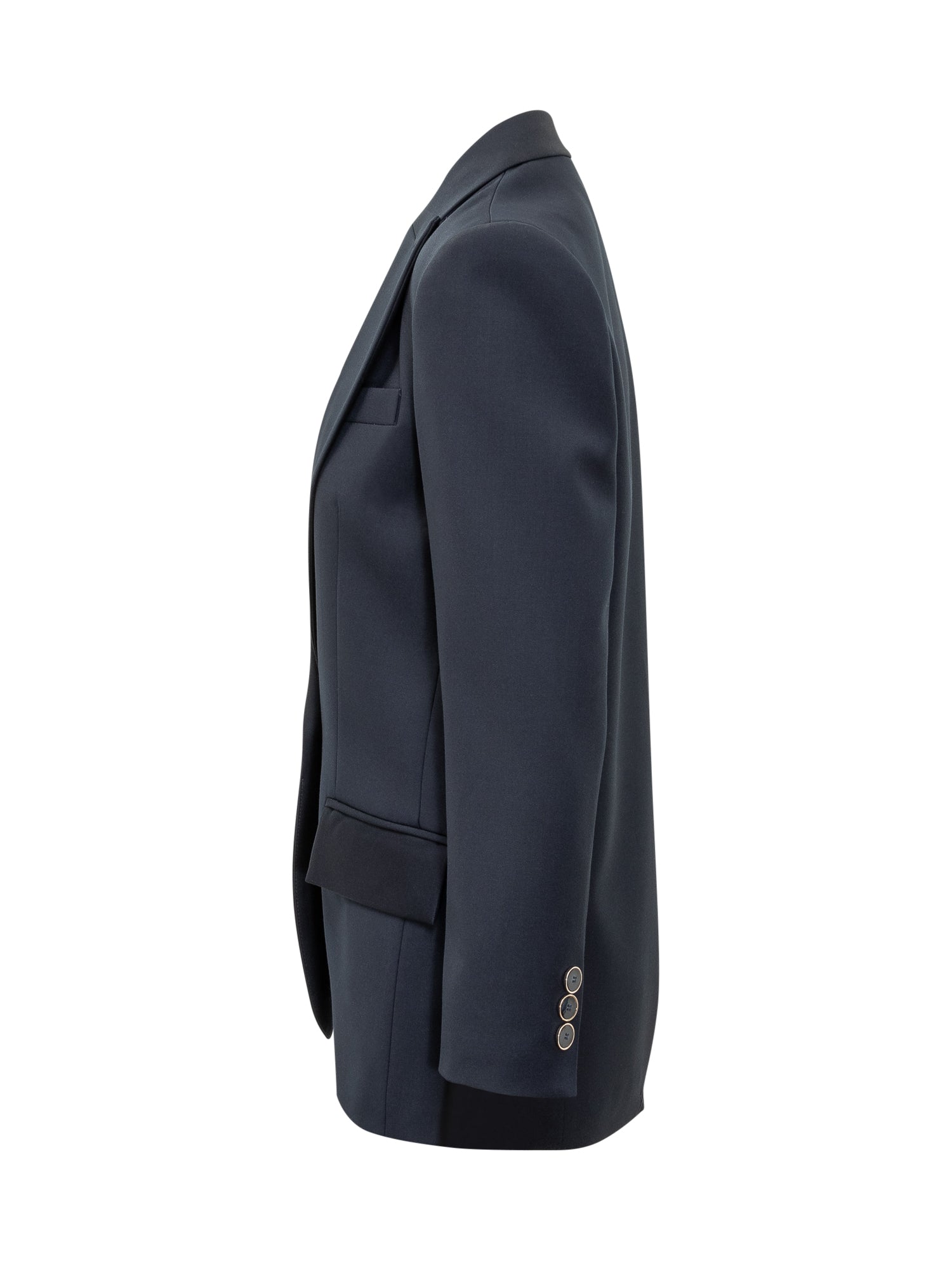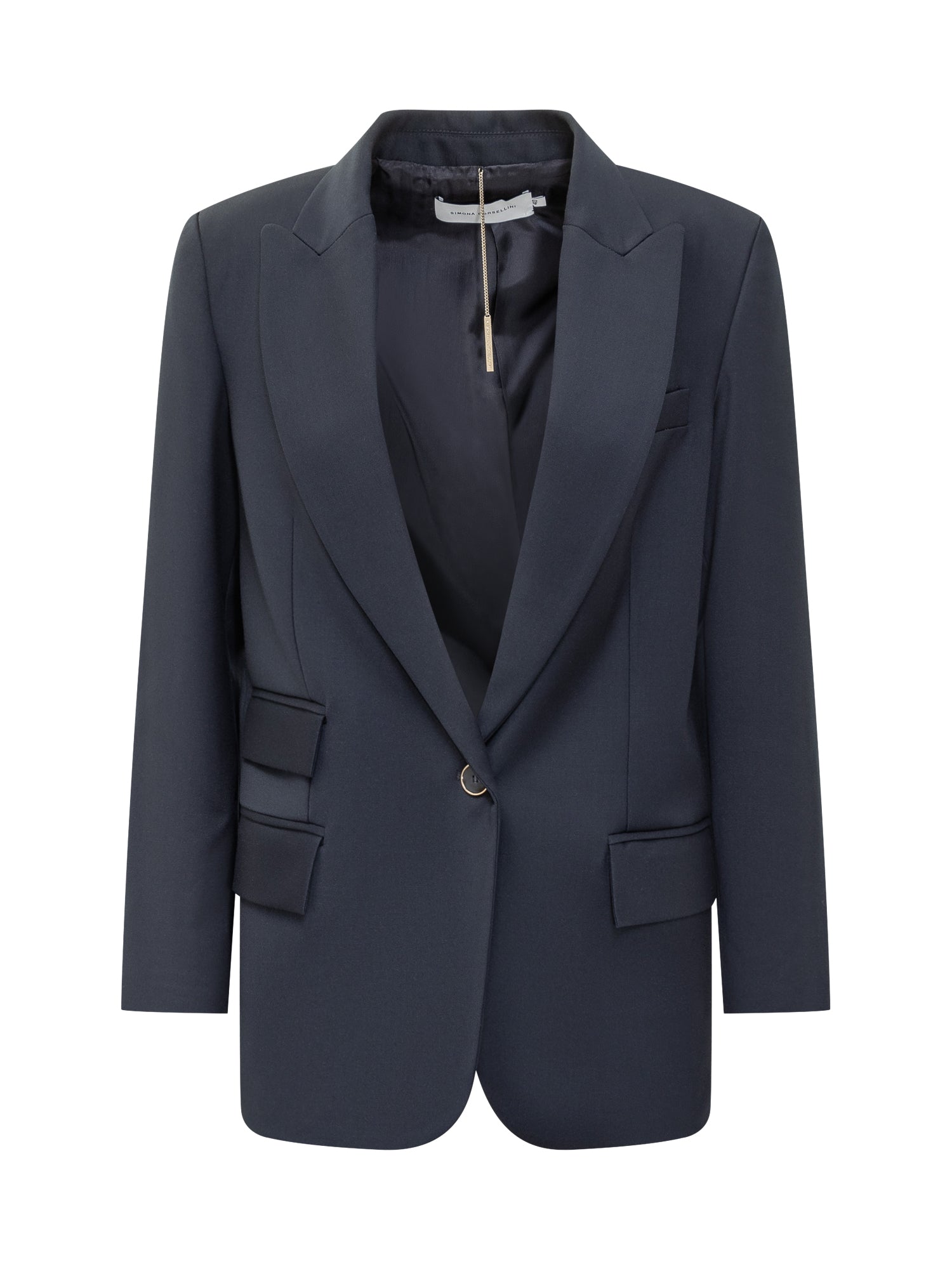 Simona Corsellini dark blue blazer with peak lapels and multi-pocket details.