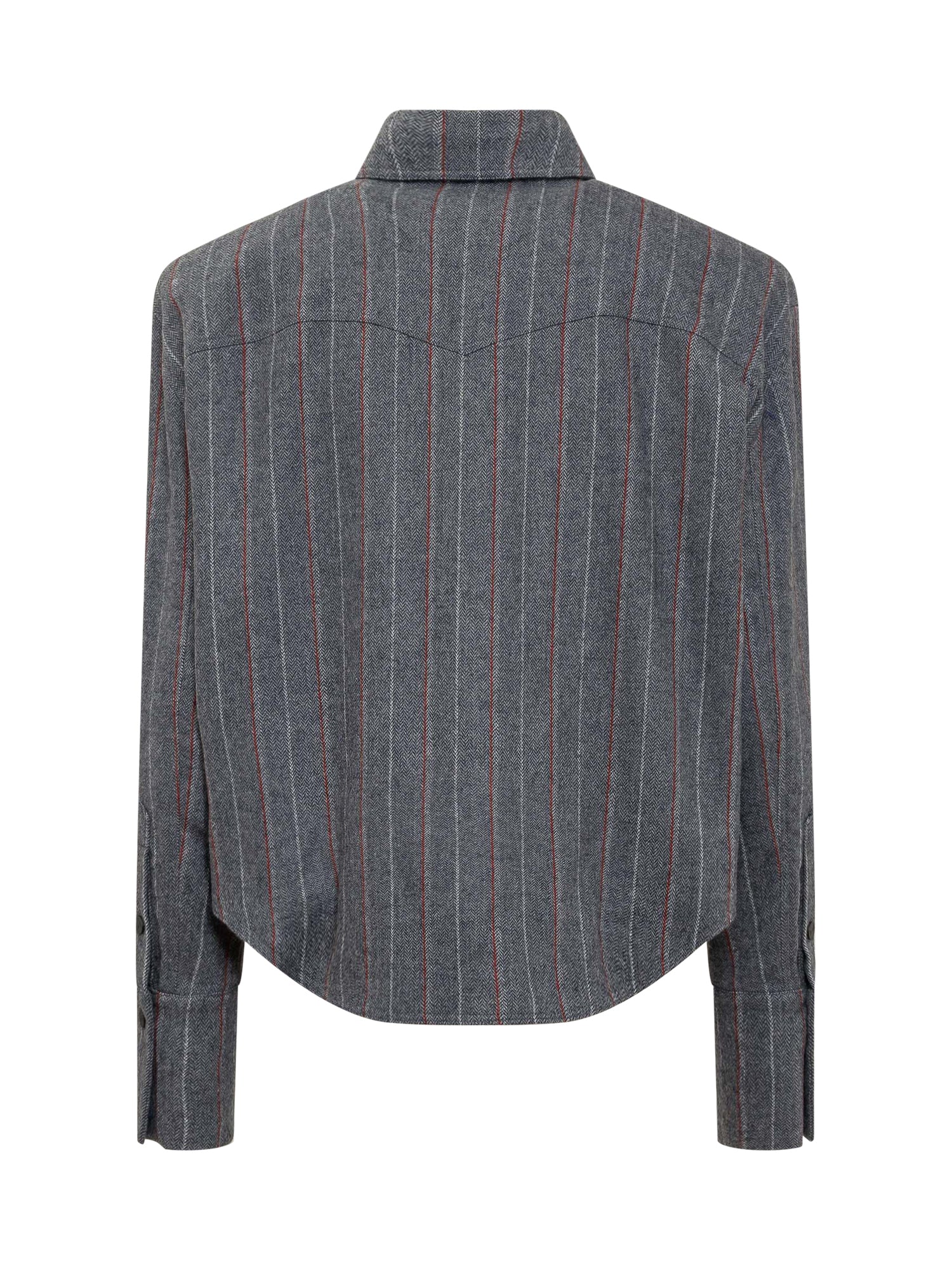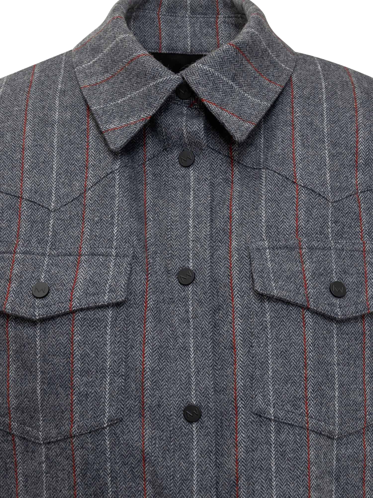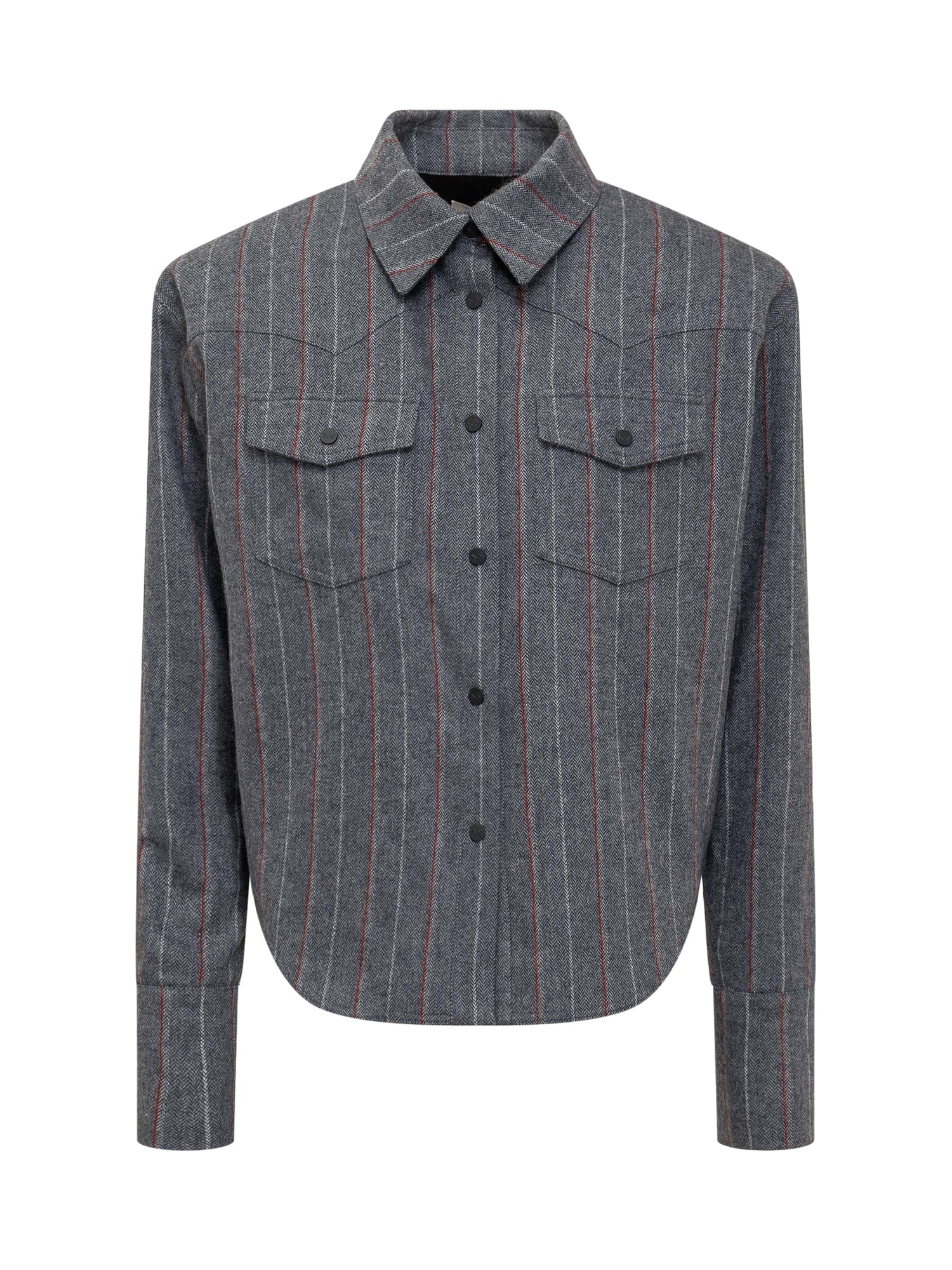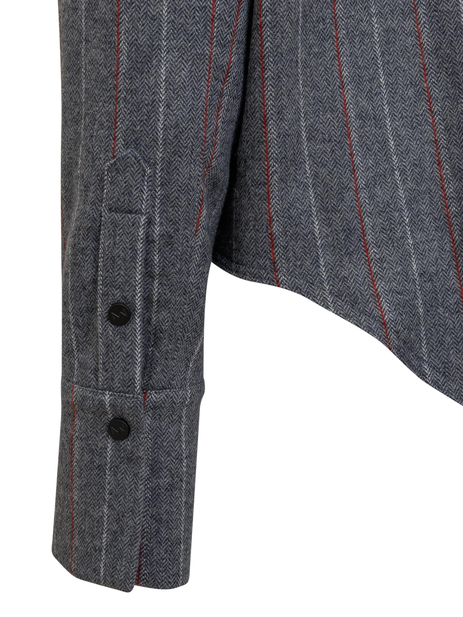 Long sleeves shirt. Front buttons closure. Striped pattern. Pockets with buttons on the chest. Buttons at the wrists.