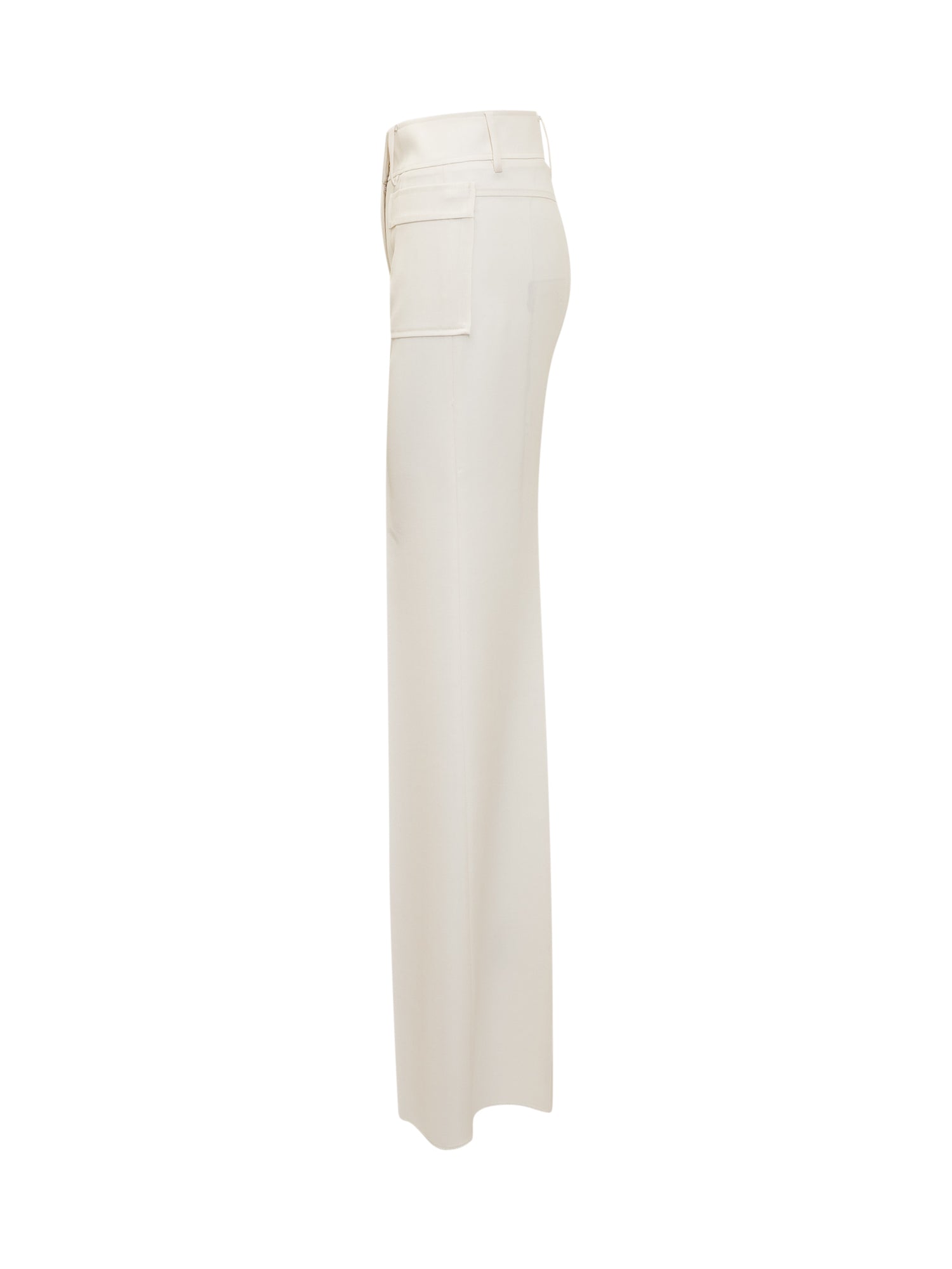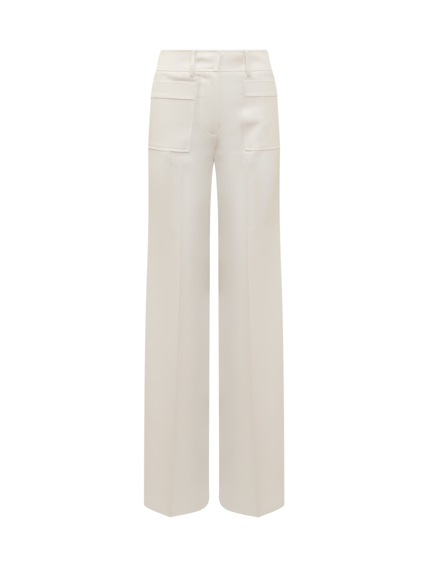 Long pants. Closure with buttons and zip. Two side pockets. Belt loops.