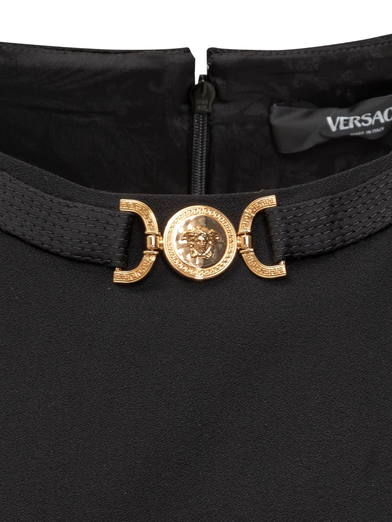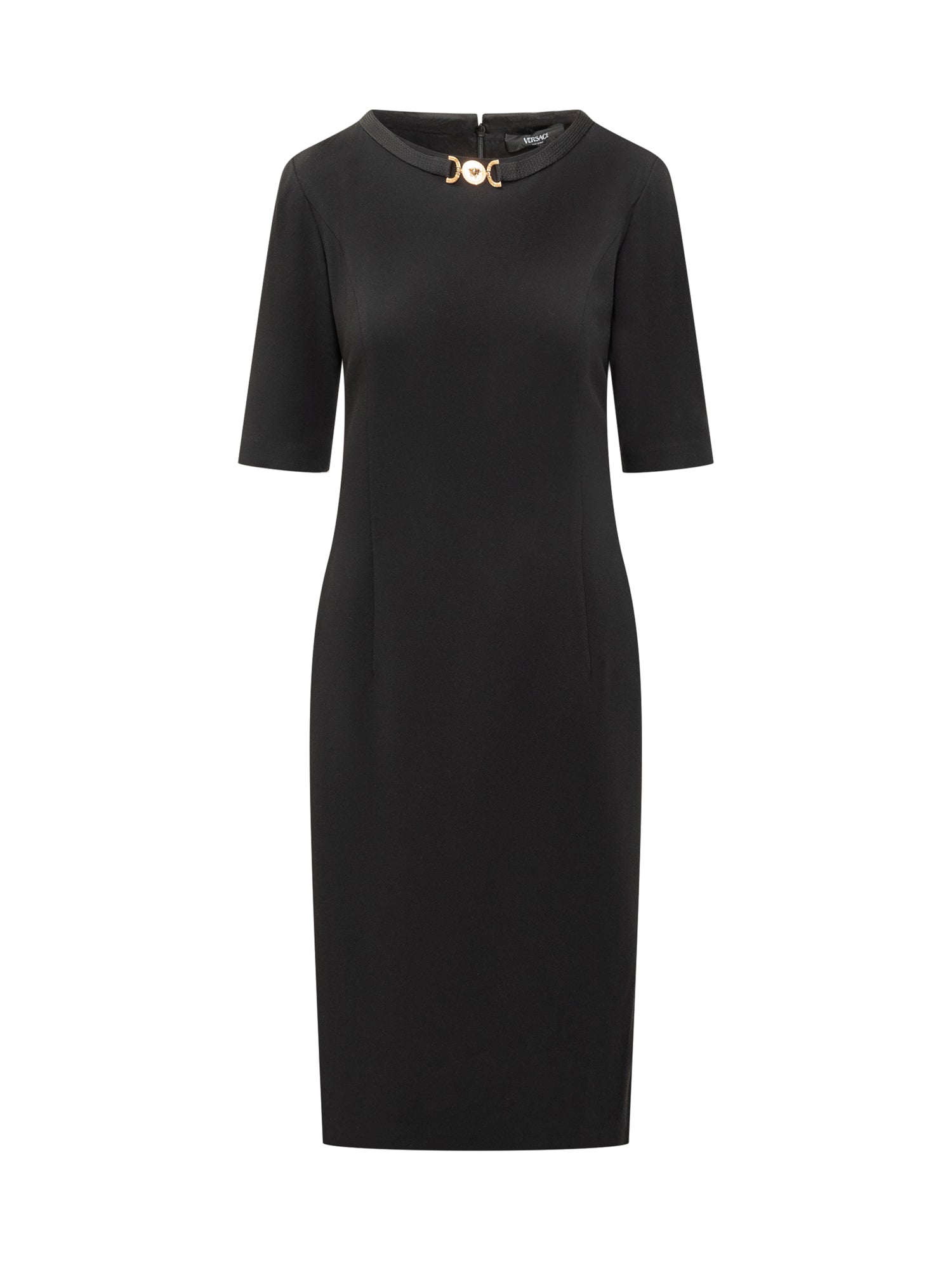 Short-sleeved midi dress in viscose. Round neckline with Medusa '95 detail. Zip closure on the back.