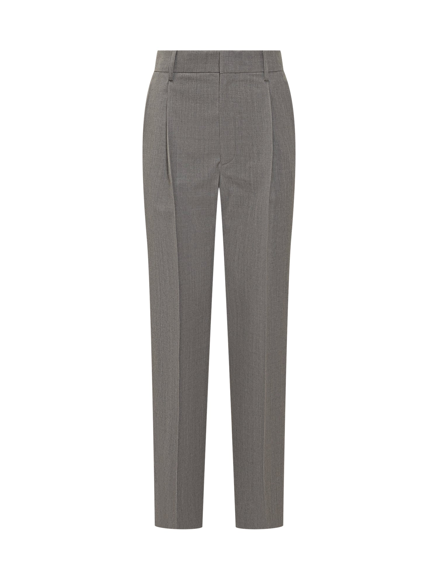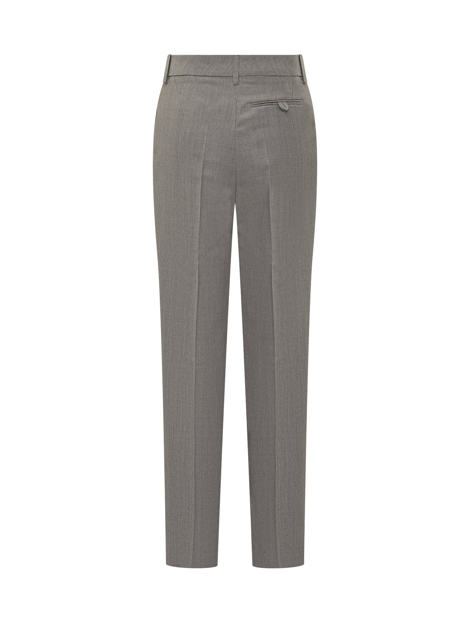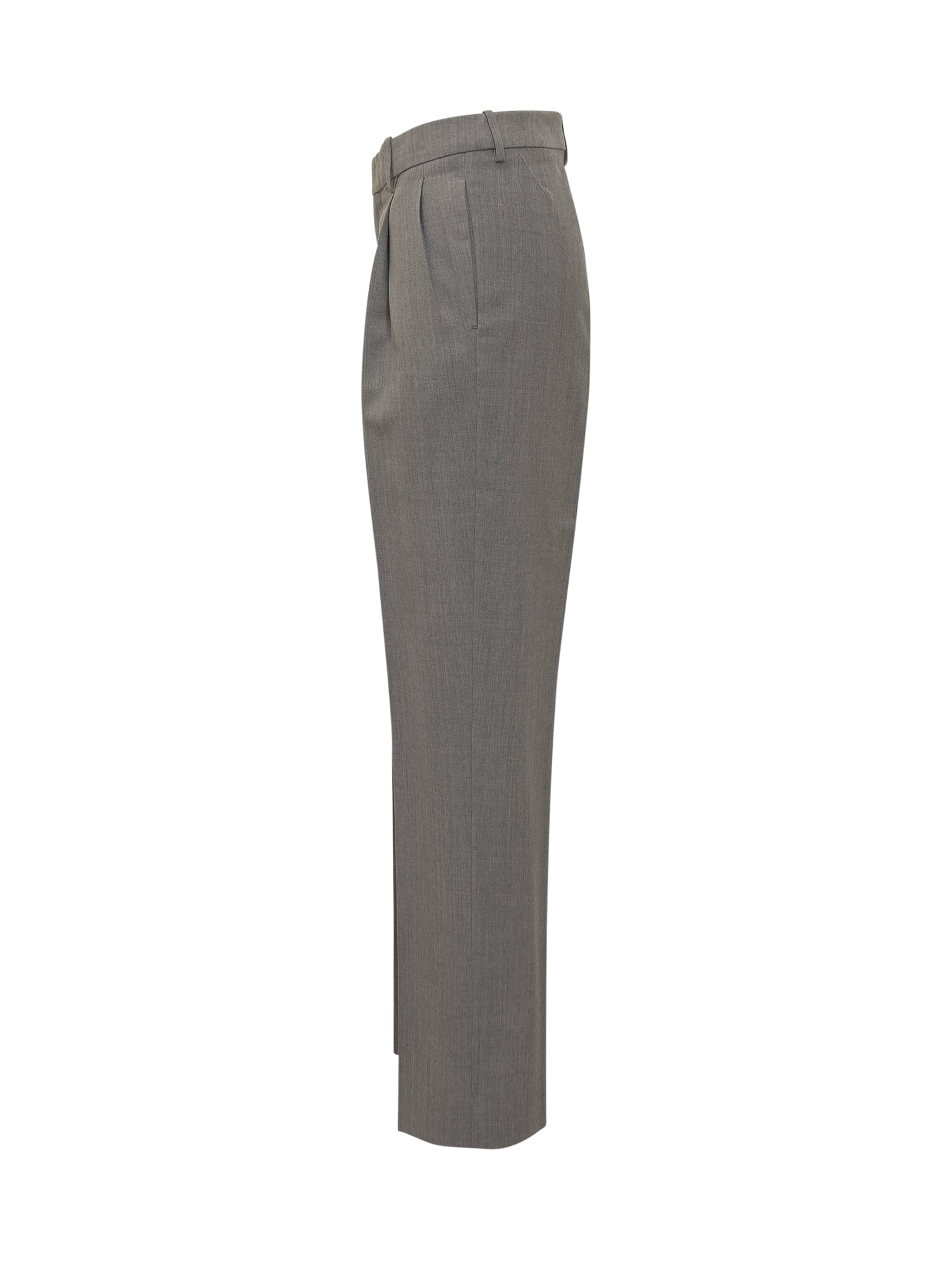 Victoria Beckham grey wool trousers with straight leg and front crease.