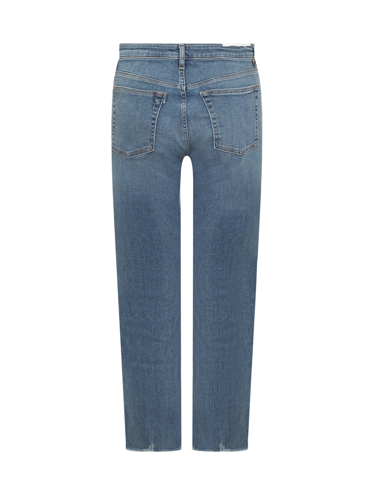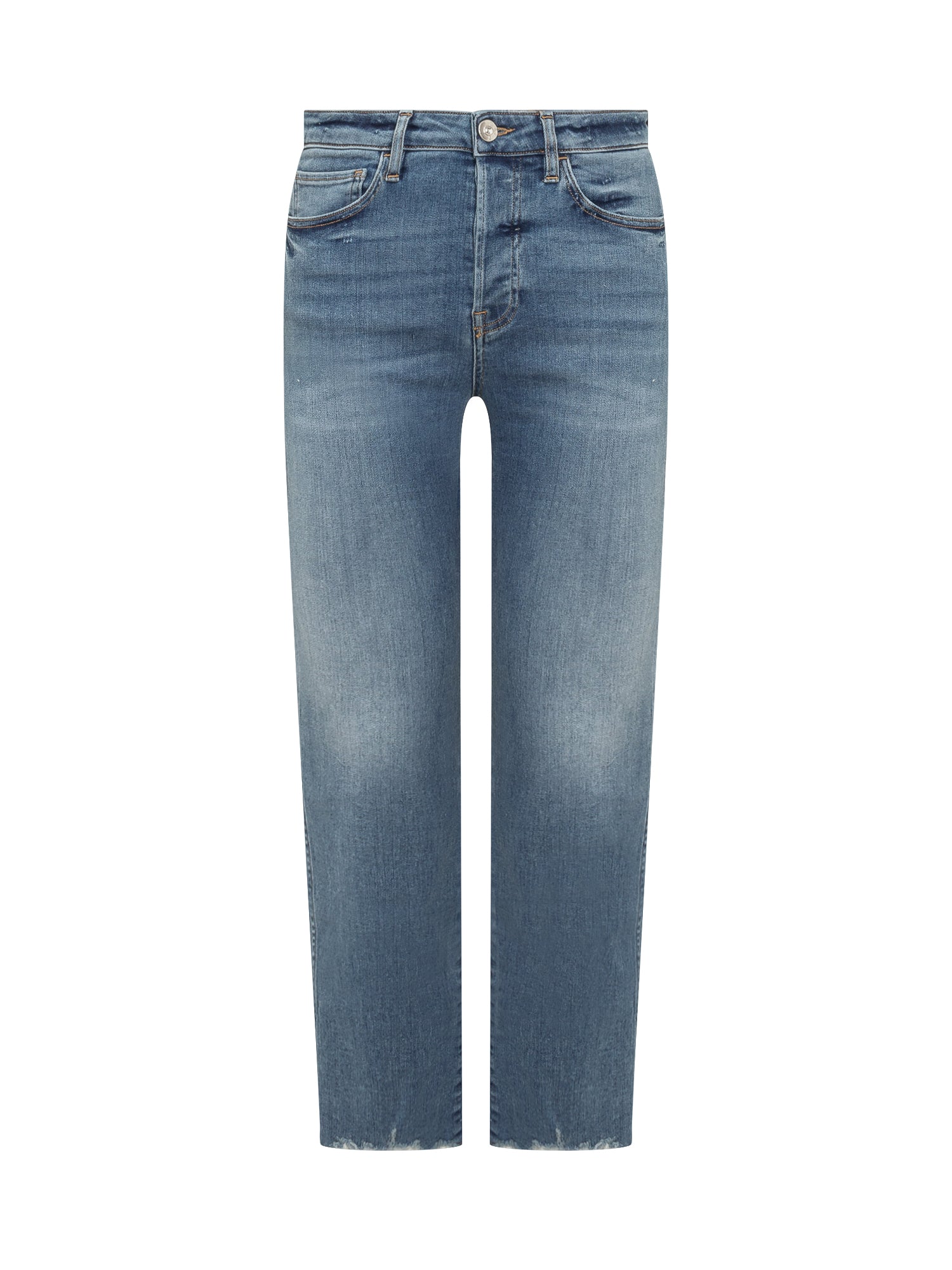 Jeans vita alta. Chiusura con bottoni a scomparsa. 5 tasche. Passanti per cintura.
