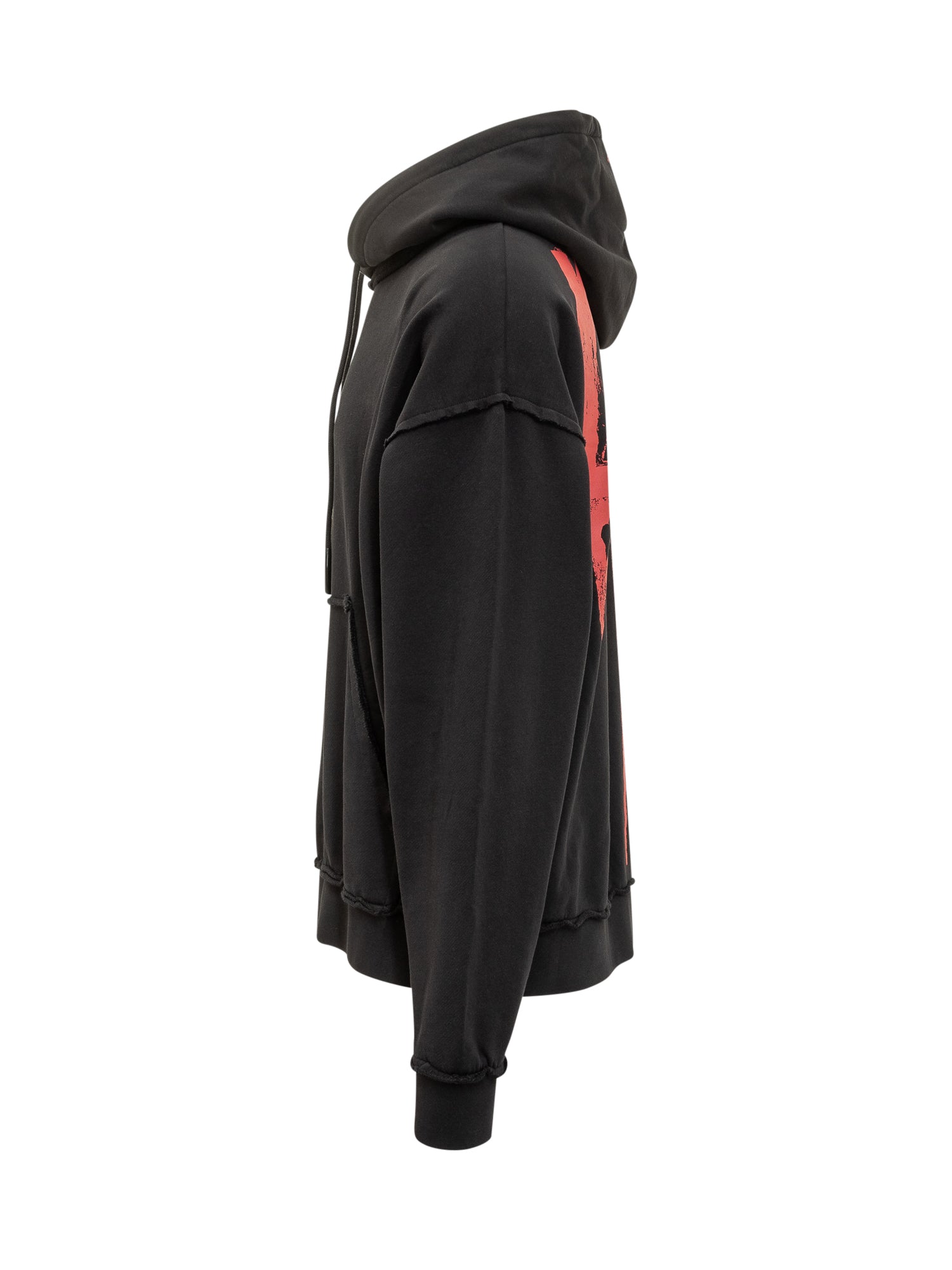 Felpa con cappuccio 44 Label Group in cotone nero, caratterizzata da tasca a marsupio, cuciture a vista e logo ricamato frontale.