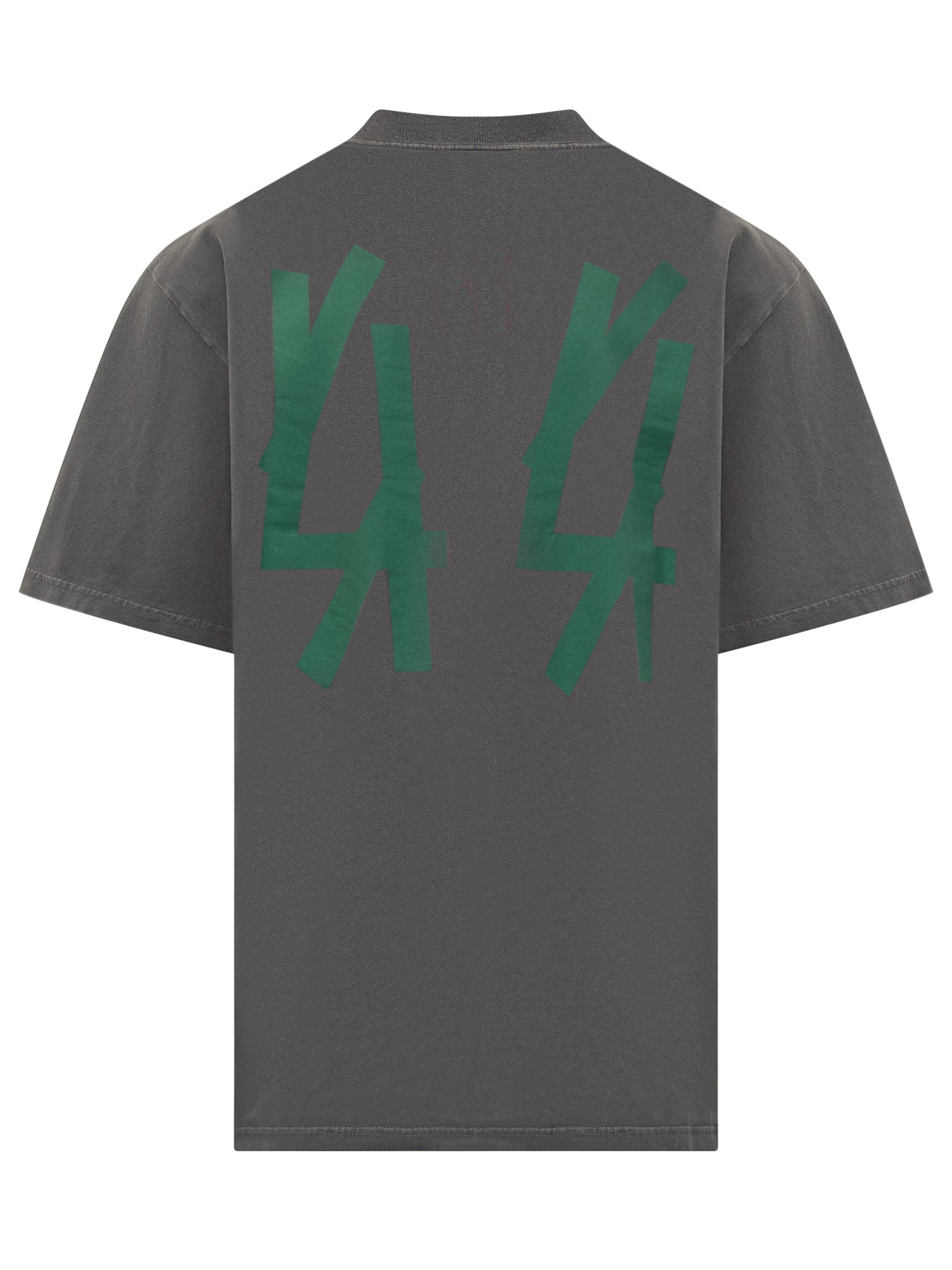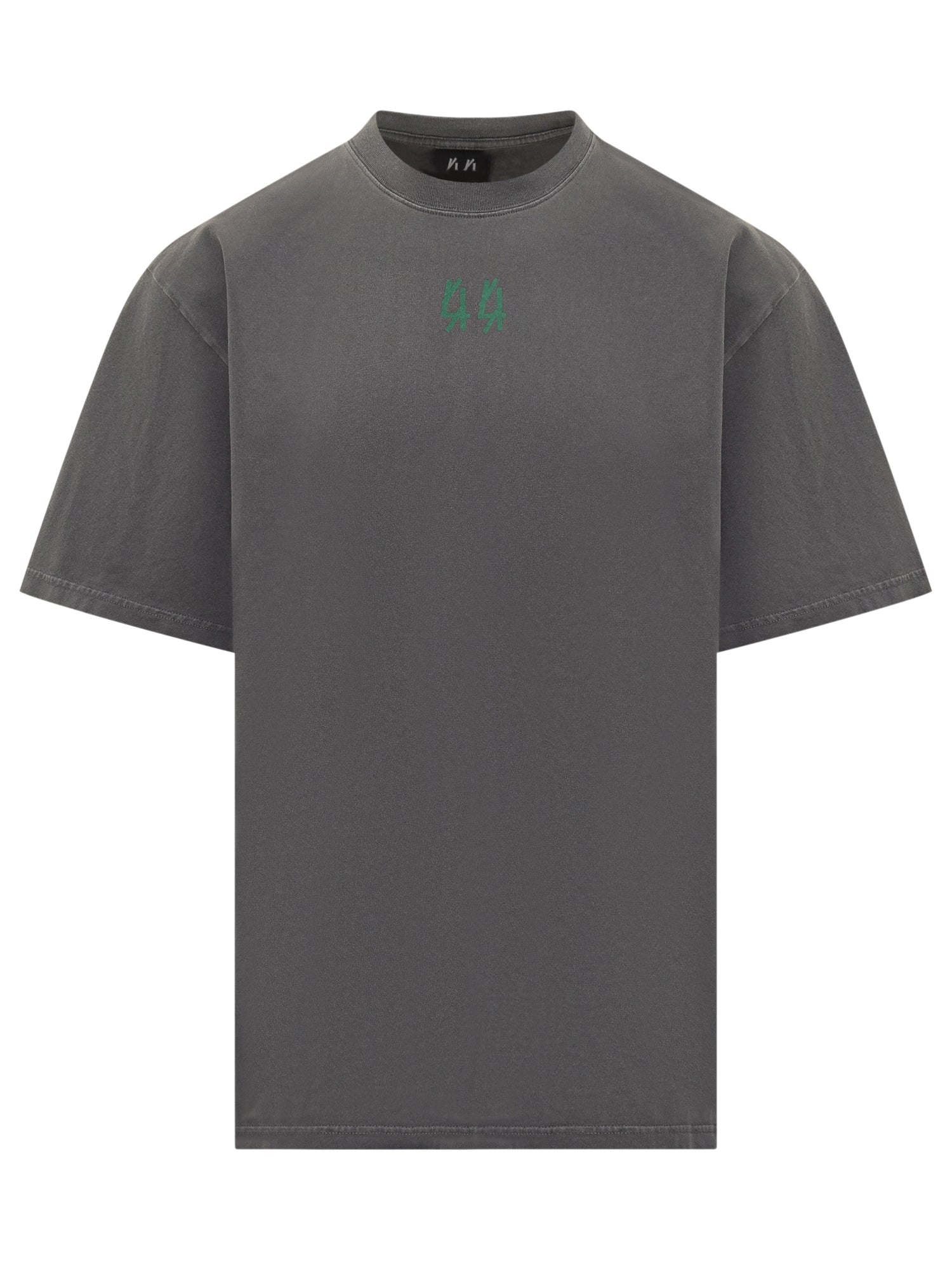 T-shirt 44 Label Group in cotone grigio con vestibilità regolare, girocollo e logo ricamato verde sul petto.