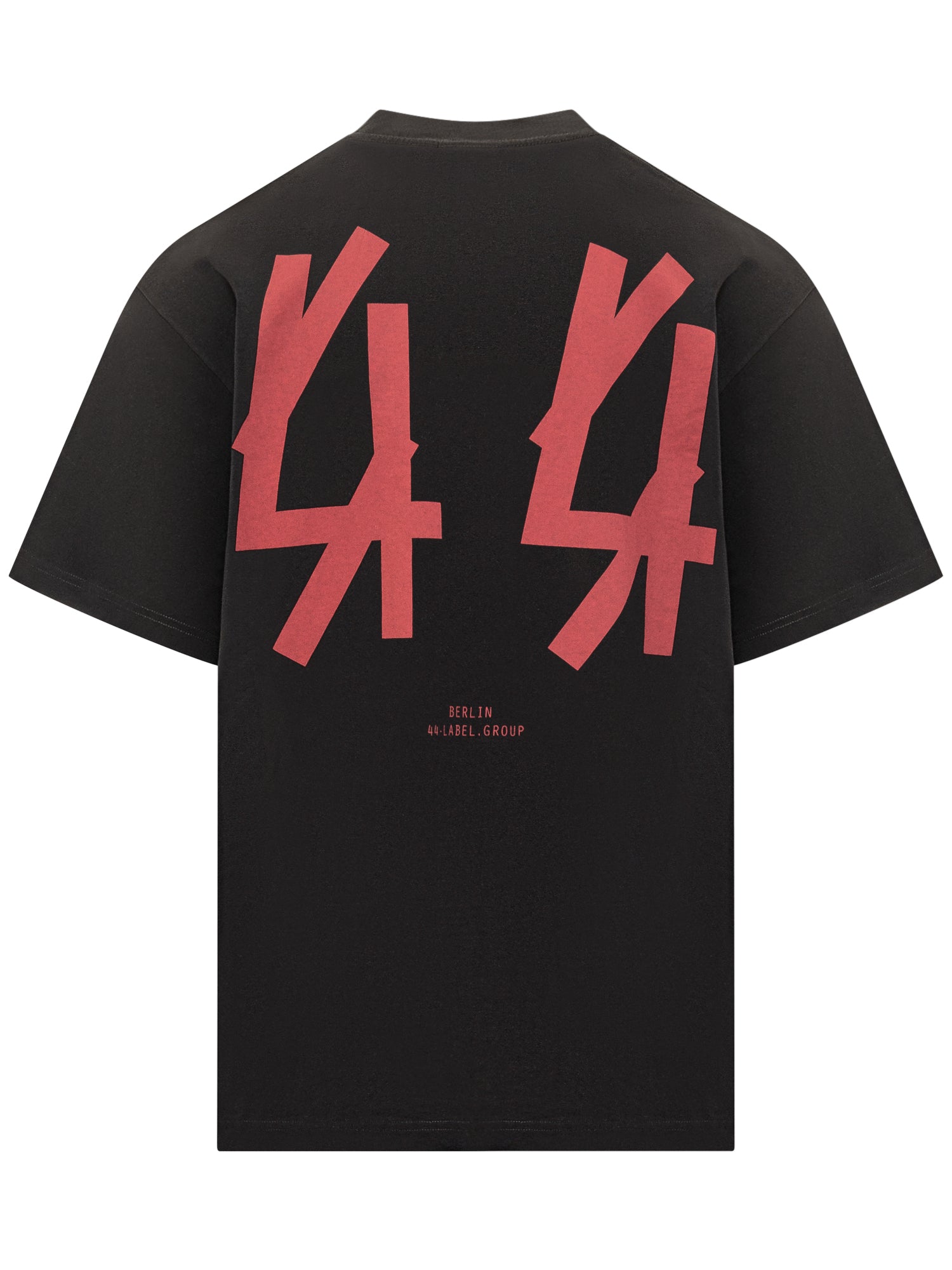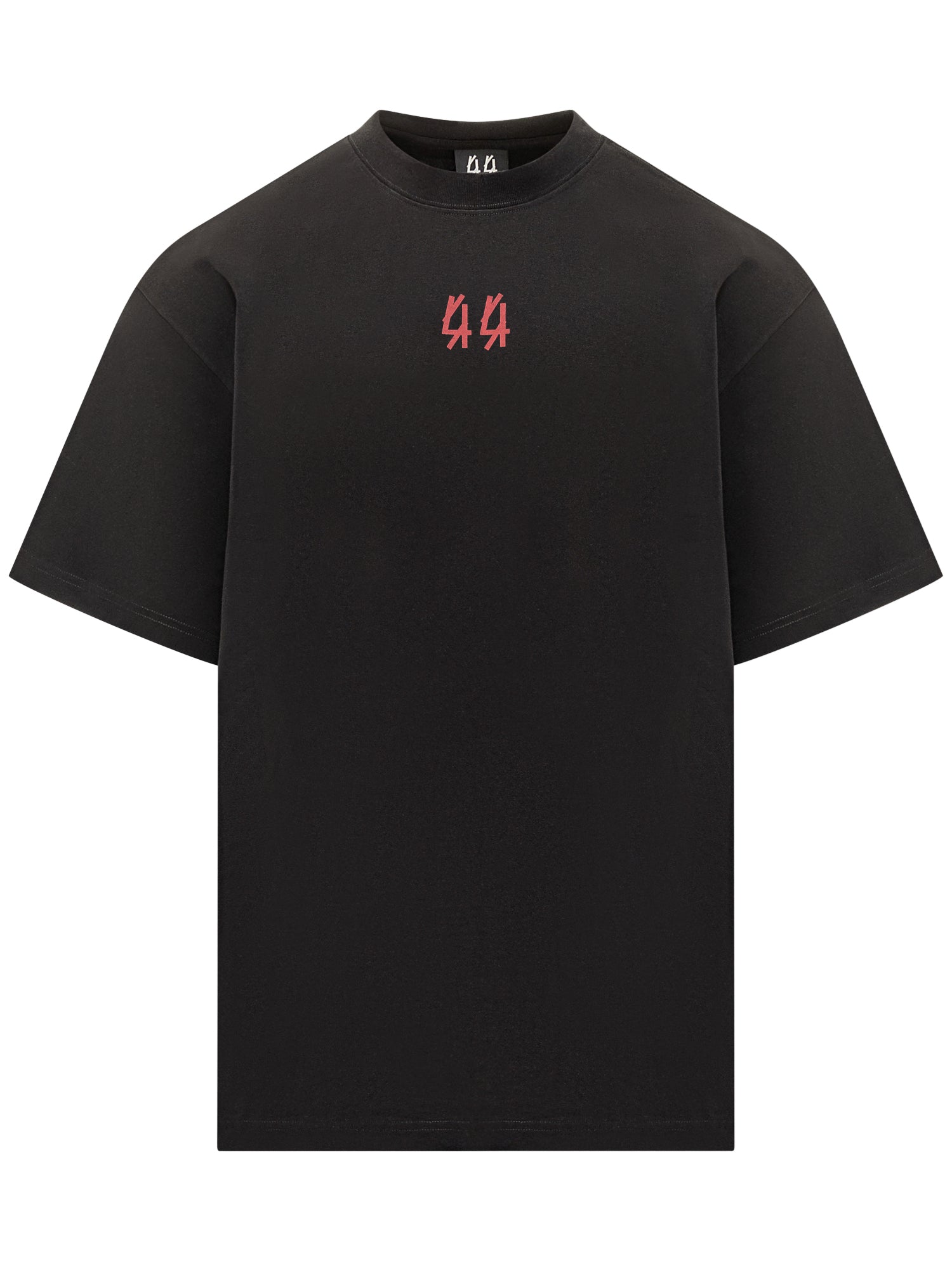 T-shirt 44 Label Group in cotone nero con vestibilità oversize e logo 44 rosso sul petto.