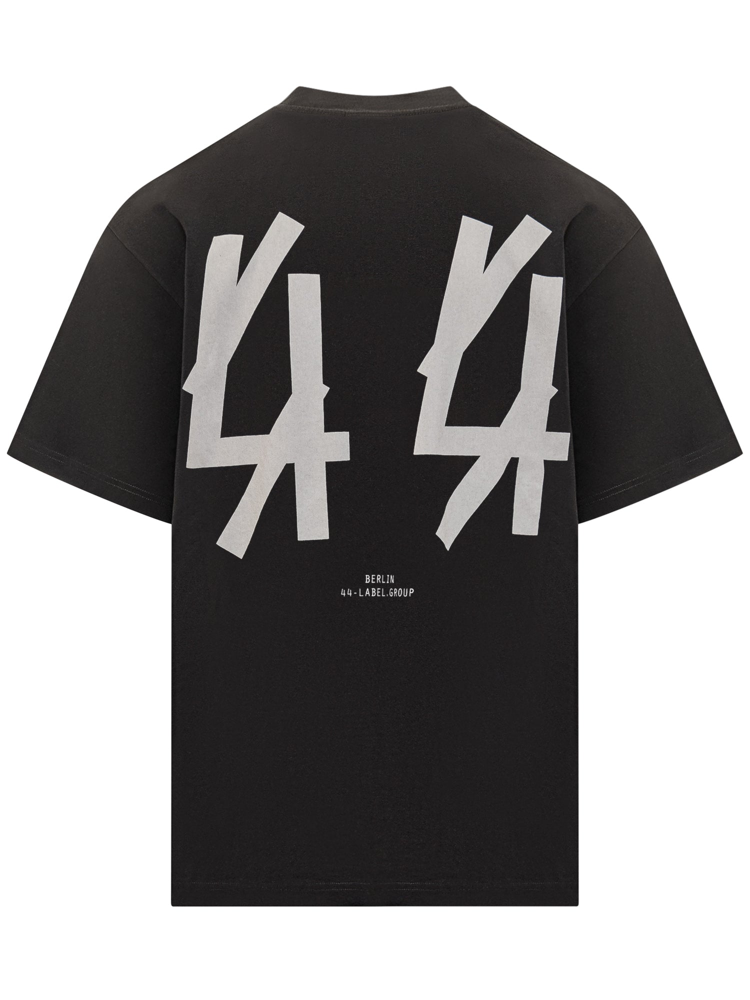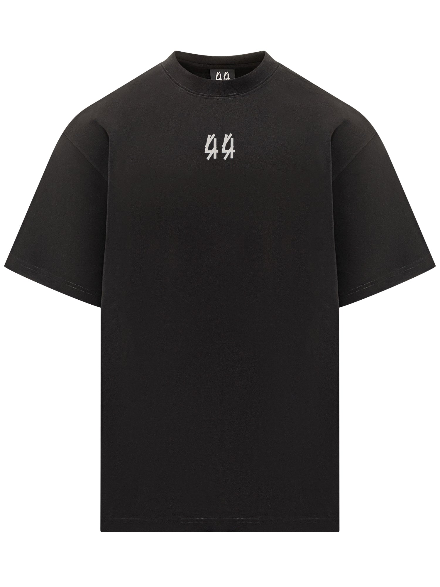T-shirt 44 Label Group in cotone nero con piccolo logo 44 frontale in grigio.
