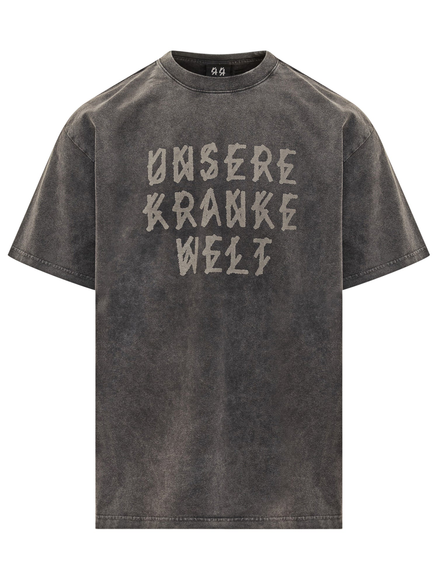 T-shirt oversize in cotone nero slavato con effetto vintage, firmata 44 Label Group. Estetica urbana d impatto, ideale per outfit audaci e consapevoli.