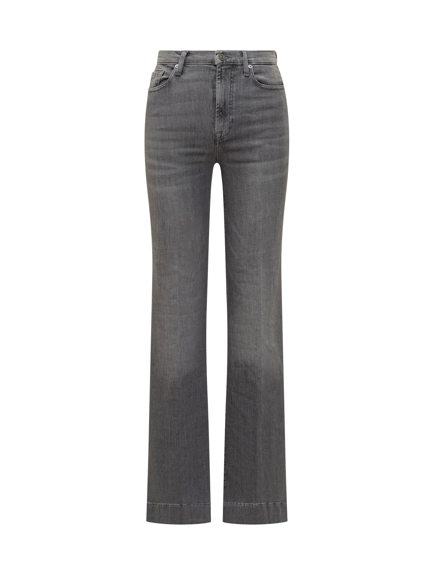 Jeans Dojo Soho di 7 For All Mankind da donna in denim grigio slavato. Vita media, gamba svasata e finitura vintage.