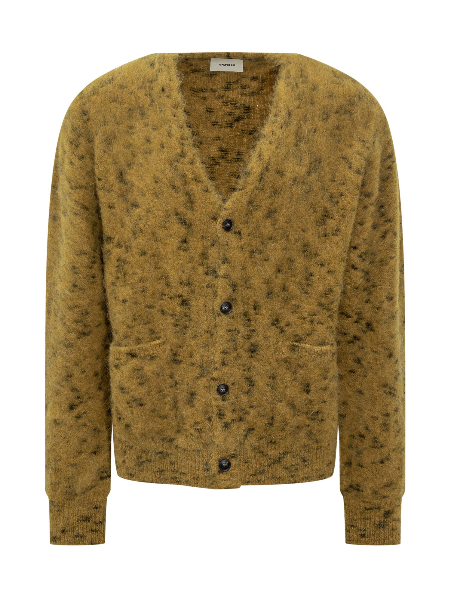 Cardigan A Paper Kid in mohair giallo con fantasia maculata e chiusura a bottoni.